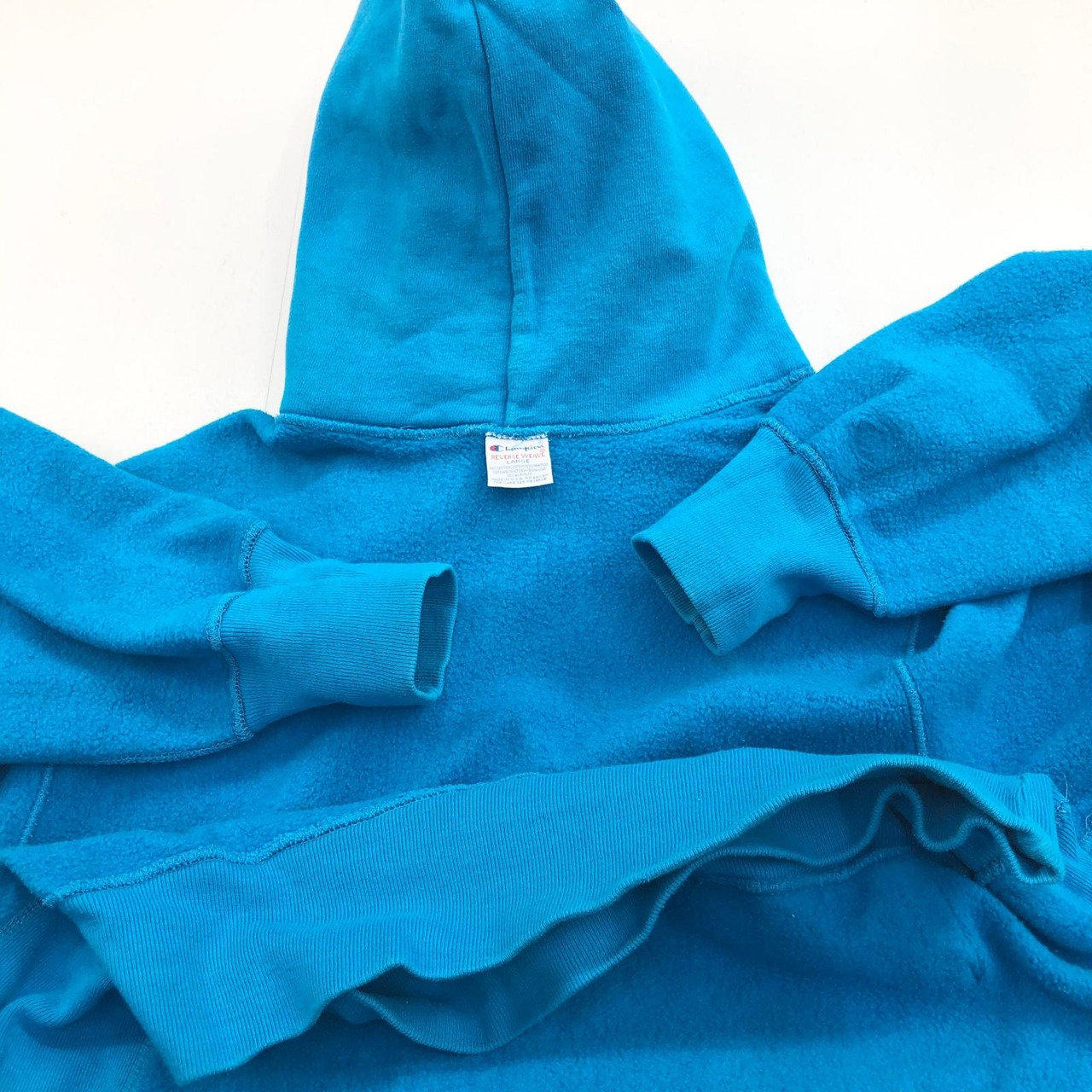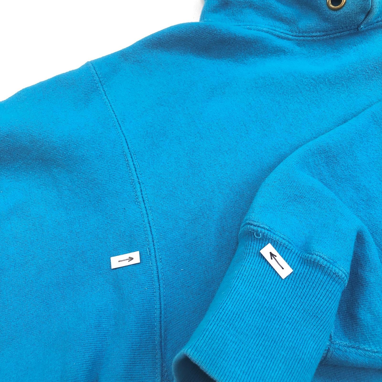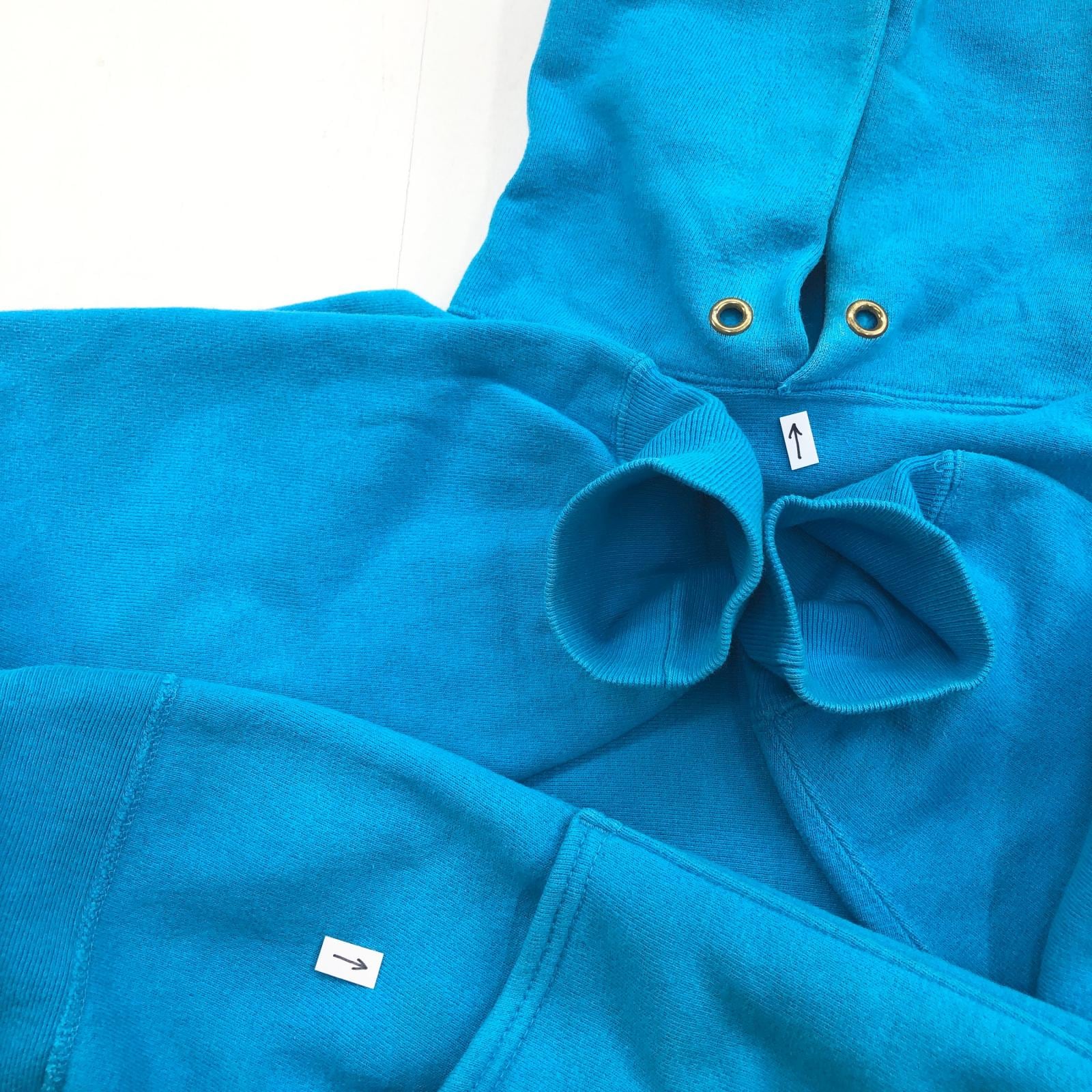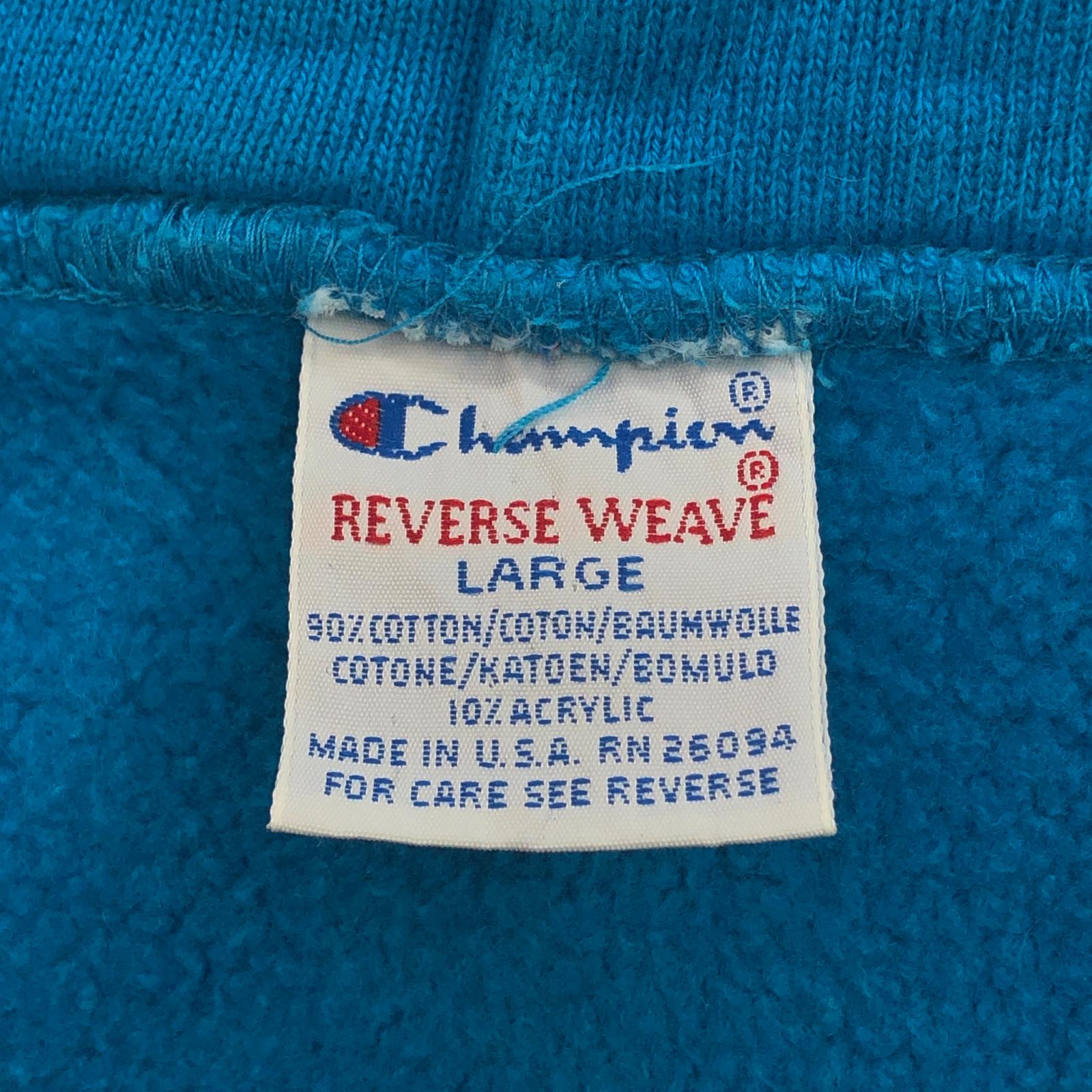 CHAMPION チャンピオン 90年代 USA製 刺繍タグ 胸袖目あり リバースウィーブ スウェットパーカー フーディー 無地 プレーン ターコイズブルー系 タグ 表記 LARGE
