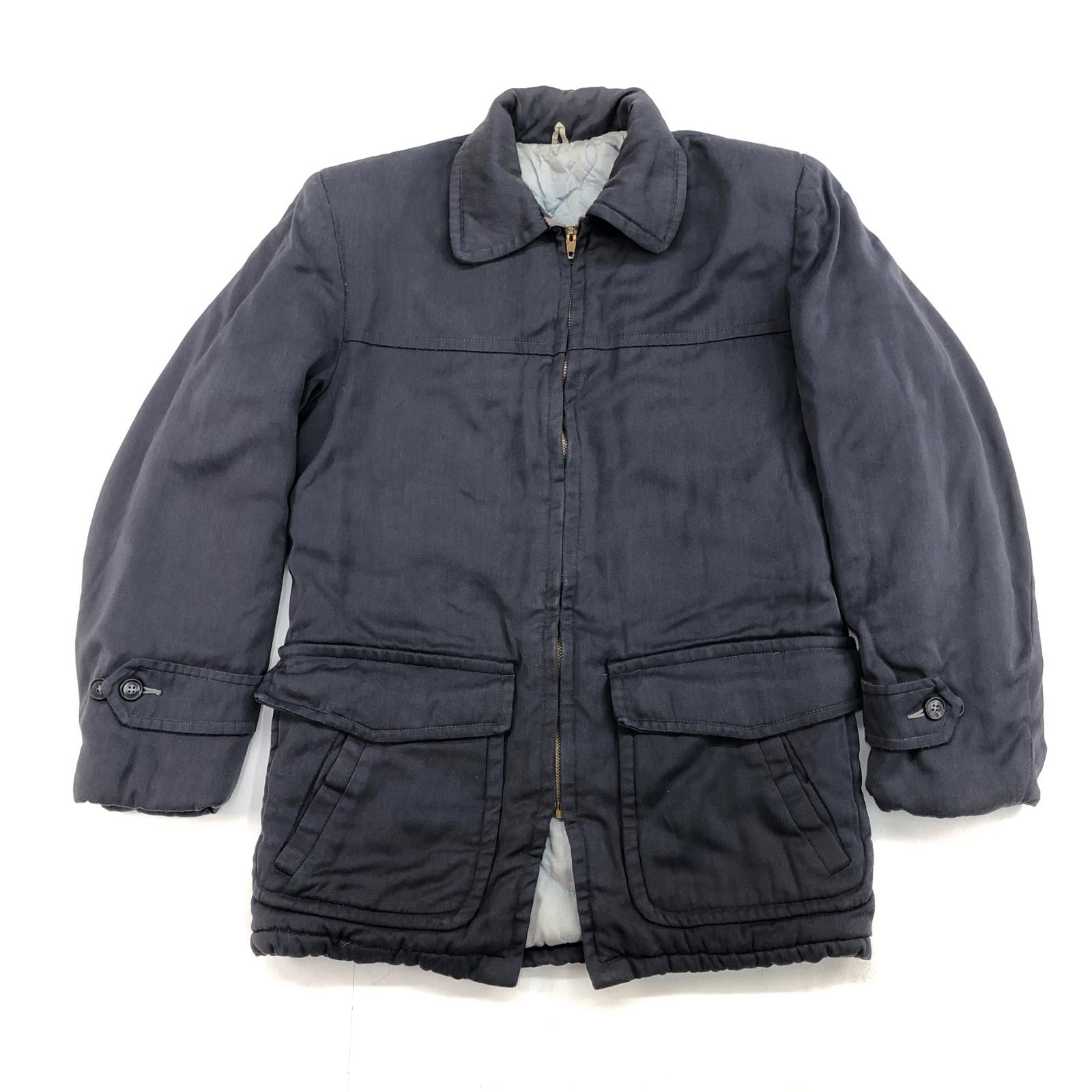 UNKNOWN 50 -60年代 中綿入り レーヨン系 ギャバジャン ギャバジンジャケット スポーツジャケット ワーク ジャケット CONMATIC ジッパー ネイビー メンズ ML 位