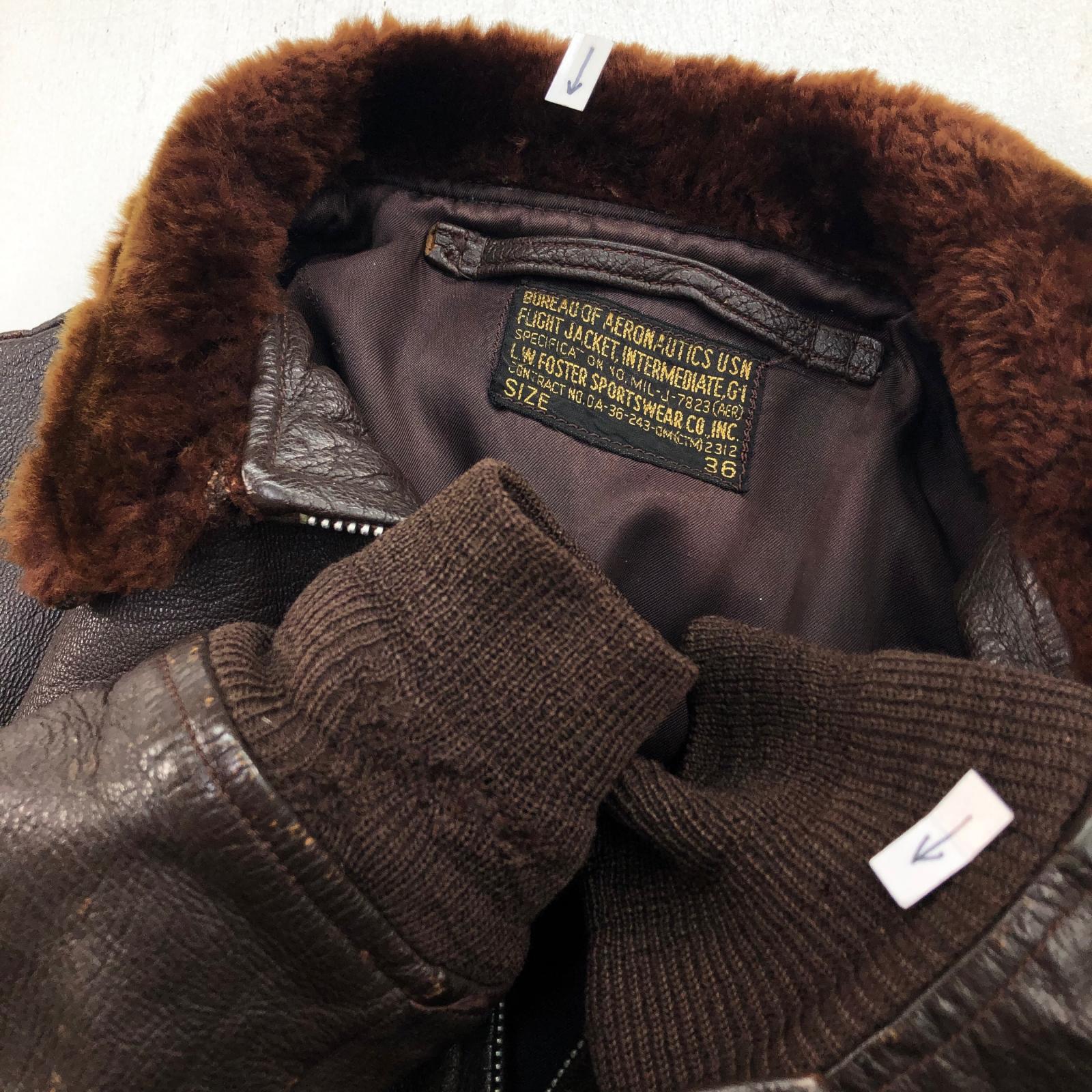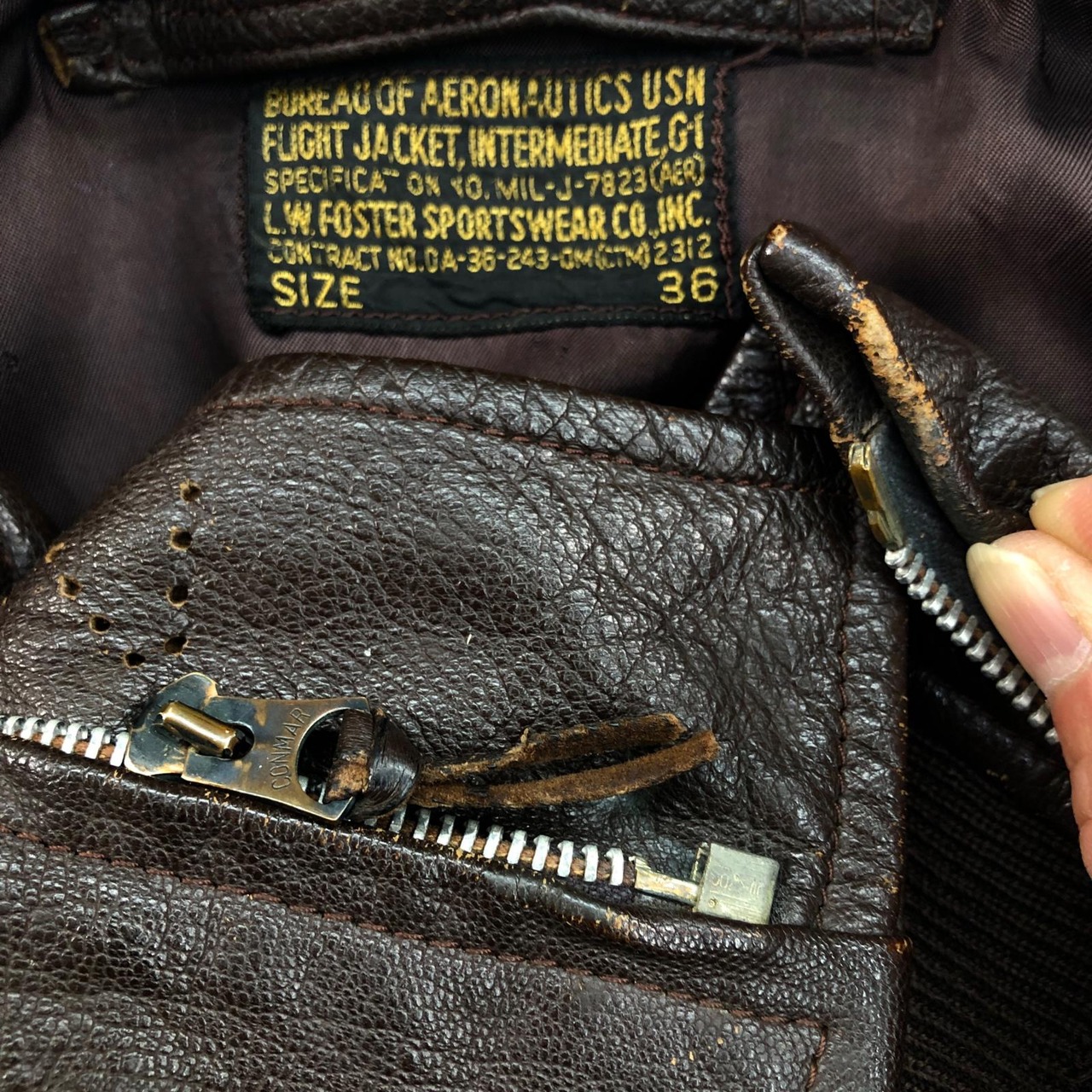 U.S.NAVY 50- 60年代 G-1 レザージャケット フライトジャケット 黒タグ MIL-J-7823(AER) L.W.FORSTER SPORTSWEAR CO.INC タグ 表記 サイズ 36