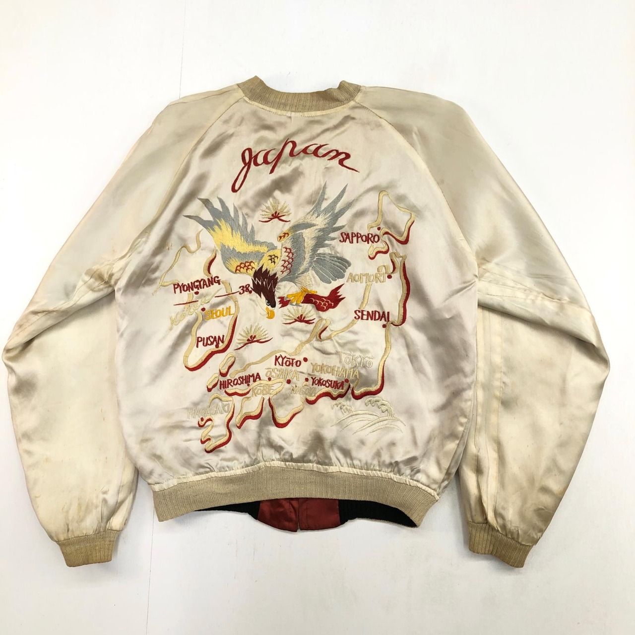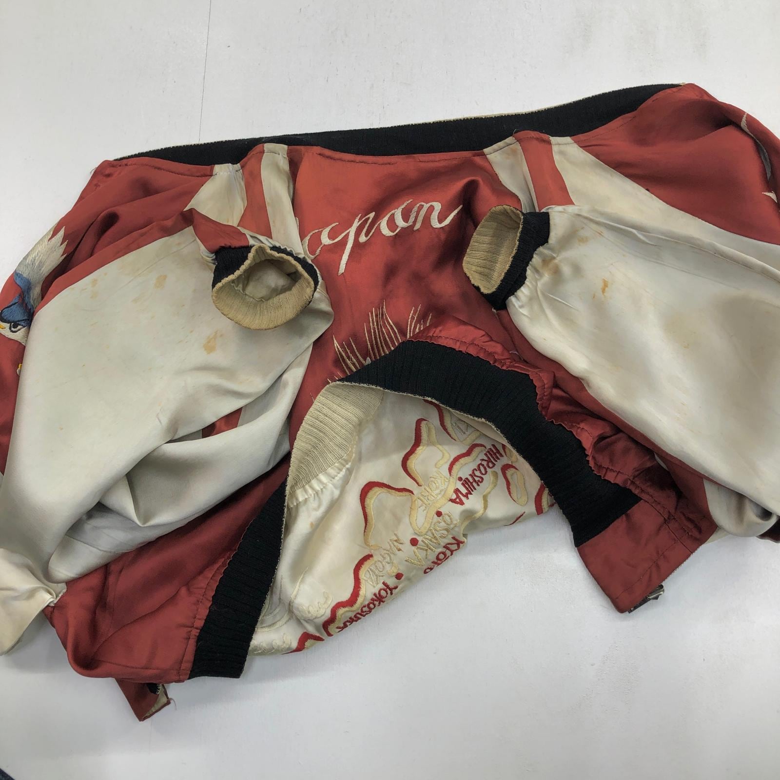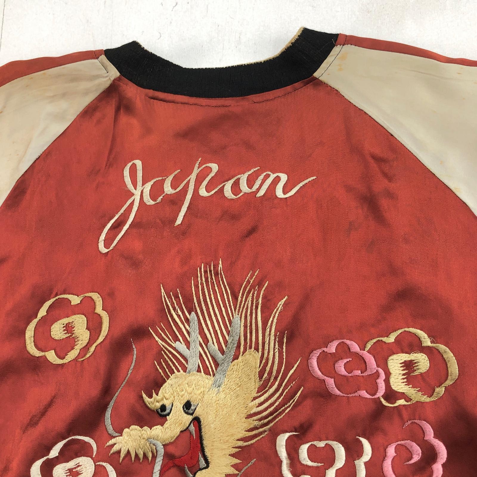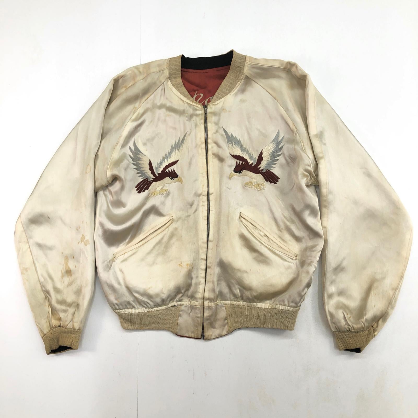 UNKNOWN 50年代 スカジャン スーベニアジャケット サテン リバーシブル 鷹 龍 刺繍 ブリックレッド オフホワイト メンズ L 位