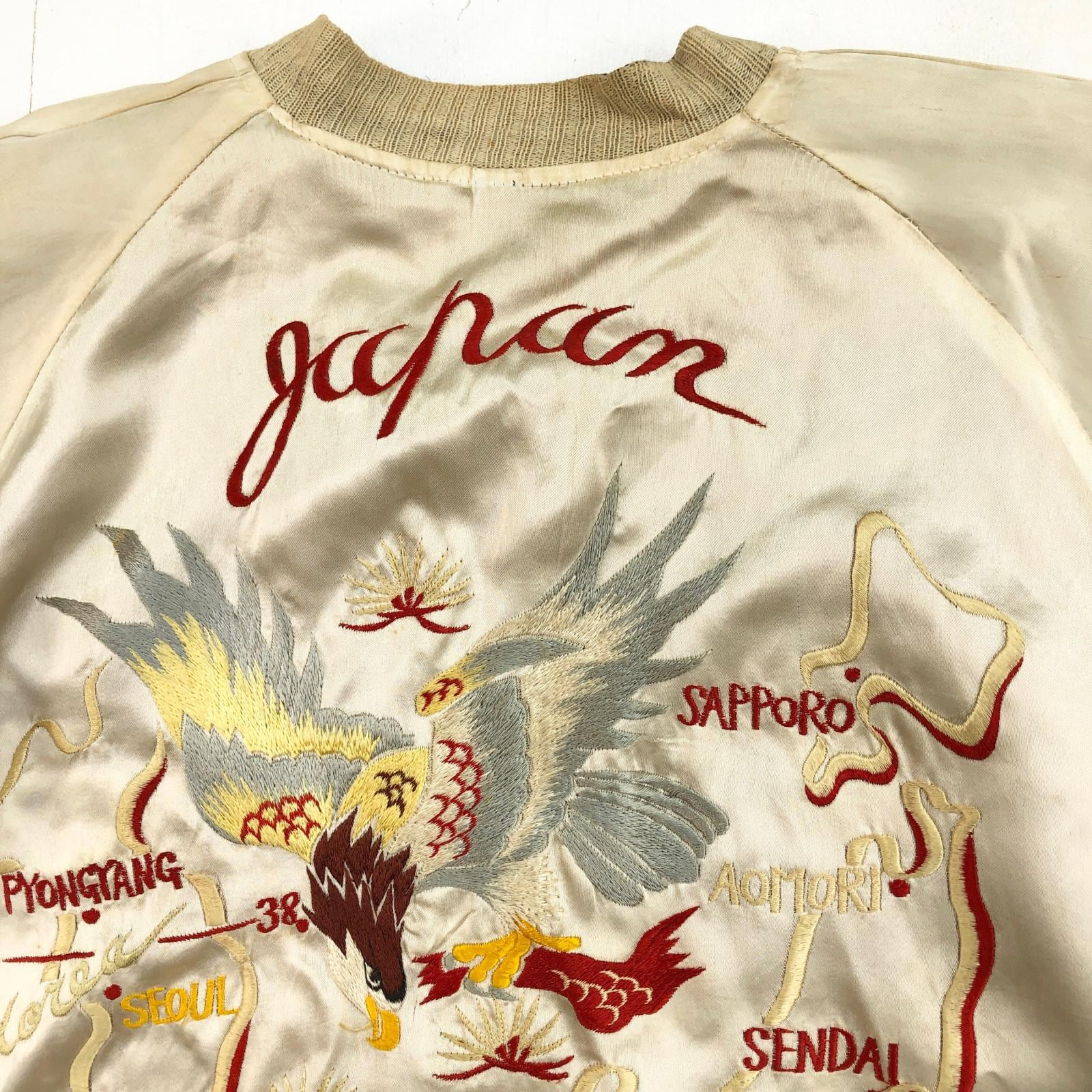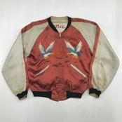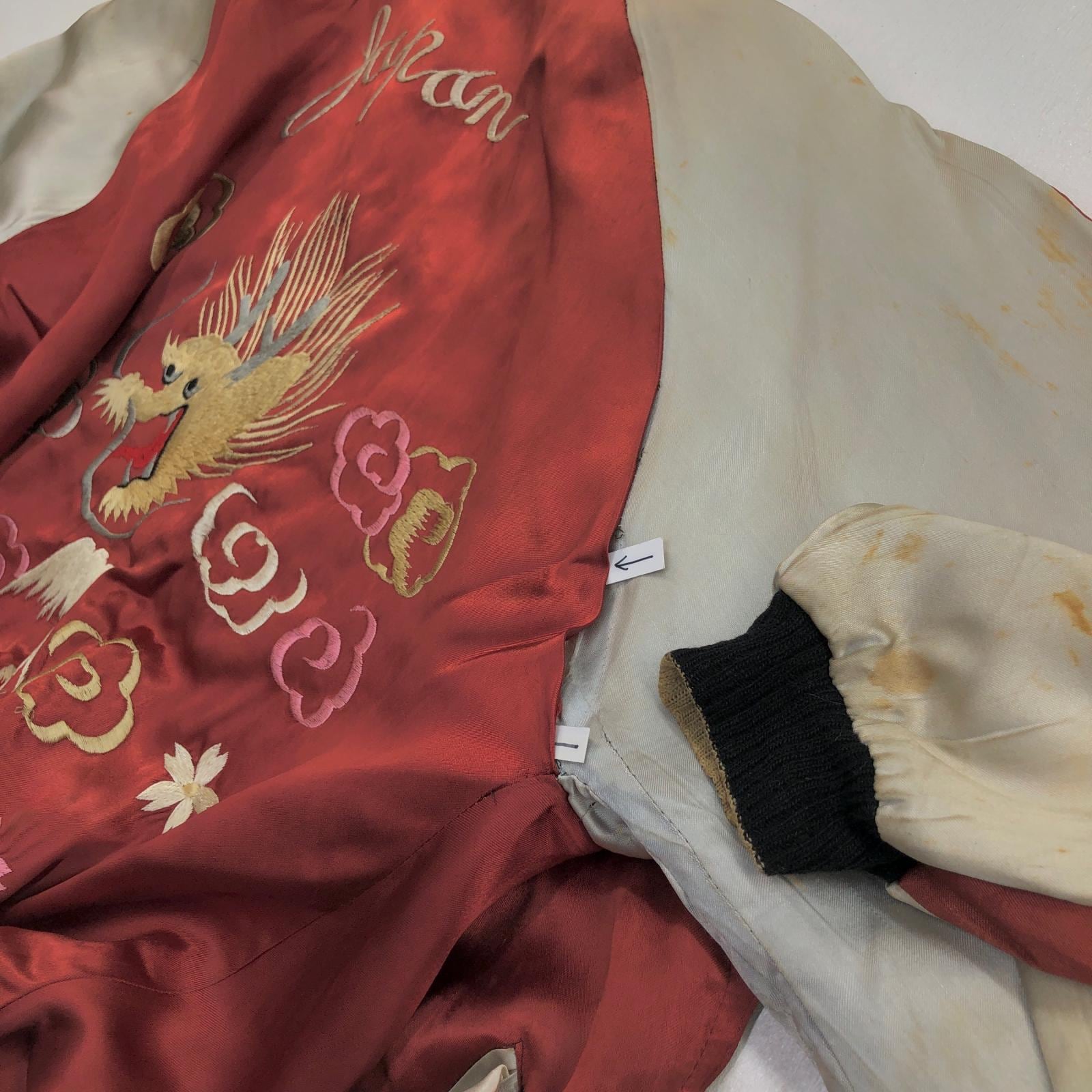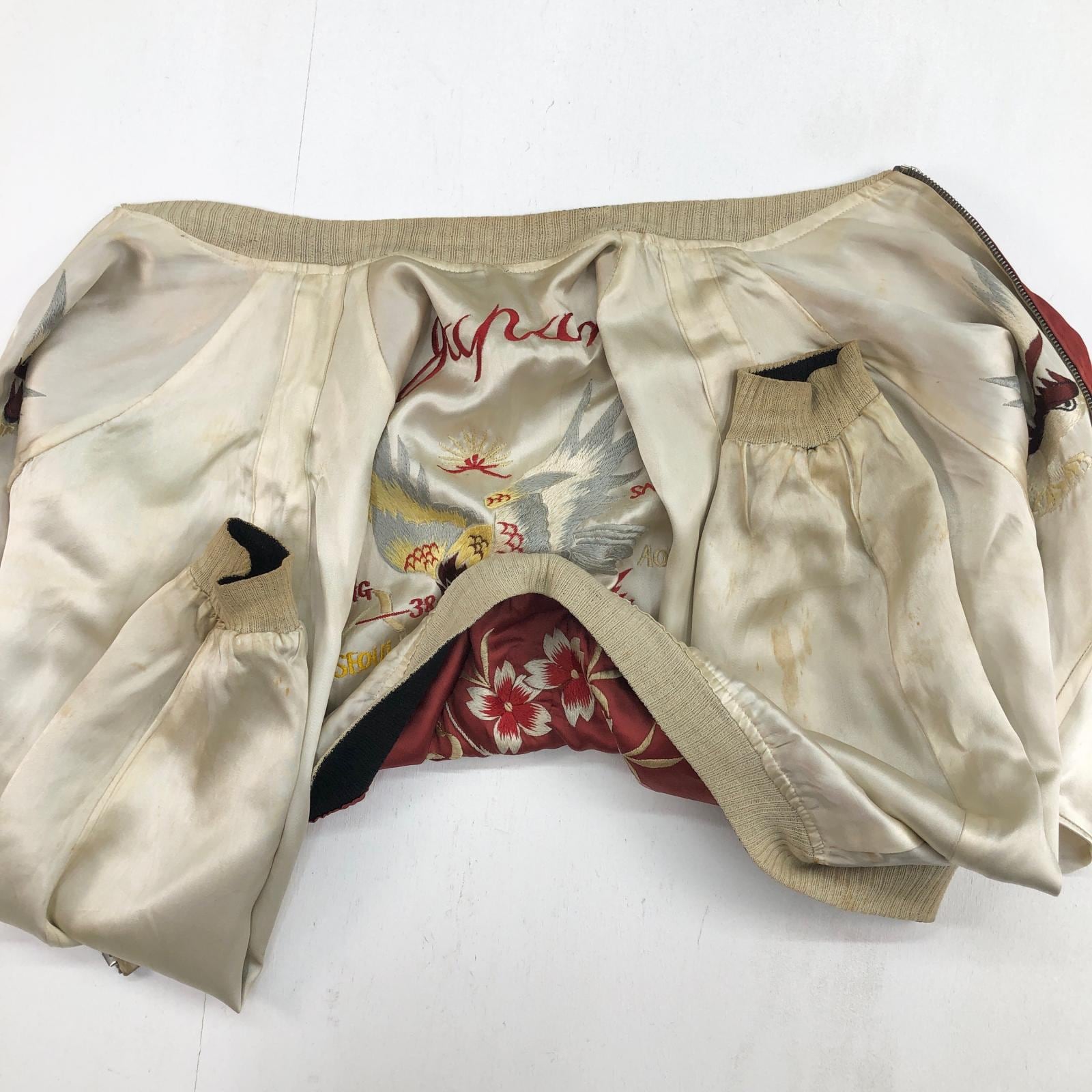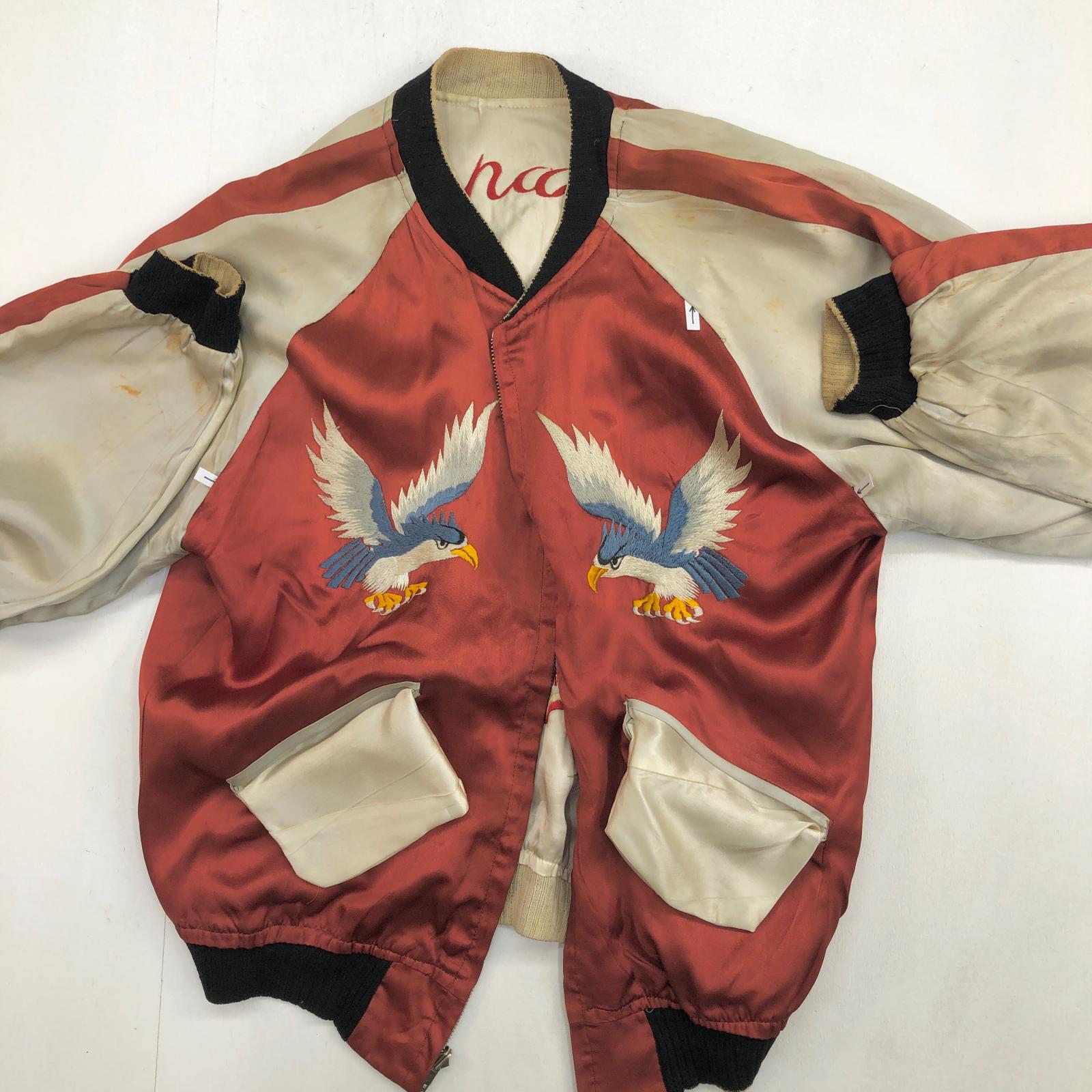UNKNOWN 50年代 スカジャン スーベニアジャケット サテン リバーシブル 鷹 龍 刺繍 ブリックレッド オフホワイト メンズ L 位