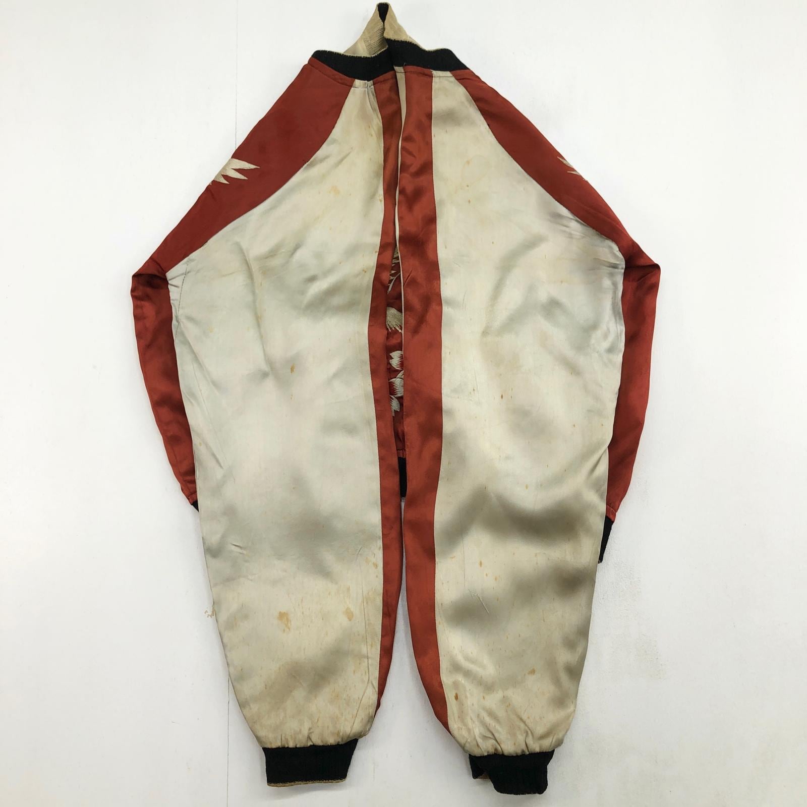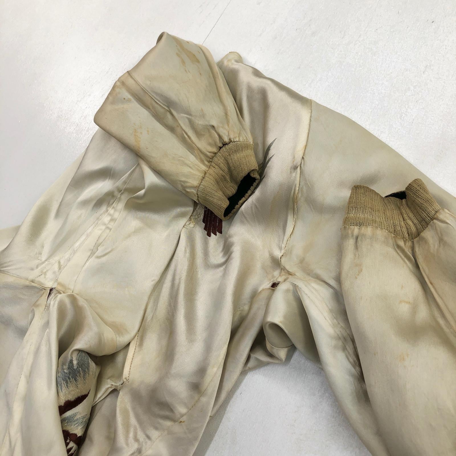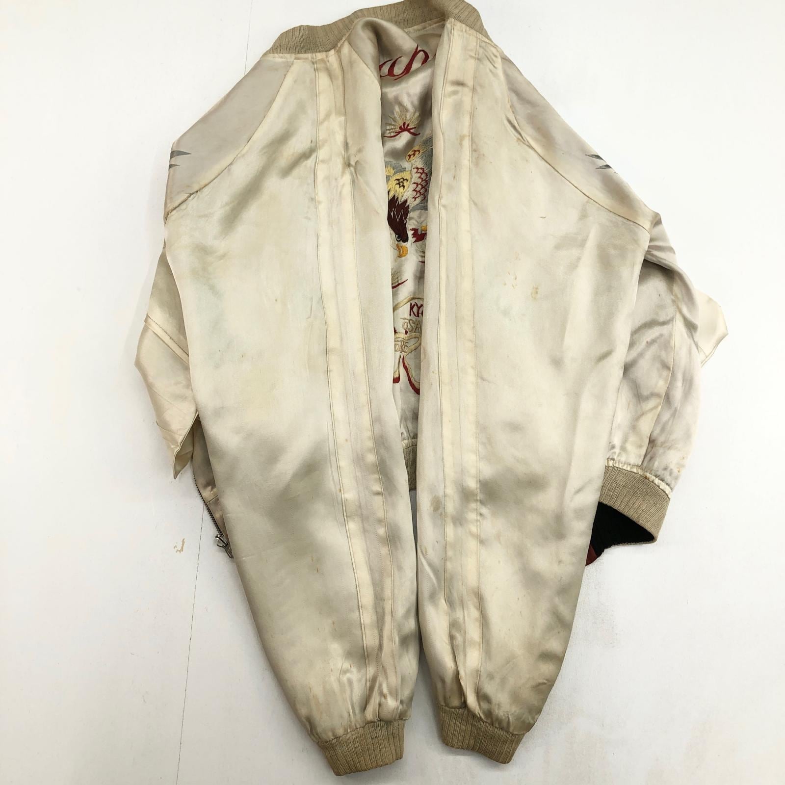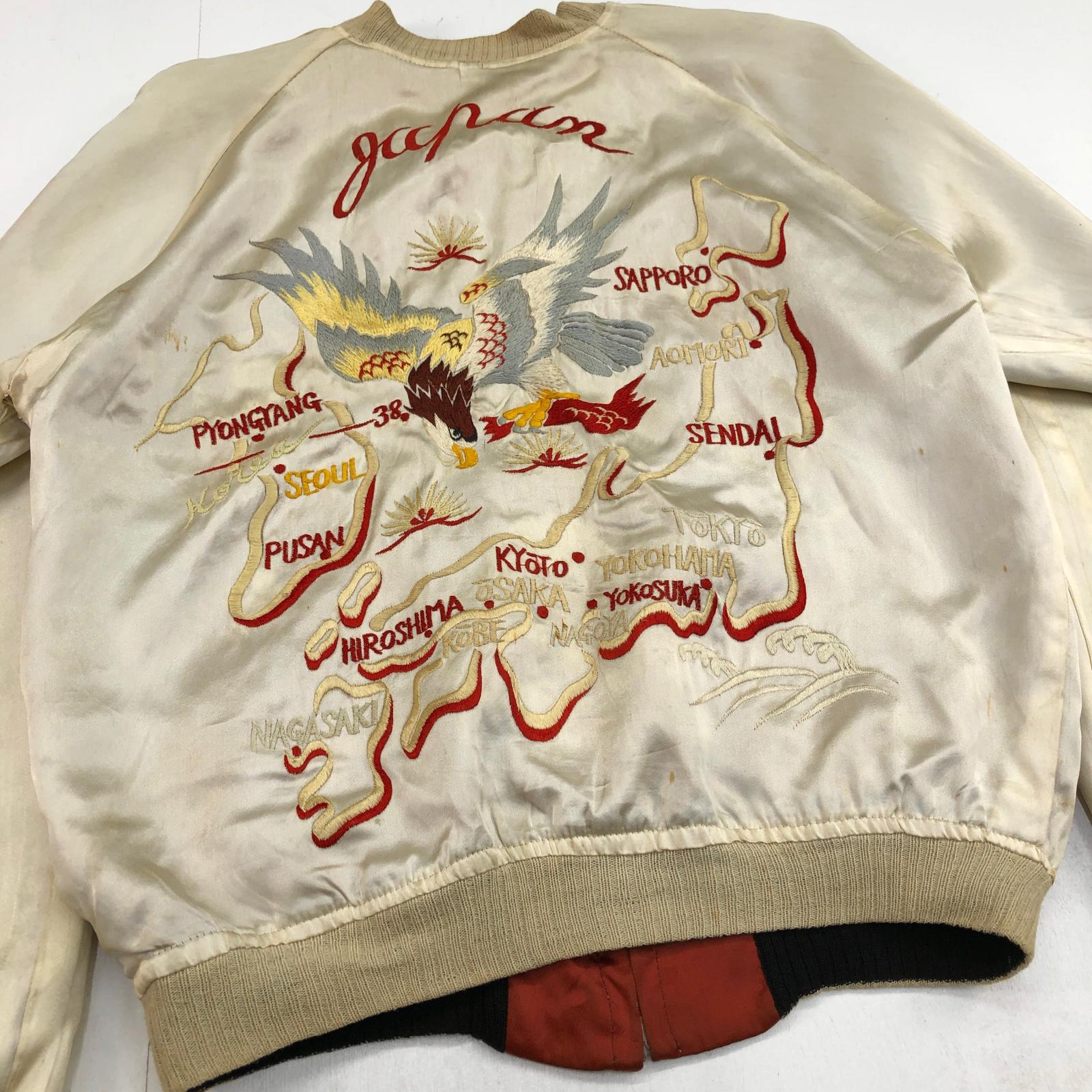 UNKNOWN 50年代 スカジャン スーベニアジャケット サテン リバーシブル 鷹 龍 刺繍 ブリックレッド オフホワイト メンズ L 位
