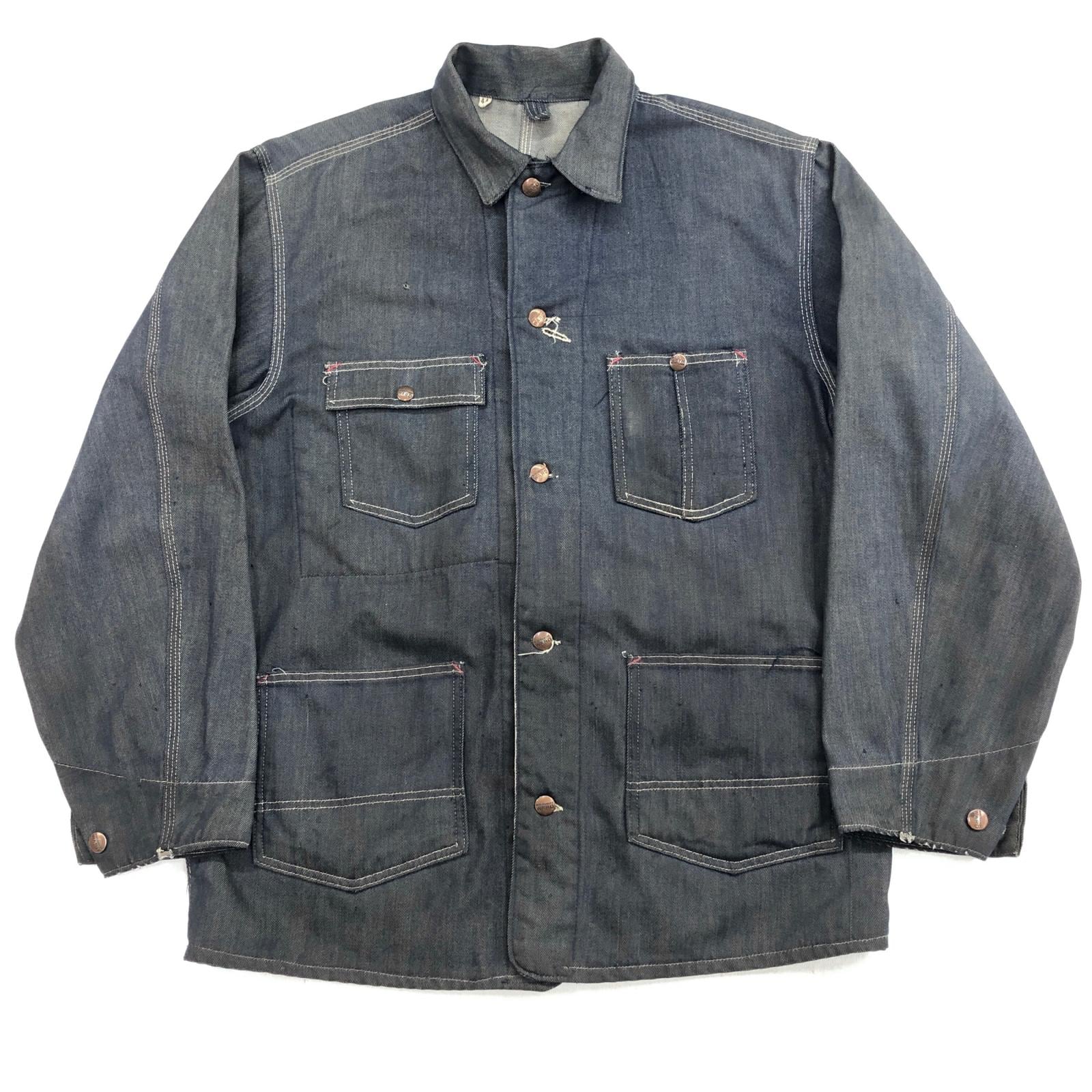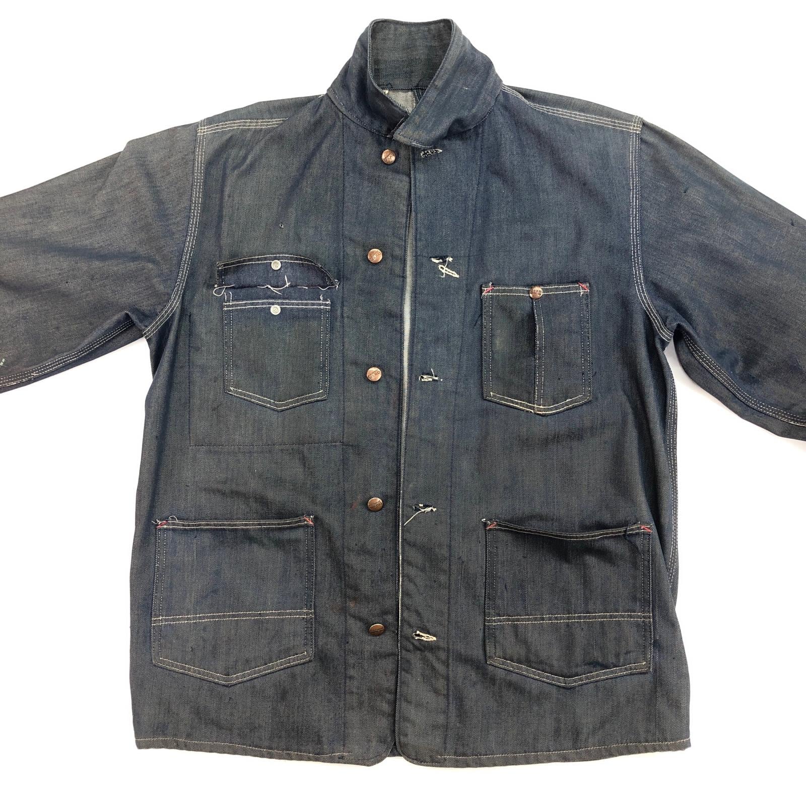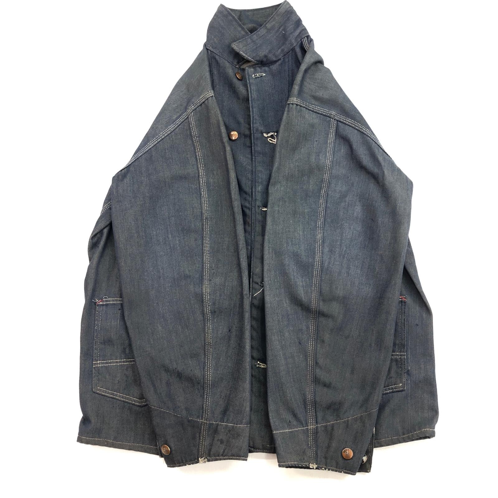 MONTGOMERY WARD モンゴメリーワード 60- 70年代 USA製 ストア系 ブランド バットダイ系 デニム カバーオール ワーク ジャケット チョアジャケット ブルーグレー タグ 表記 サイズ 44 メンズ XXL 位