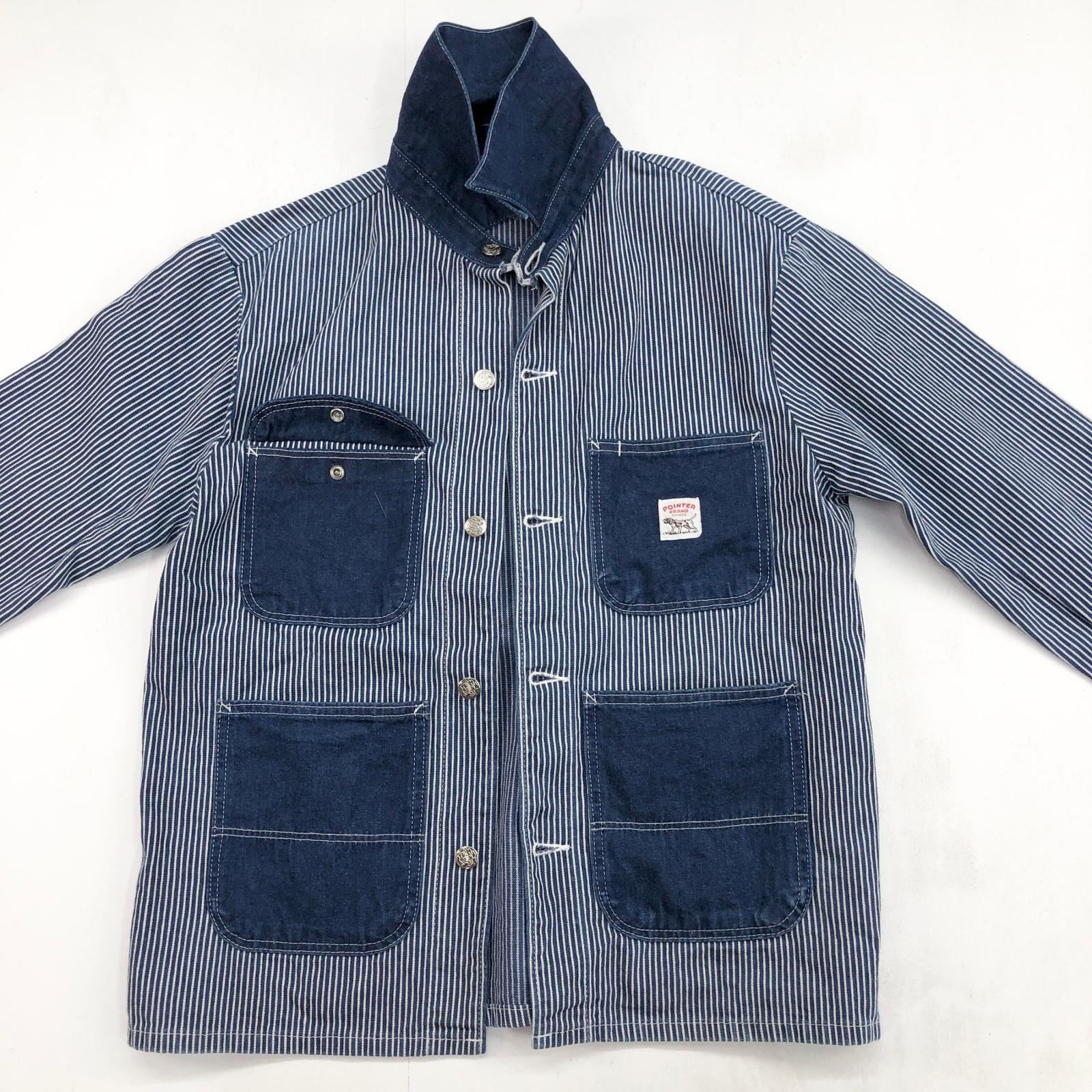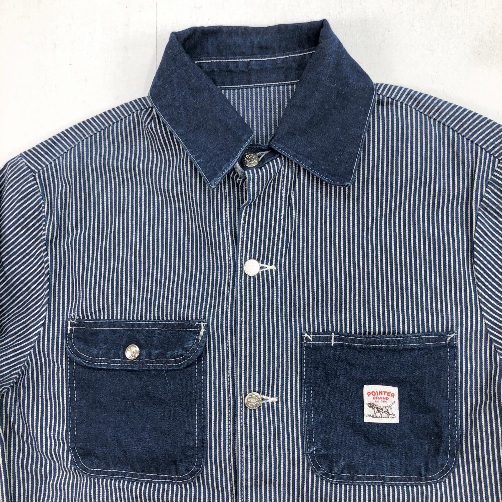 POINTER ポインター 90- 00年代 USA製 ヒッコリー デニム 切替 カバーオール チョアジャケット ワークジャケット タグ 表記 サイズ 38 メンズ XL 位