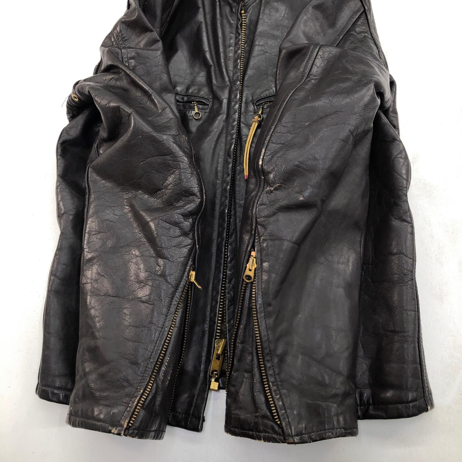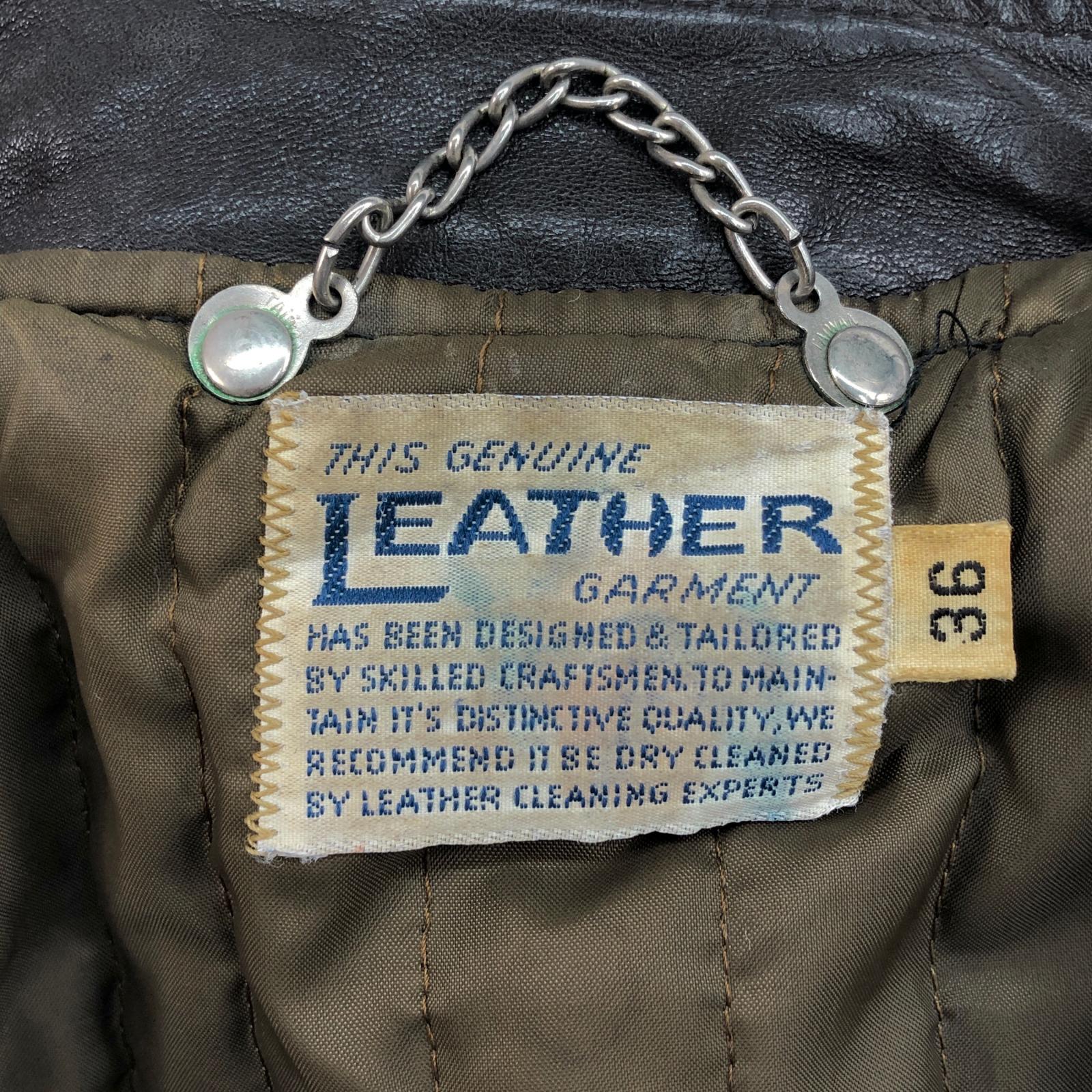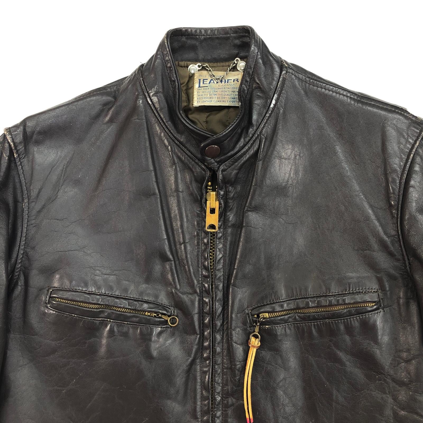 UNKNOWN 70年代あたり GENUINE LEATHER GARMENT シングルライダースジャケット レザージャケット ダークブラウン タグ 表記 サイズ 36 メンズ L 位
