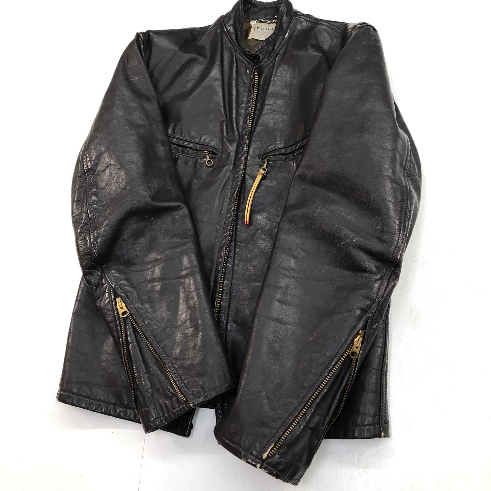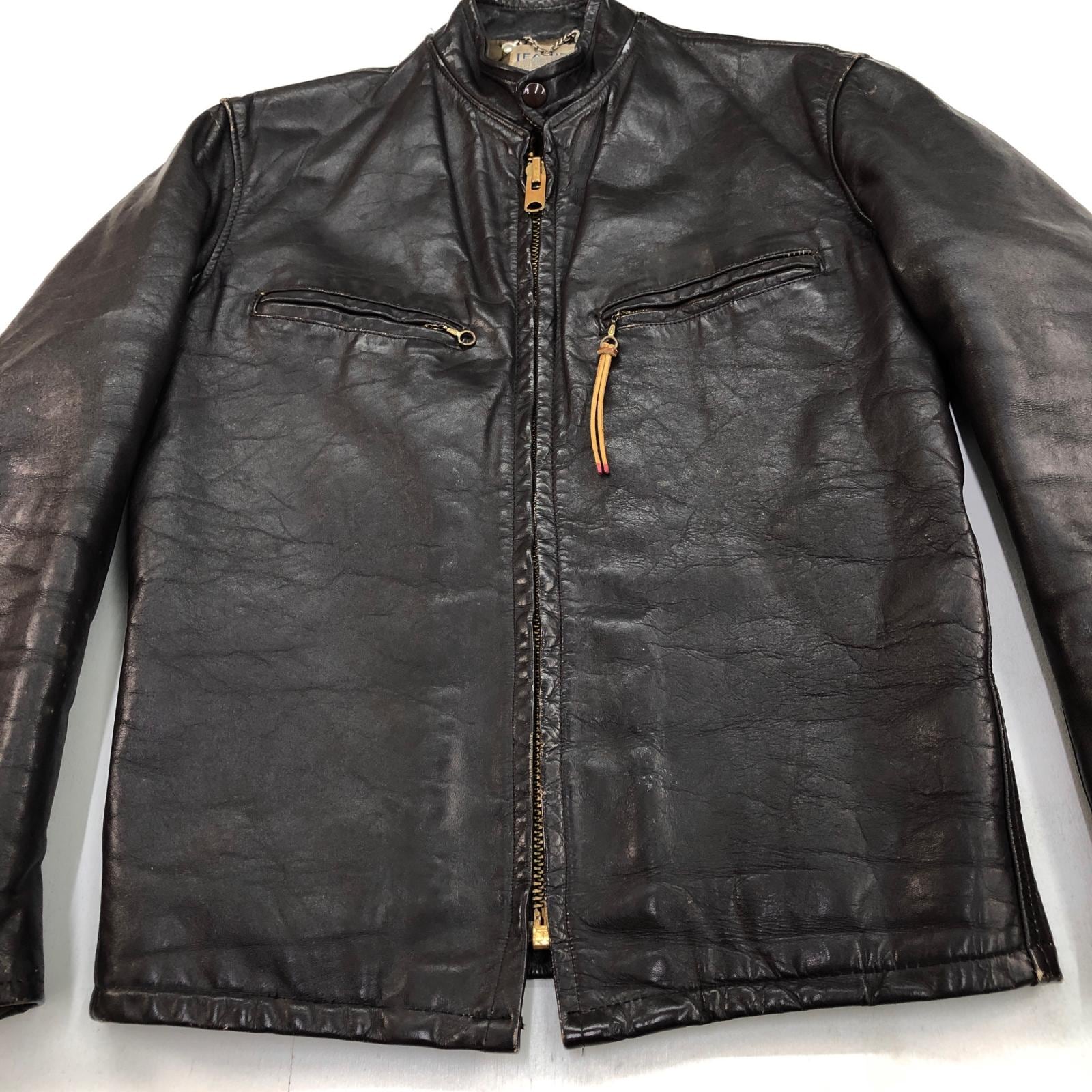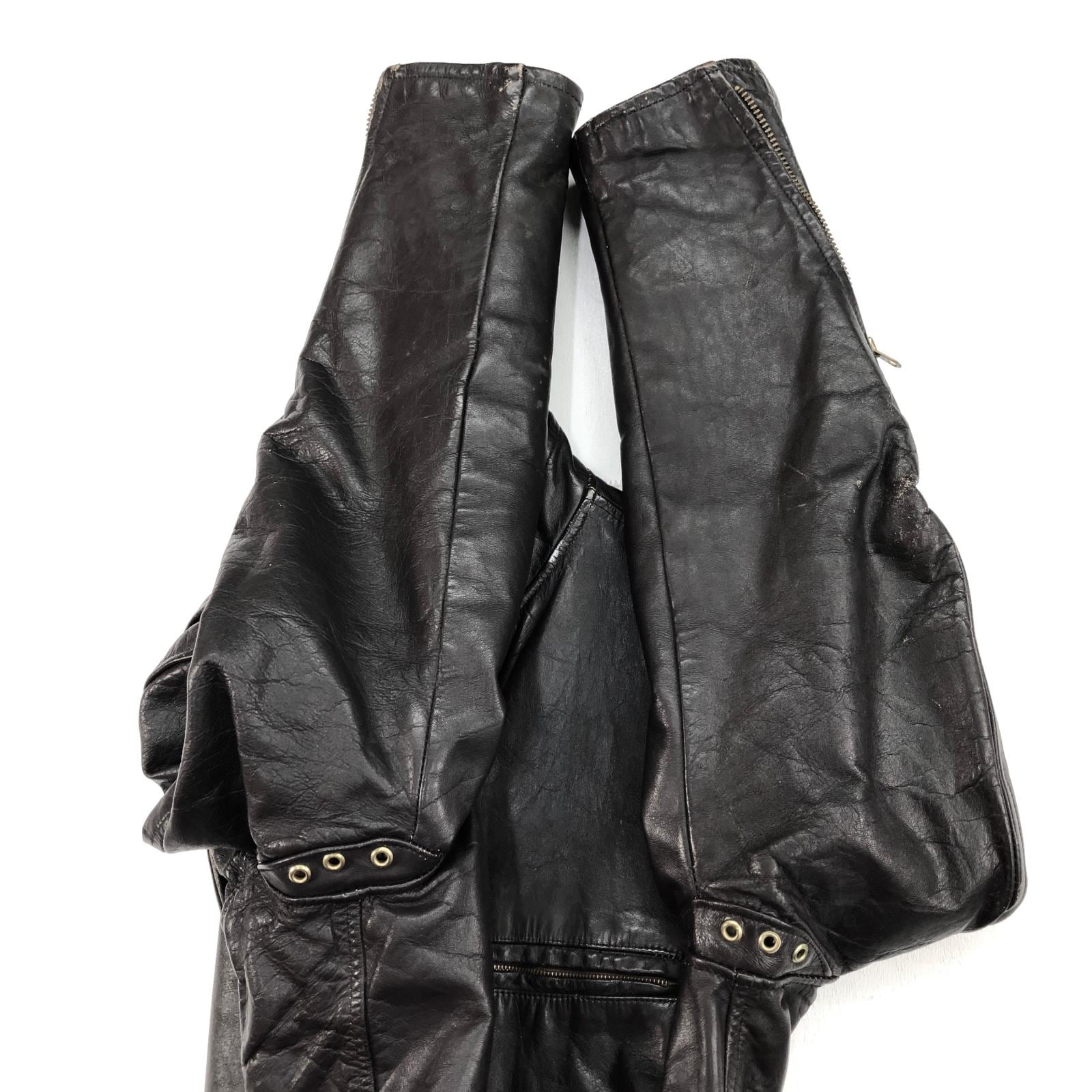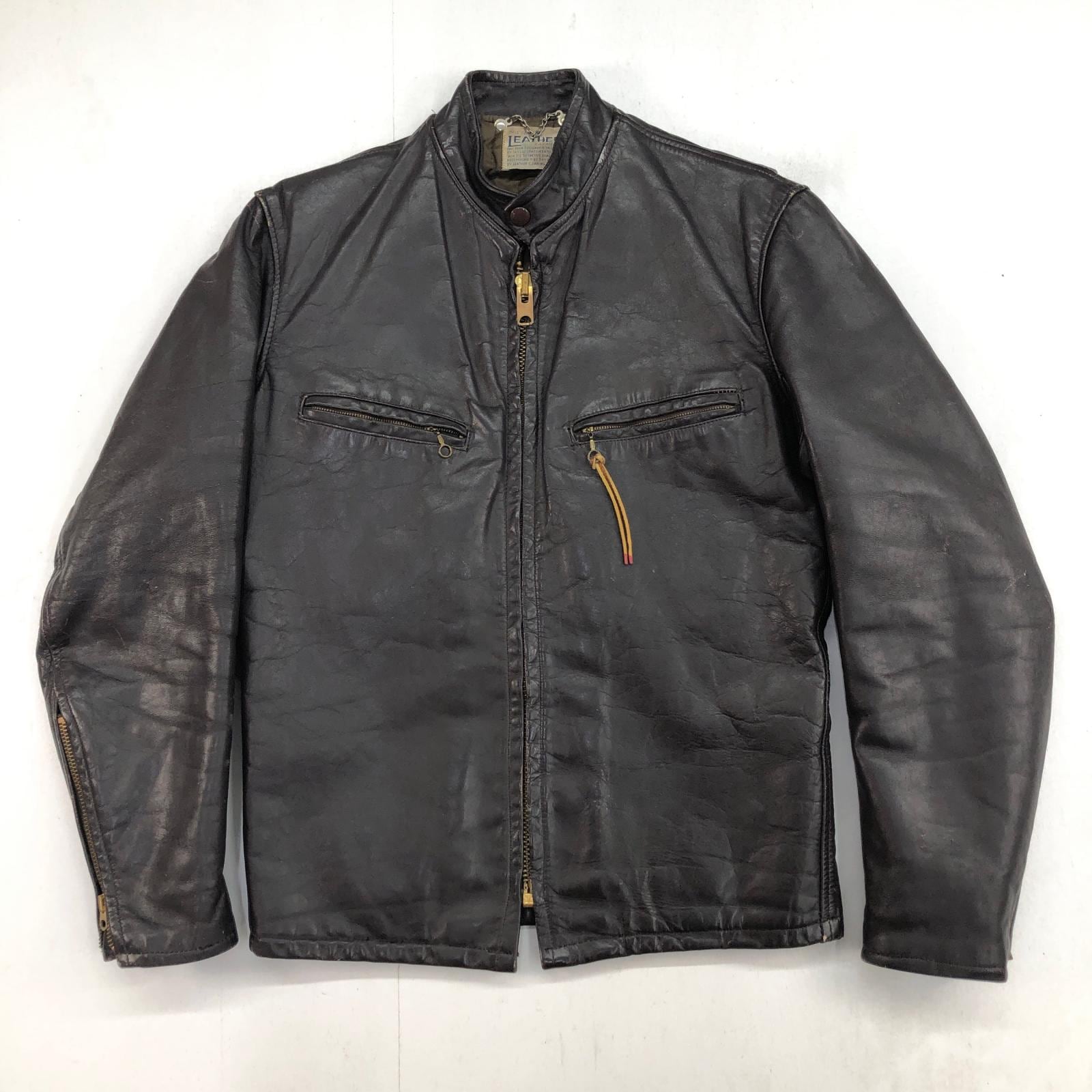 UNKNOWN 70年代あたり GENUINE LEATHER GARMENT シングルライダースジャケット レザージャケット ダークブラウン タグ 表記 サイズ 36 メンズ L 位