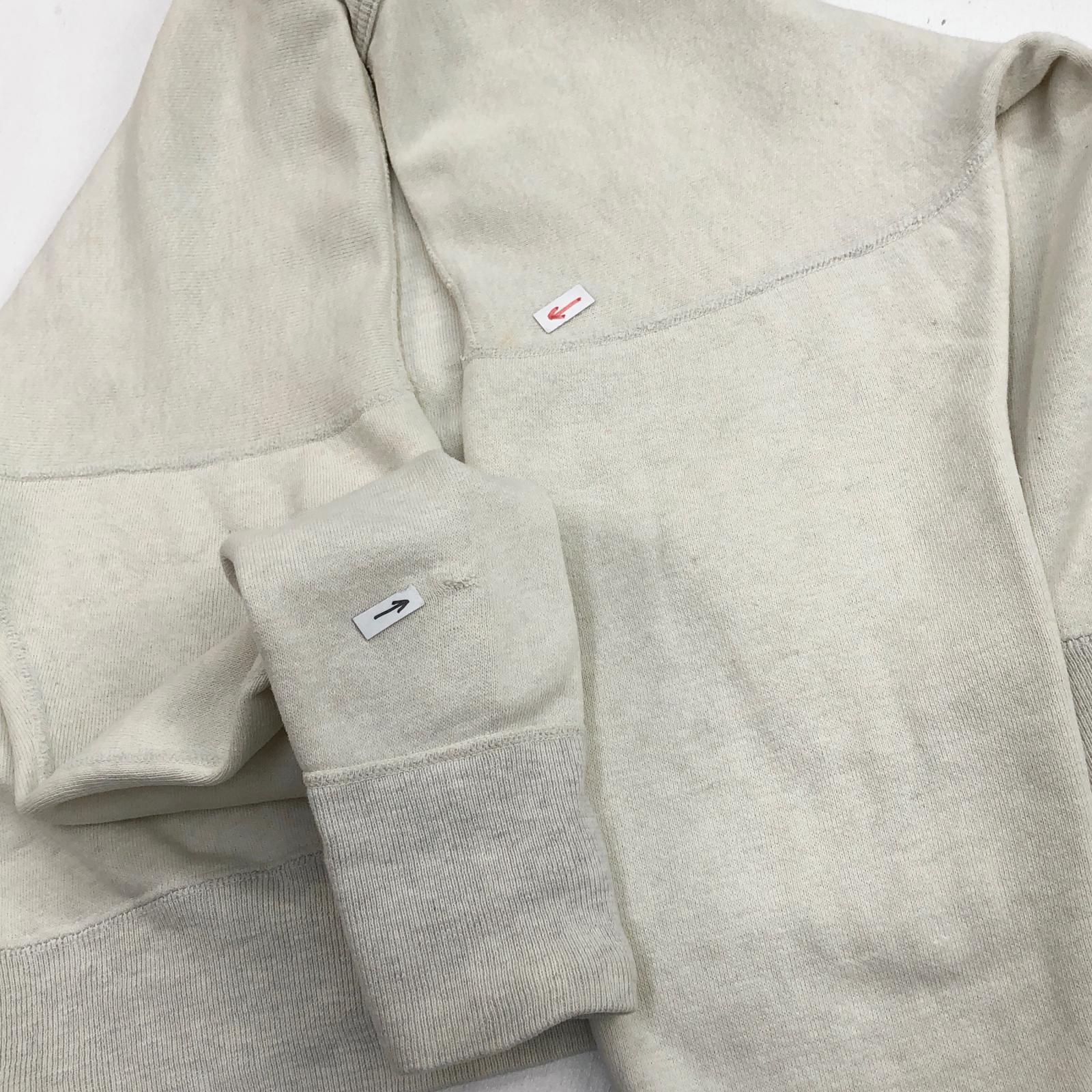 UNKNOWN 50- 60年代 貼り付け 前V 2トーン セットイン スウェット 無地 プレーン オフホワイト タグ 表記 なし メンズ L 位