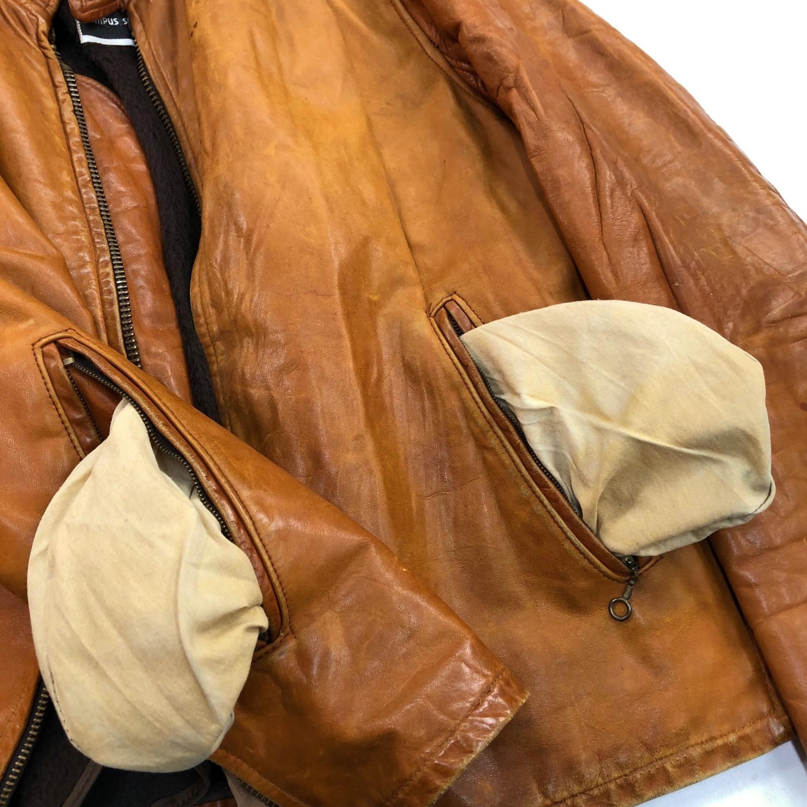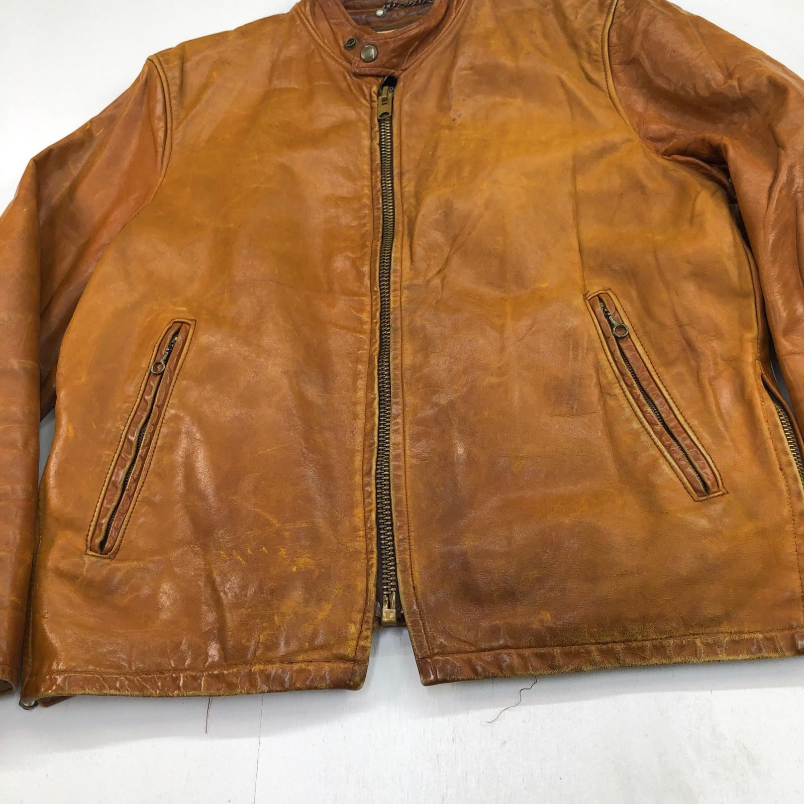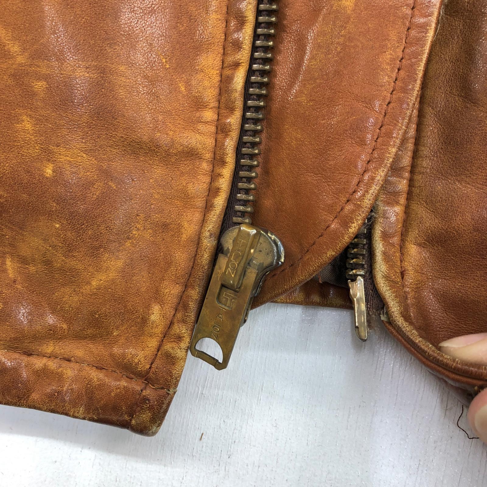 SAWYER'S CAMPUS SHOPS 70年代あたり THIS GENUINE LEATHER GARMENT シングルライダースジャケット レザージャケット TALON ZIP キャメルオレンジ タグ 表記 サイズ 42 メンズ XL 位