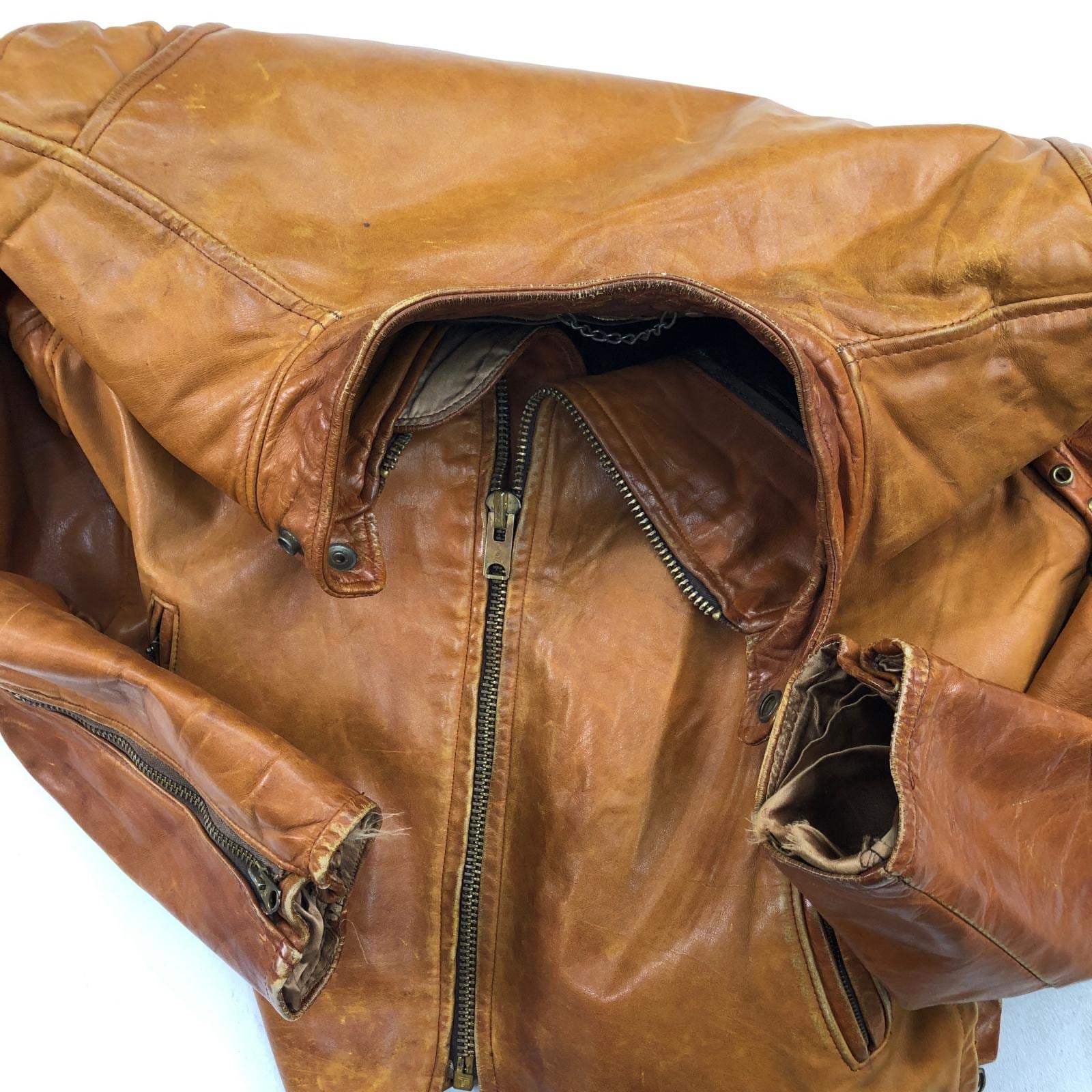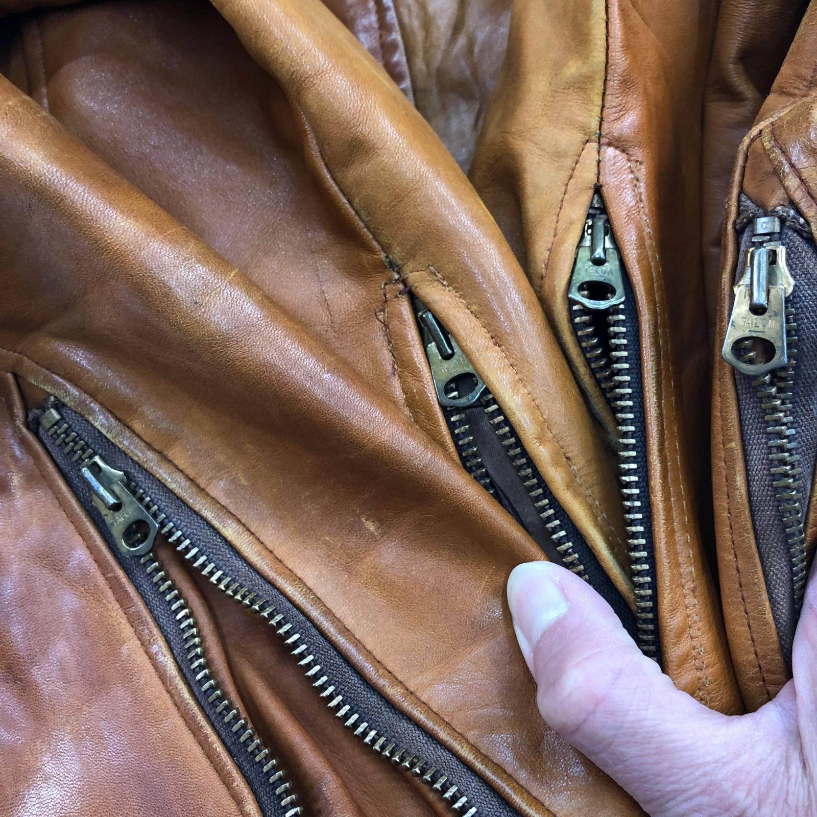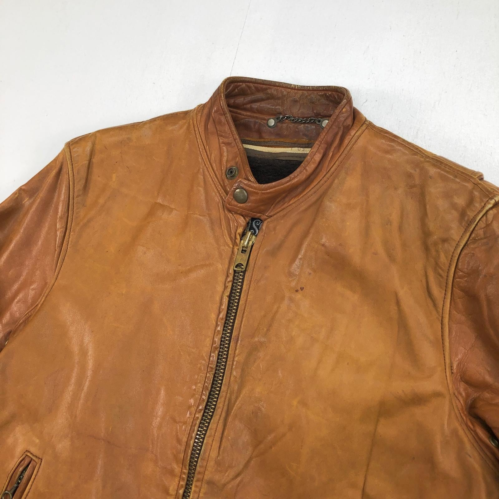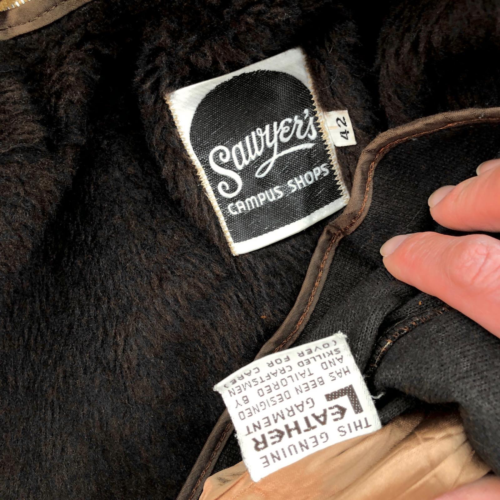 SAWYER'S CAMPUS SHOPS 70年代あたり THIS GENUINE LEATHER GARMENT シングルライダースジャケット レザージャケット TALON ZIP キャメルオレンジ タグ 表記 サイズ 42 メンズ XL 位