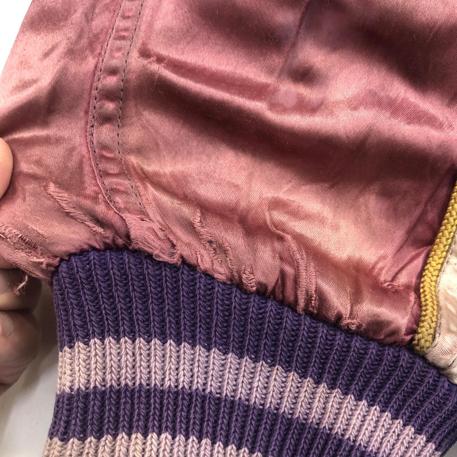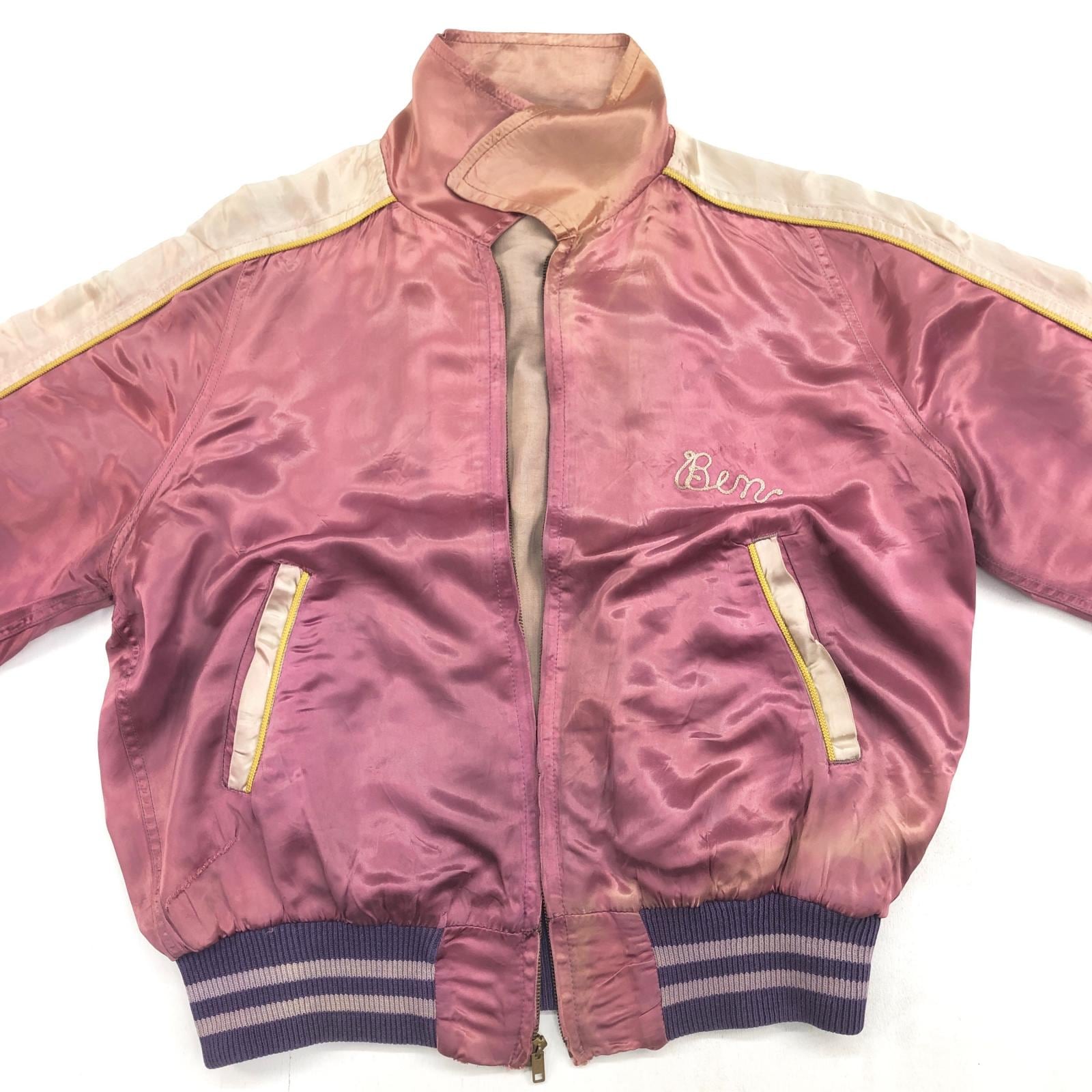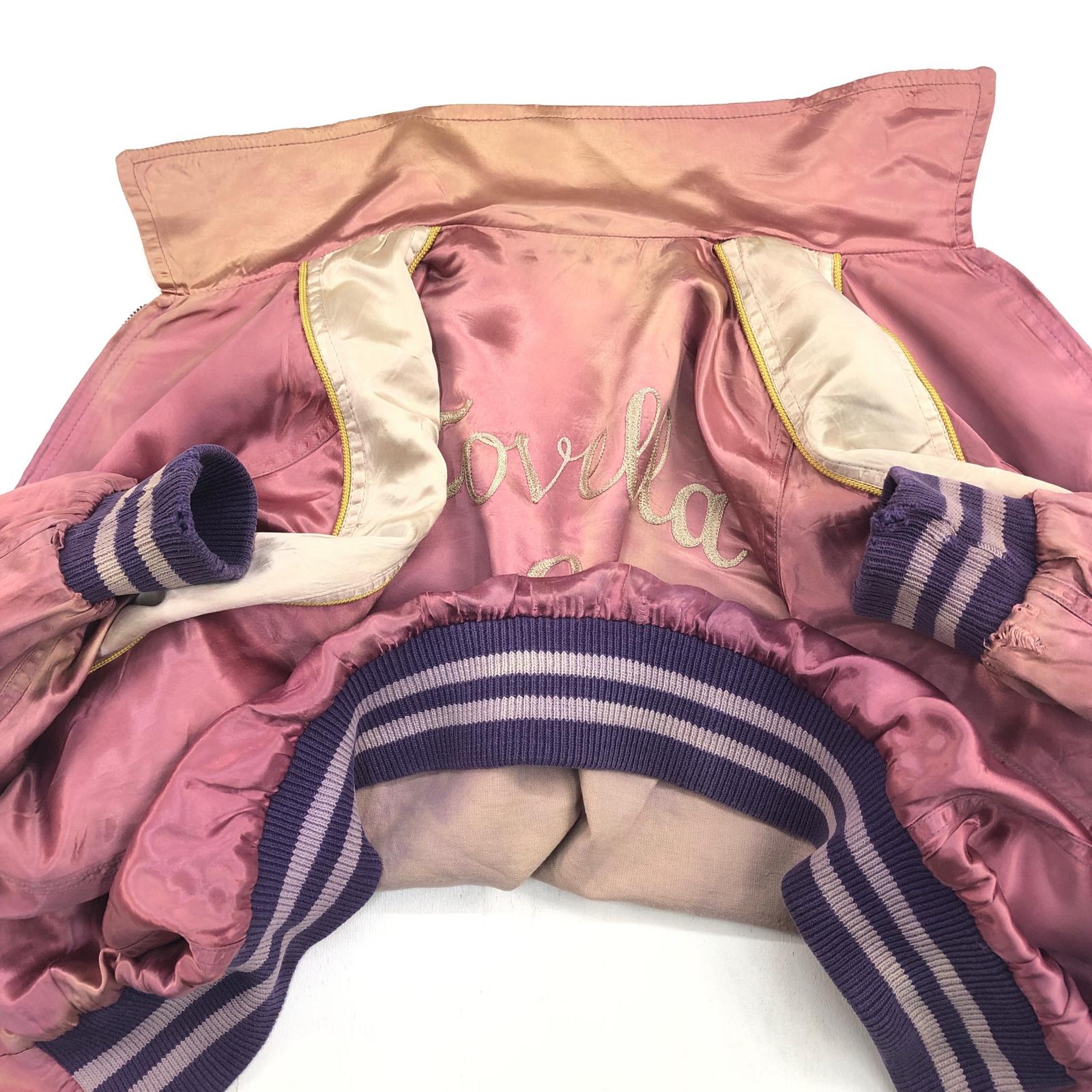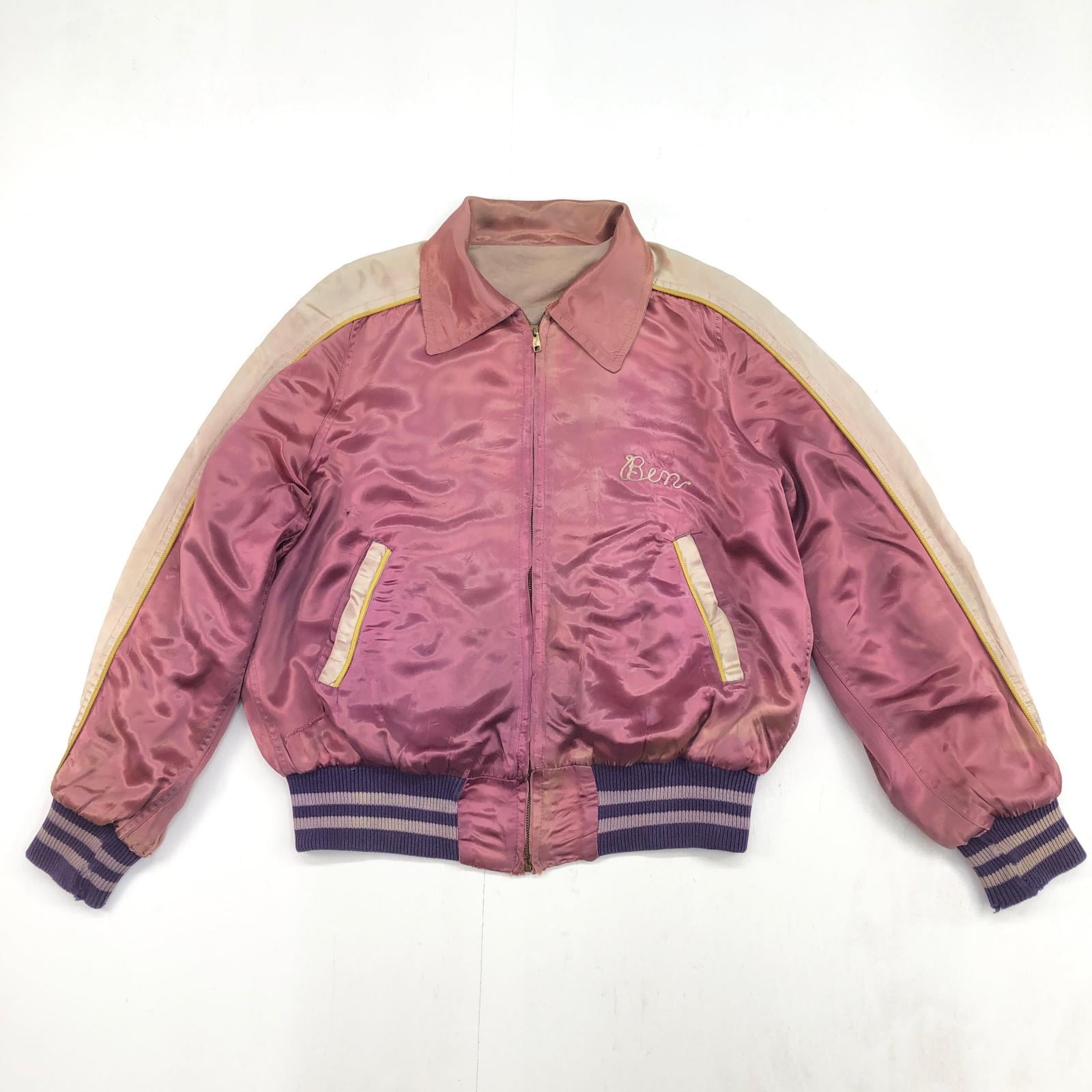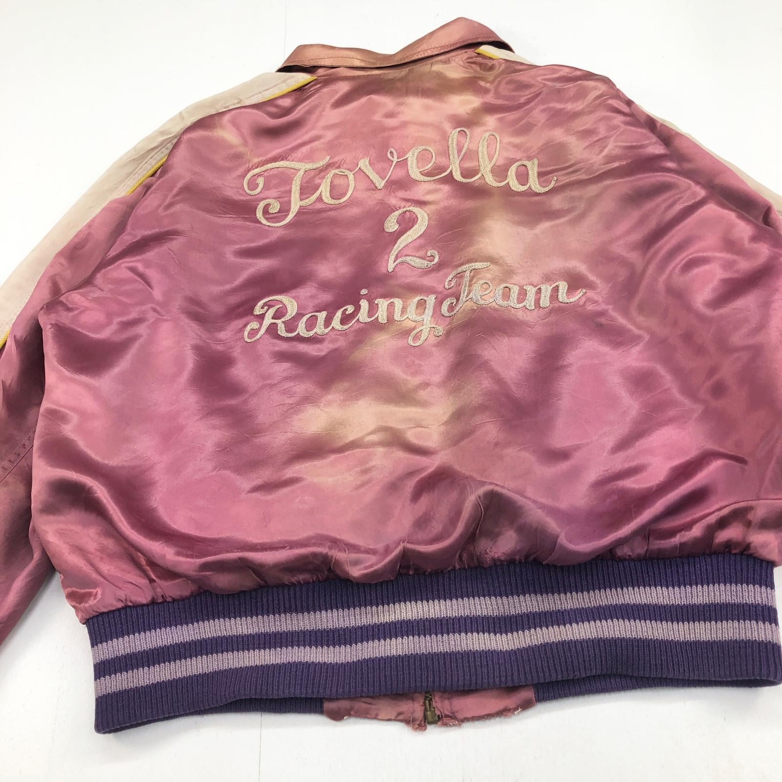 UNKNOWN 50年代 FOVELLA 2 RACING TEAM カークラブジャケット サテンジャケット 両面 チェーン刺入り パープル ピンク メンズ L- XL 位
