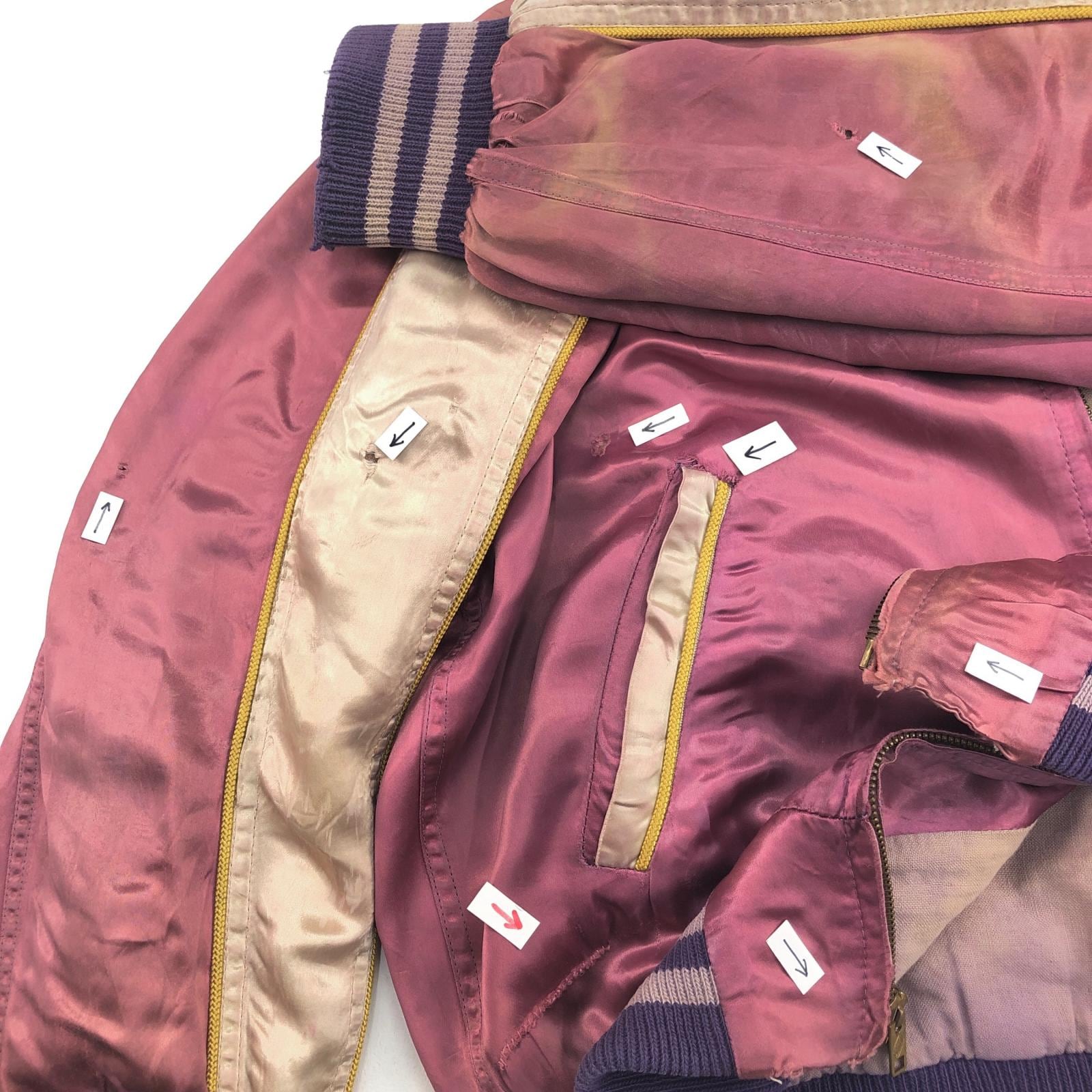 裏側袖黒矢印のところに小穴、袖先少し擦れ、