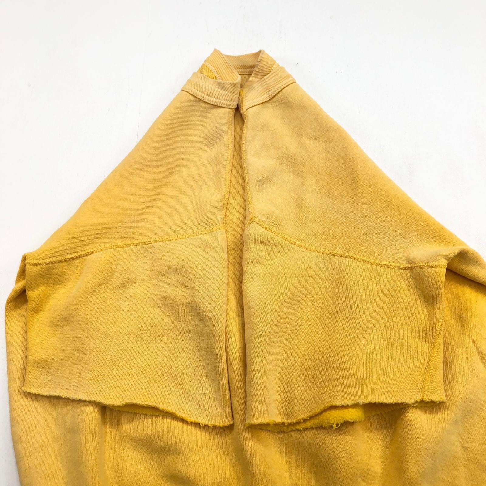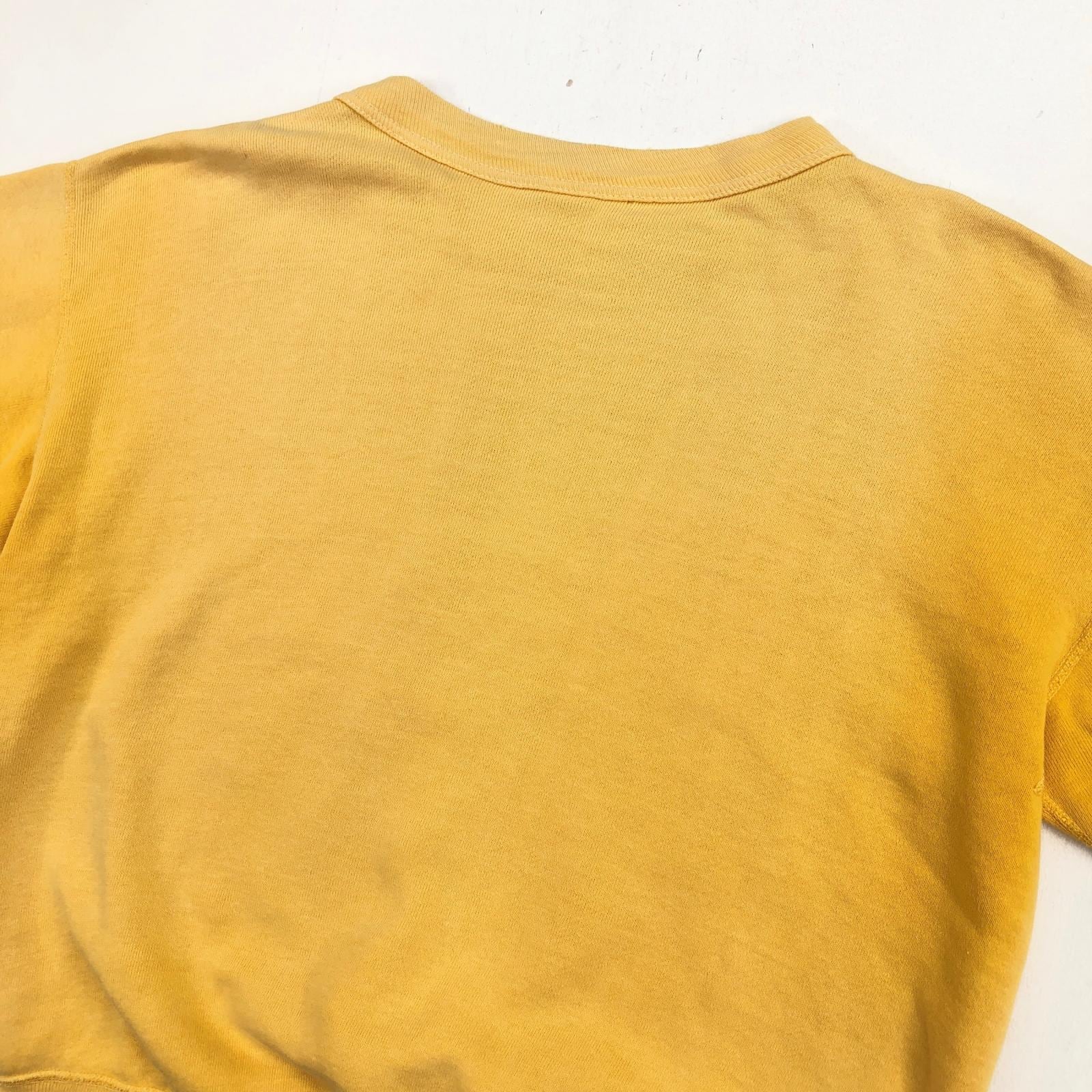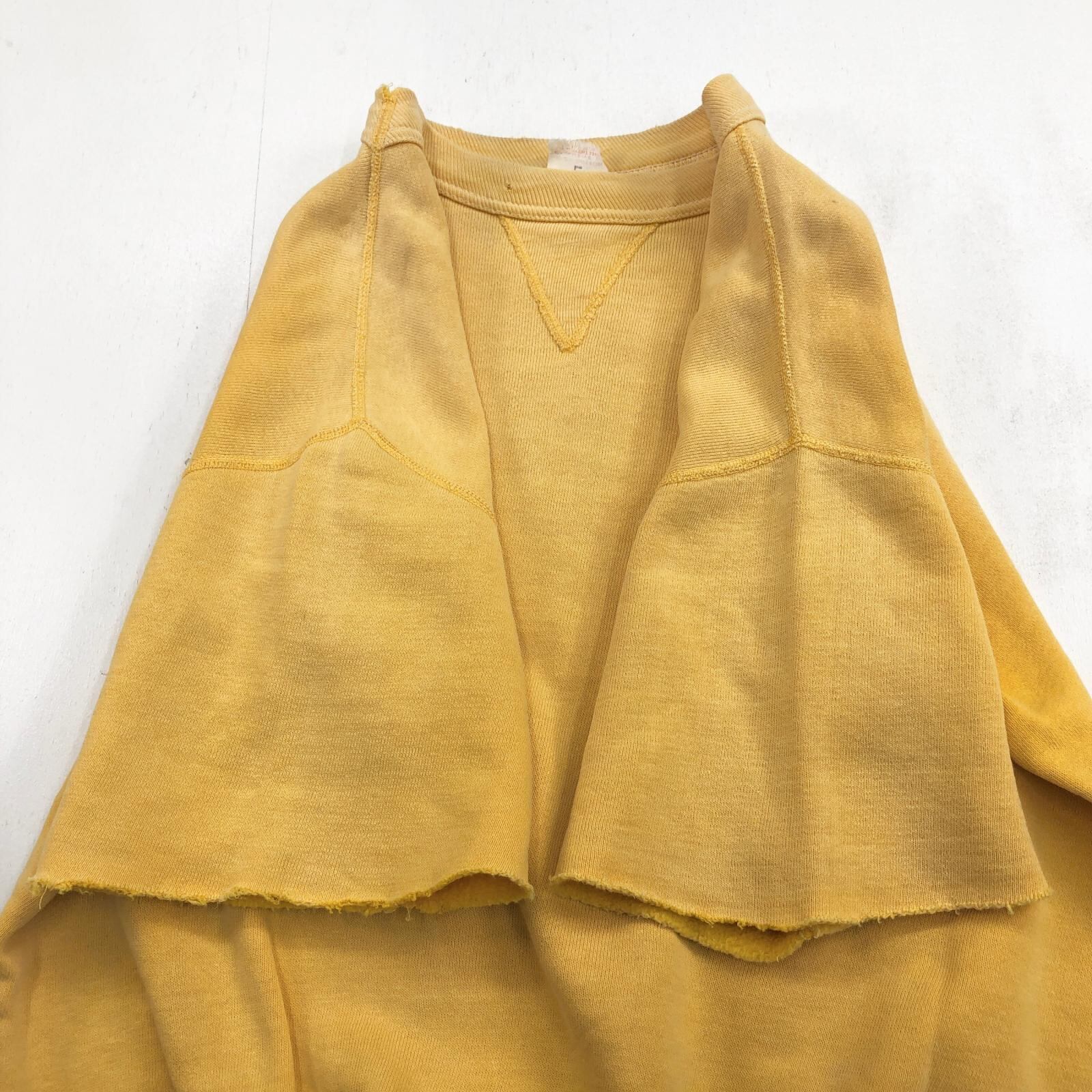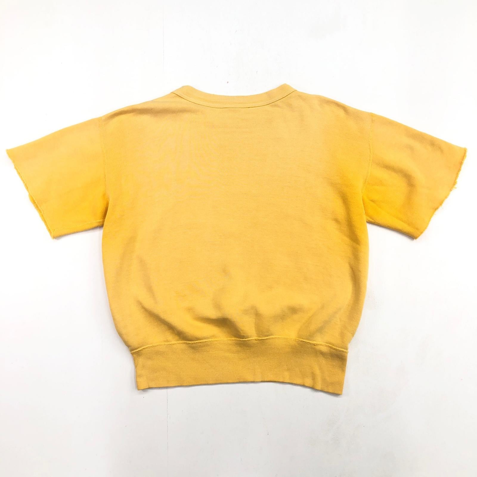 RUSSELL ATHLETIC ラッセル 50- 60年代 USA製 貼り付け 前V サイズタグ 前期 染み込みプリント カットオフ スウェット リブ長 丸胴 セットインスリーブ キャラクター スポーツチーム ワンポイント イエロー タグ 表記 サイズ L メンズ XL 位