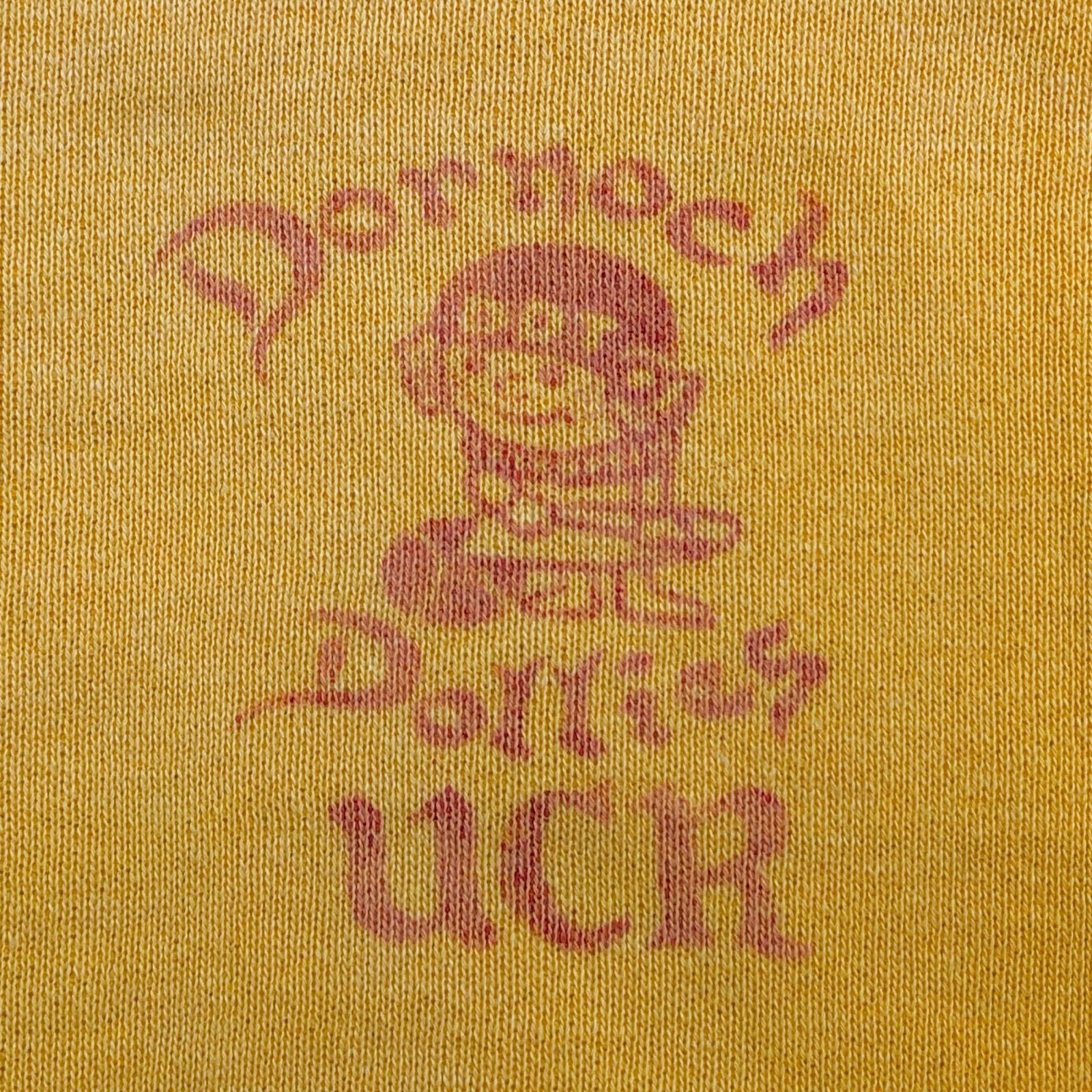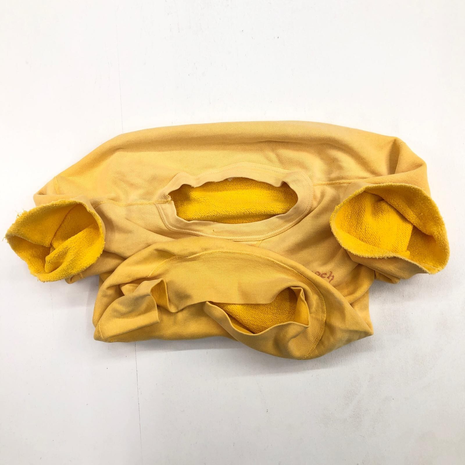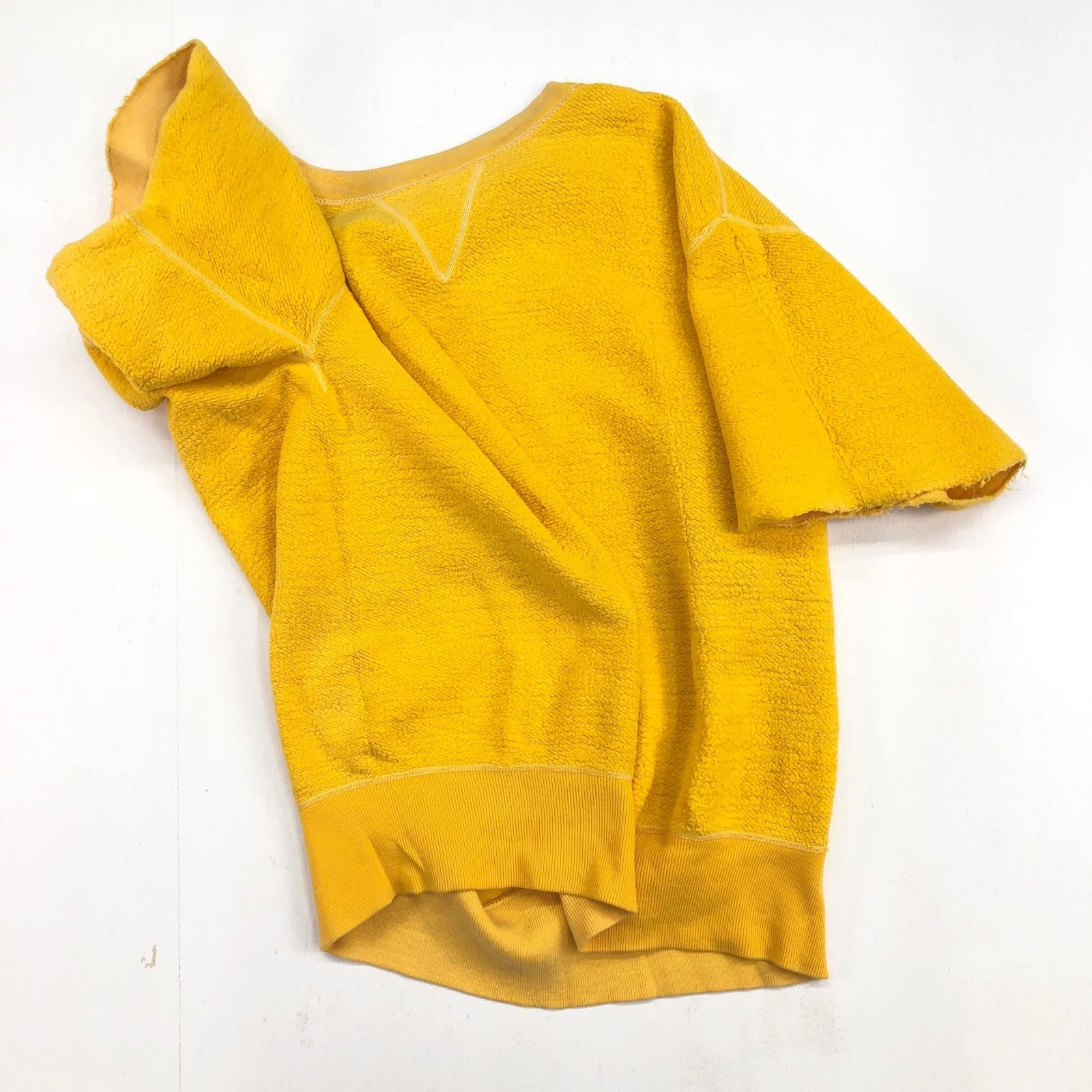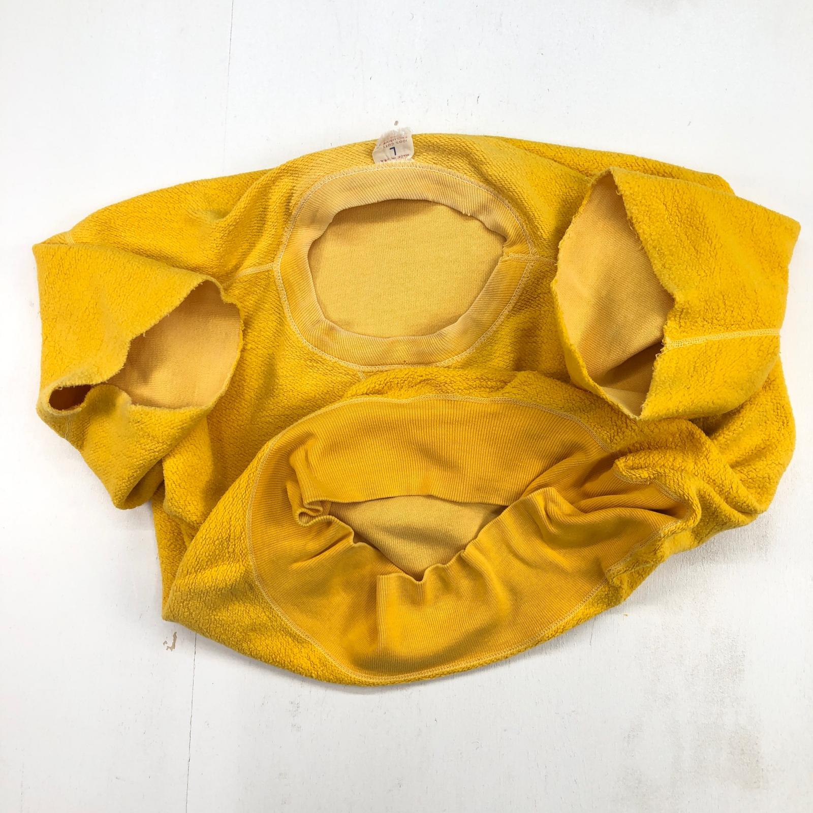 RUSSELL ATHLETIC ラッセル 50- 60年代 USA製 貼り付け 前V サイズタグ 前期 染み込みプリント カットオフ スウェット リブ長 丸胴 セットインスリーブ キャラクター スポーツチーム ワンポイント イエロー タグ 表記 サイズ L メンズ XL 位