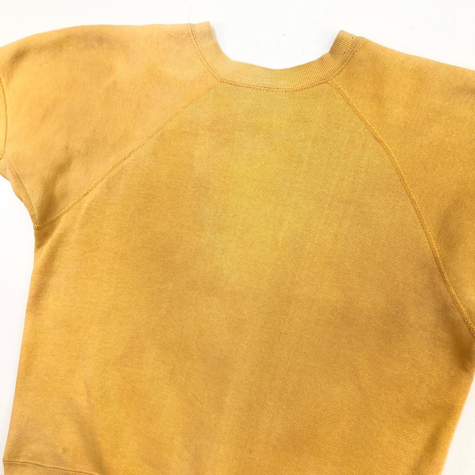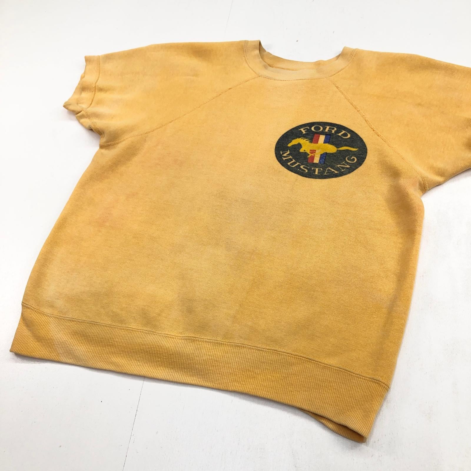 UNKNOWN 60年代 FORD MUSTANG ラグランスリーブ 丸胴 半袖スウェット ワンポイント 企業 プリント 染み込み プリント イエローオレンジ タグ 表記 サイズ なし メンズ ML 位