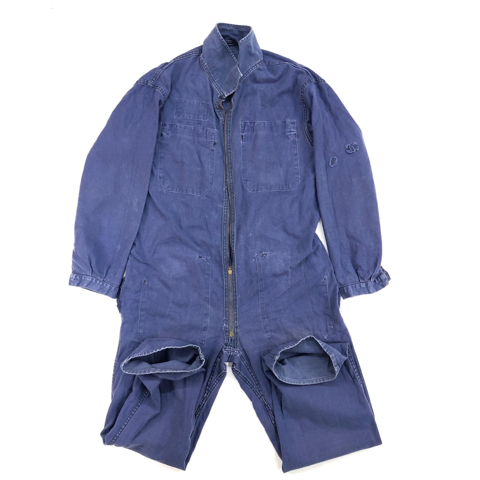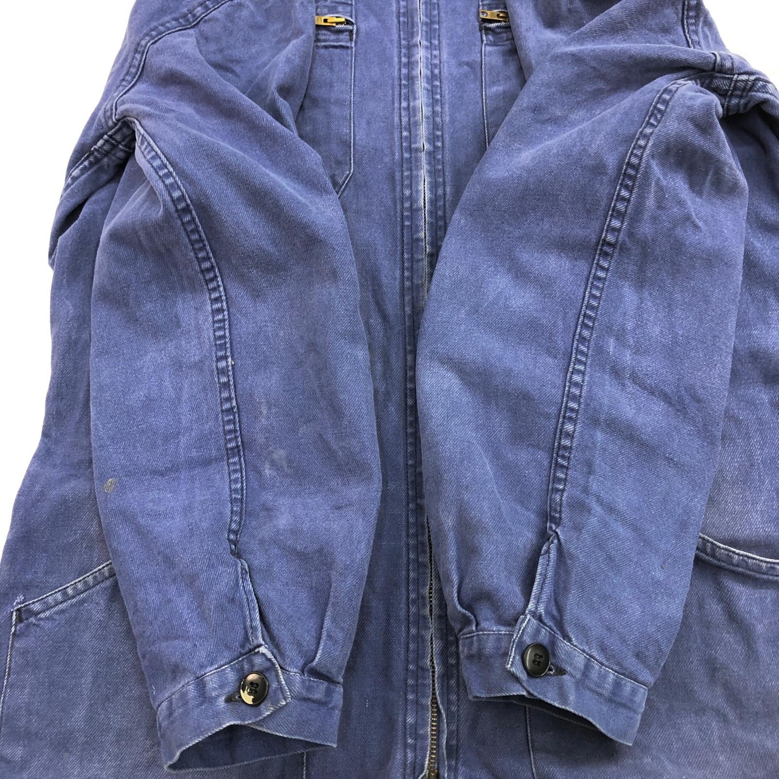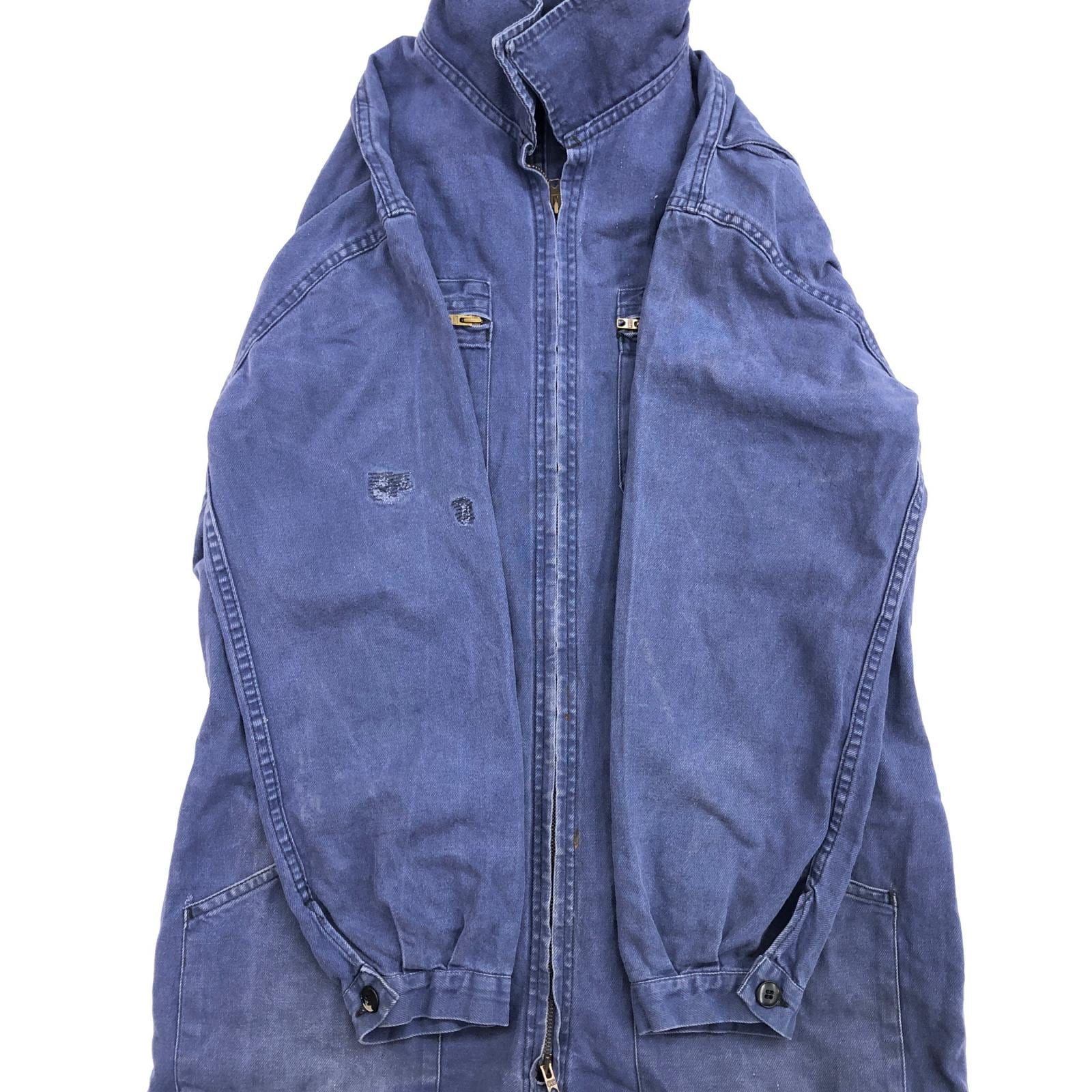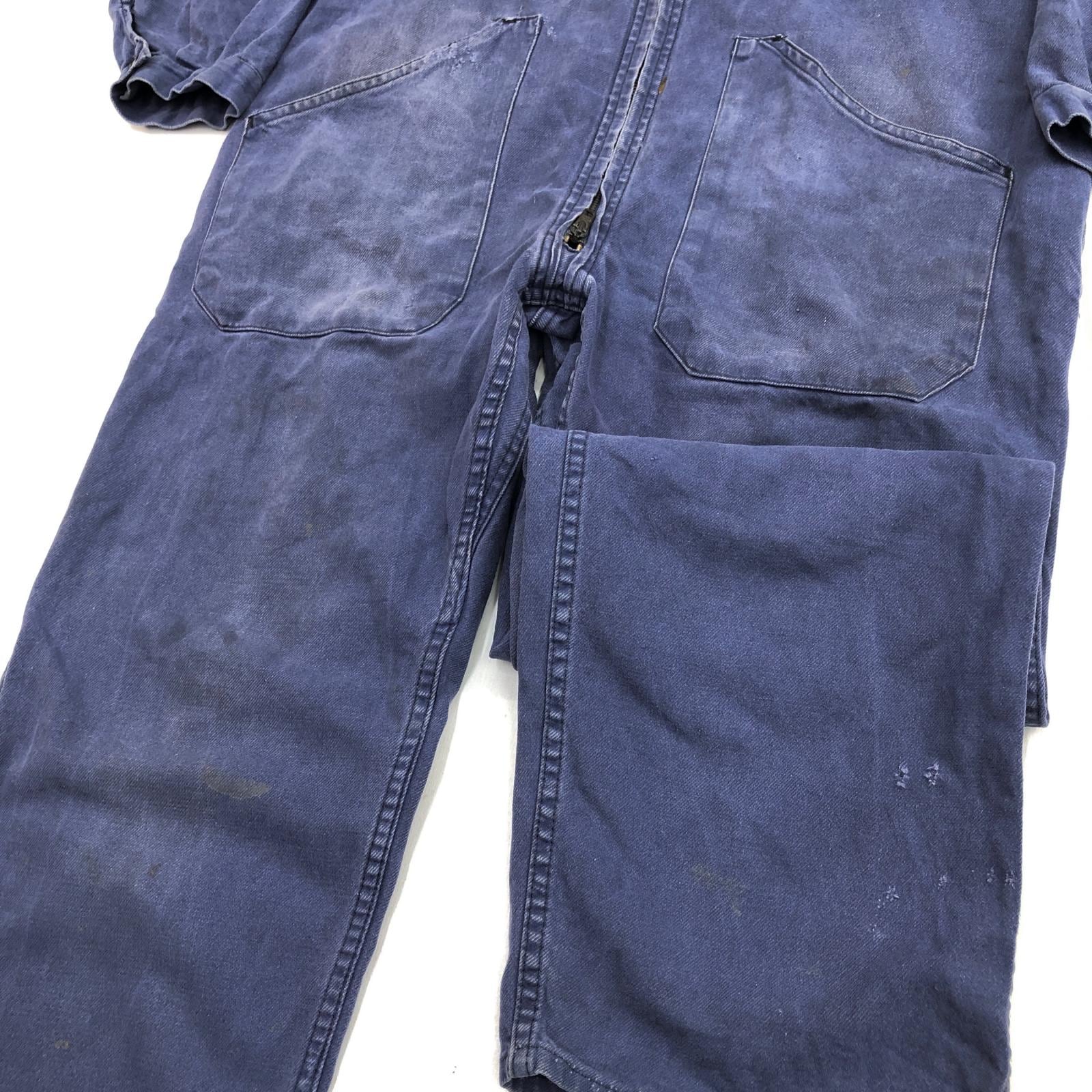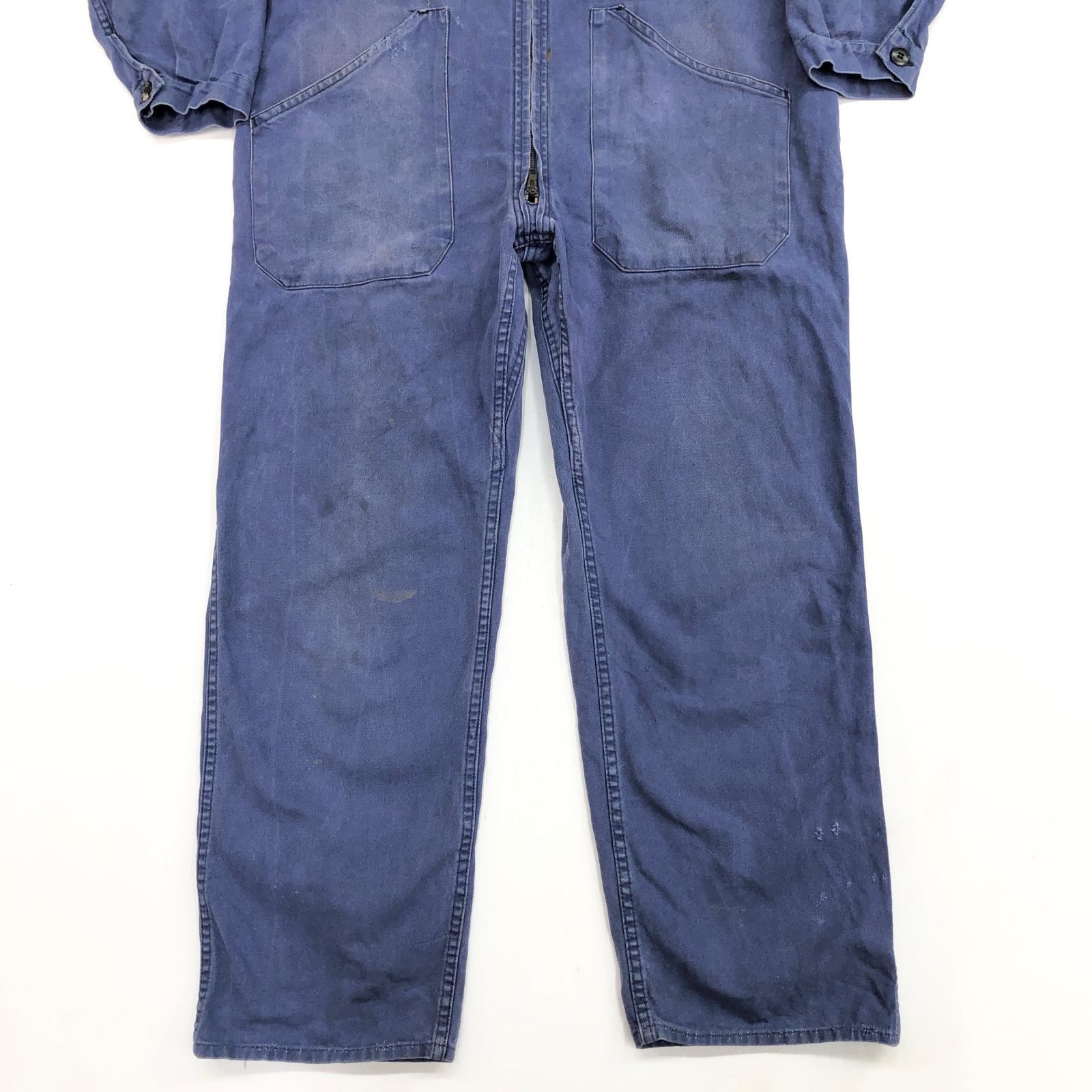 UNKNOWN 80- 90年代 FRANCE製 COVERALLS ユーロワーク フレンチワーク コットン ツイル つなぎ オールインワン ブルー タグ 表記 サイズ 50 W42 L29 位