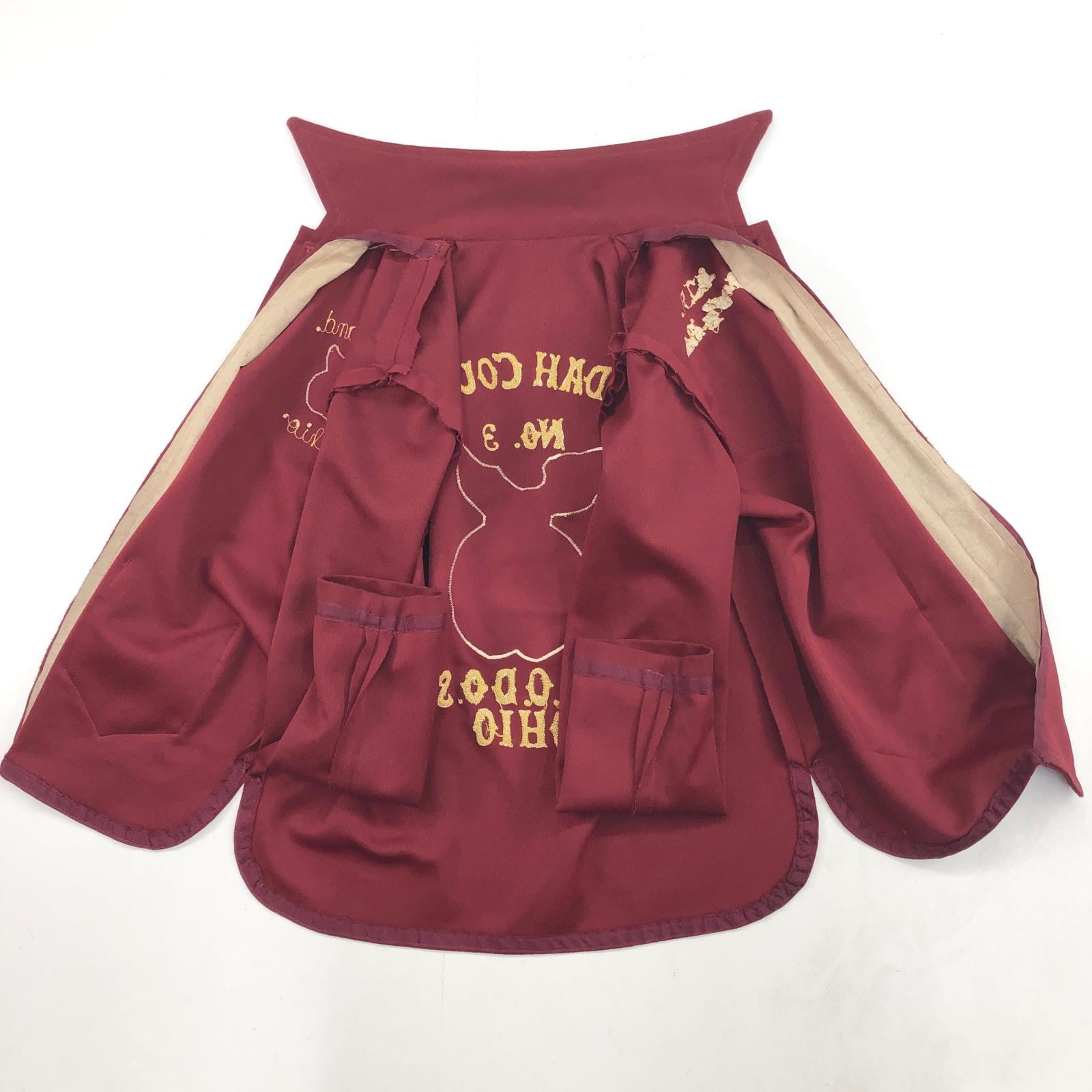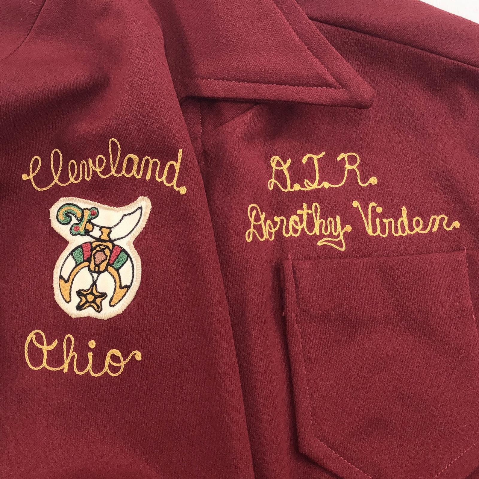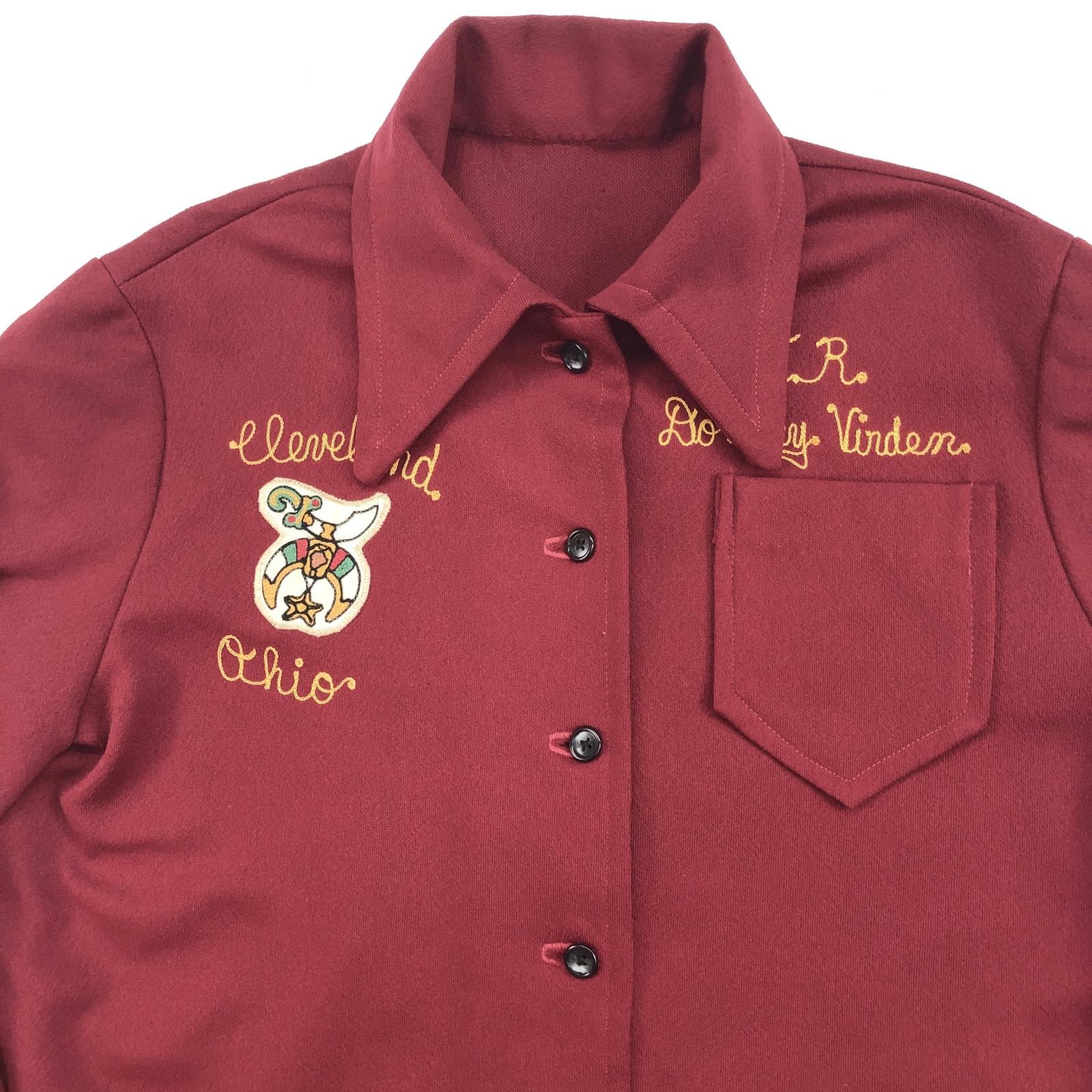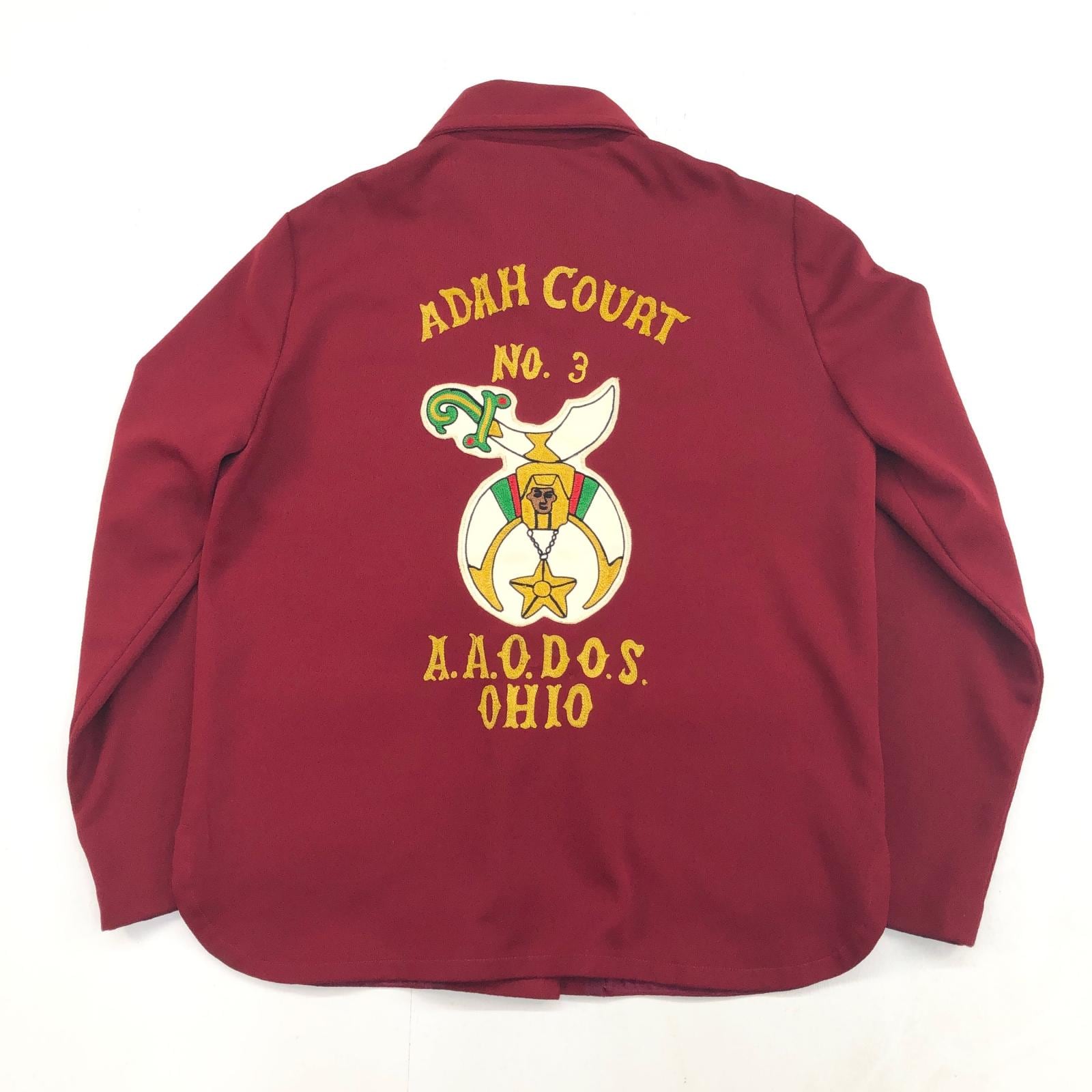 UNKNOWN 70年代 フリーメイソン シュライナーズ 両面刺繍 パッチ付き ハンドメイド ポリエステルジャケット バーガンディー 右前合わせ メンズ ML 位