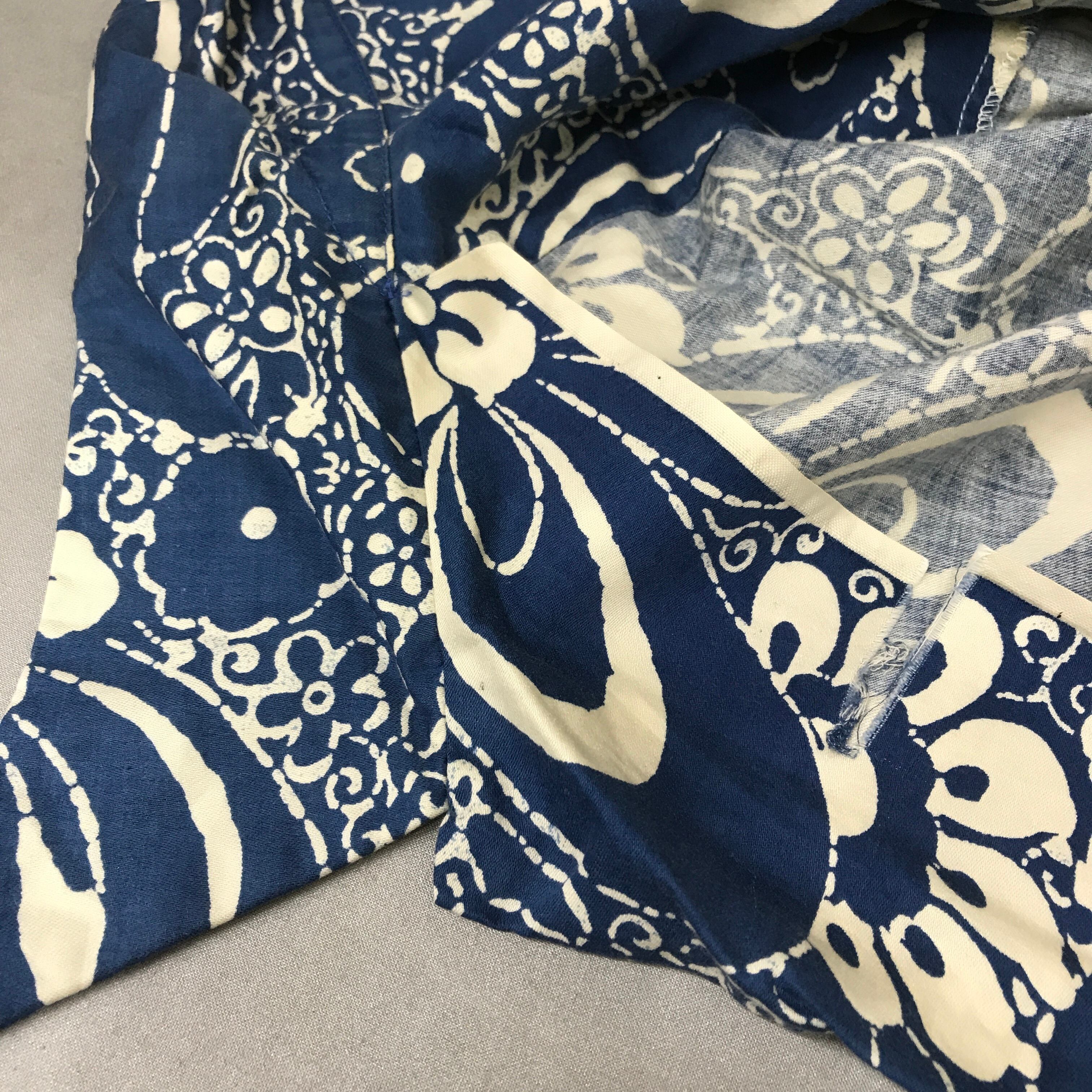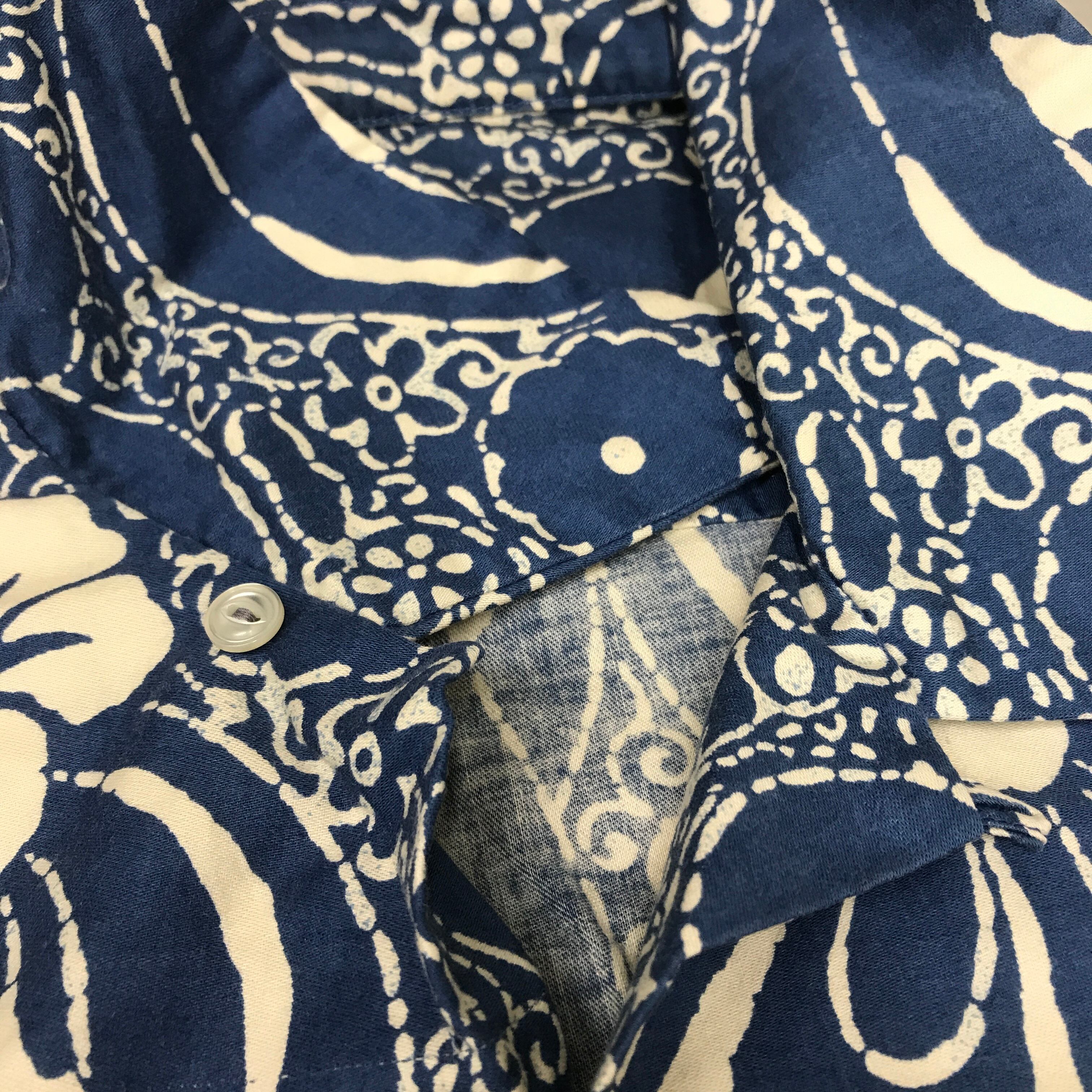 60〜70年代 ハワイアンシャツ アロハシャツ 藍染風 メタル風ボタン セルビッジつき 総柄 和柄 半袖