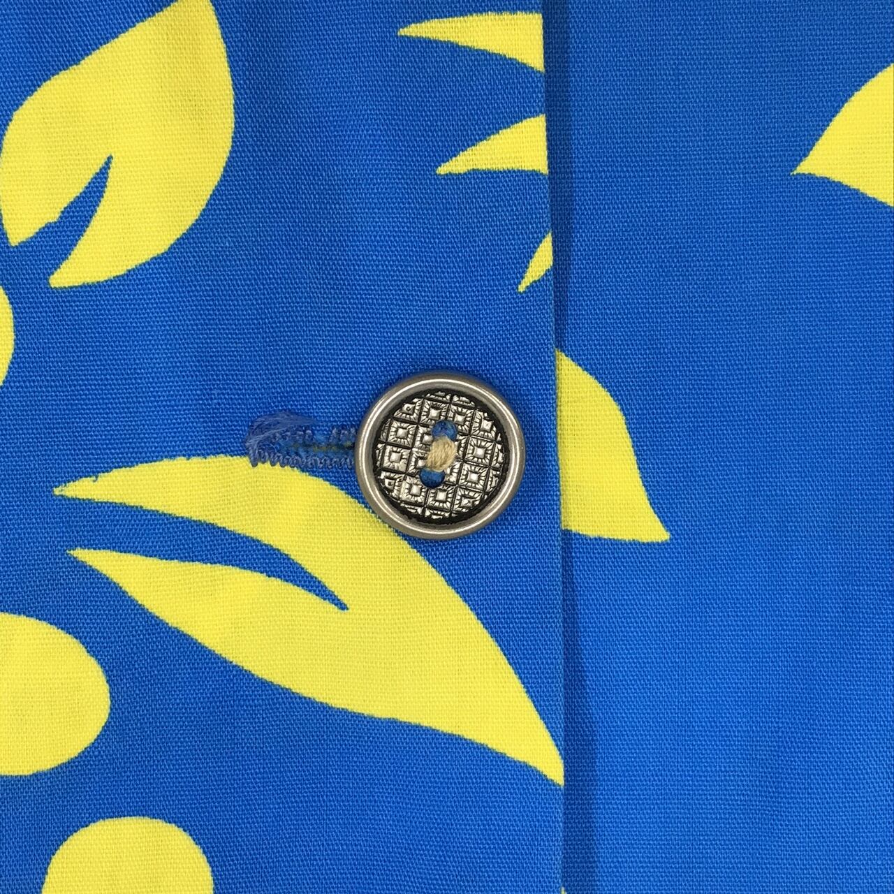 60〜70年代 米国製 UI-Maikai RN 26300 ハワイアンシャツ ポップなイエローとブルーアロハシャツ アメリカ USA 総柄 半袖