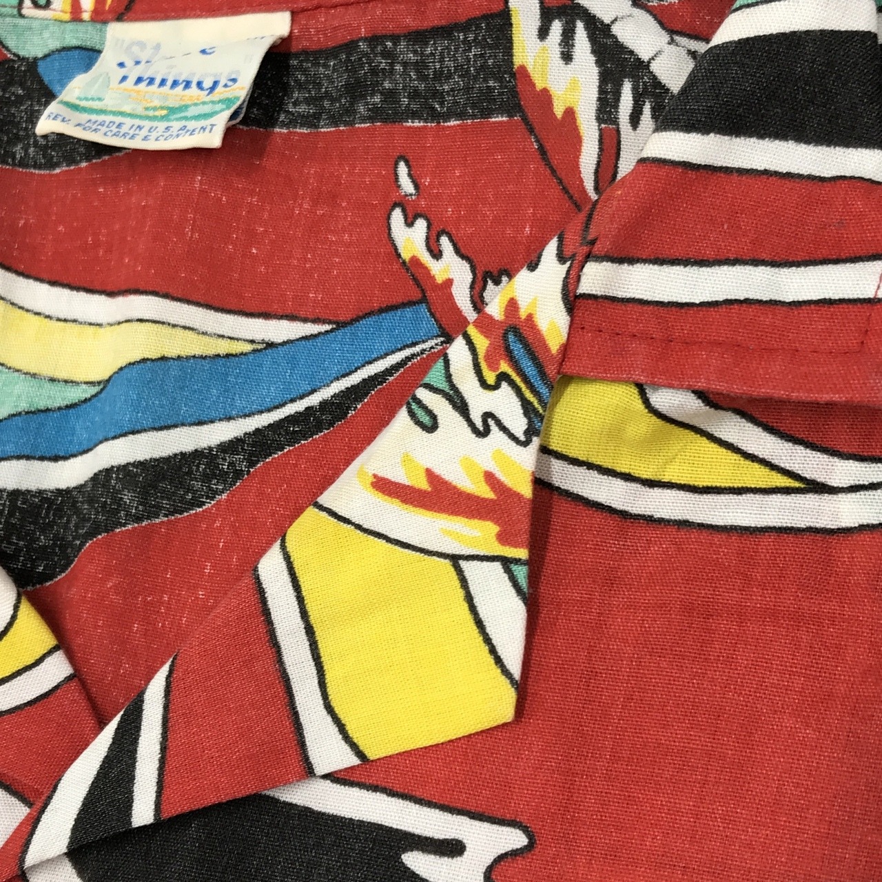 70〜80年代 米国製 ShoreShore Things RN 45055 peter max調 ヴィヴィッドカラー ハワイアンシャツ アロハシャツ アメリカ USA 総柄 半袖