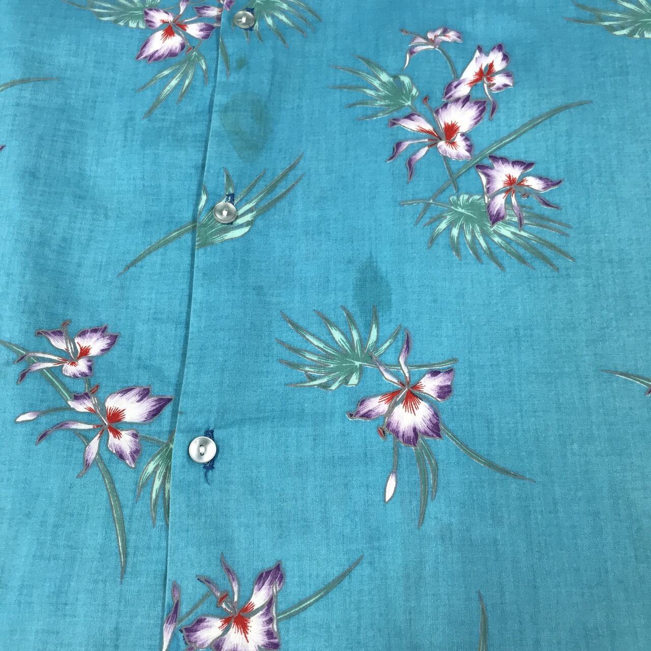 60〜70年代 米国製 KOLEKOLE 上品な花モチーフ コットン さわやかブルー ハワイアンシャツ アロハシャツ アメリカ USA 総柄 半袖