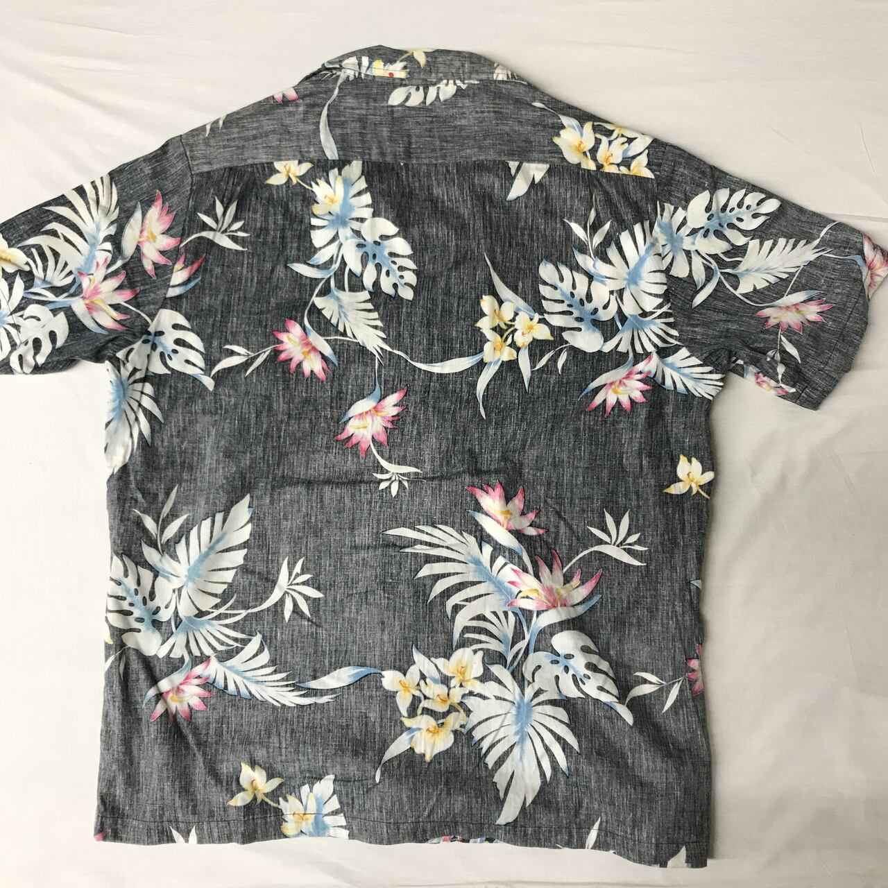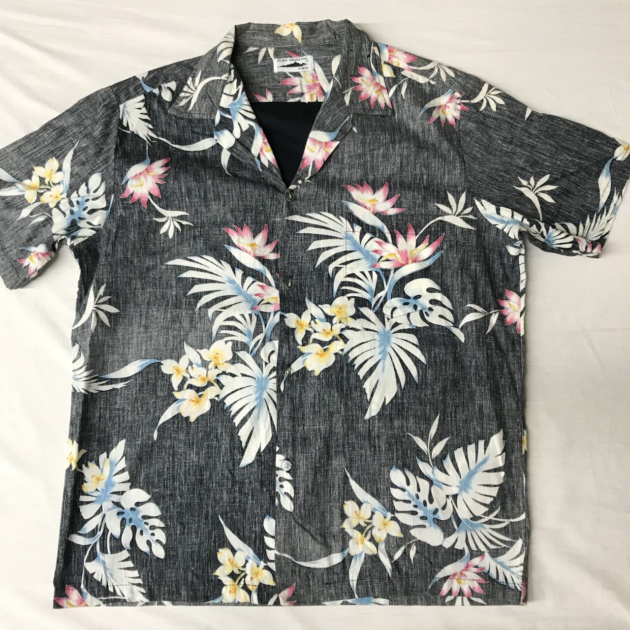 80年代 ISLAND CONNECTION 黒裏地づかい花々と草木モチーフ ハワイアンシャツ アロハ