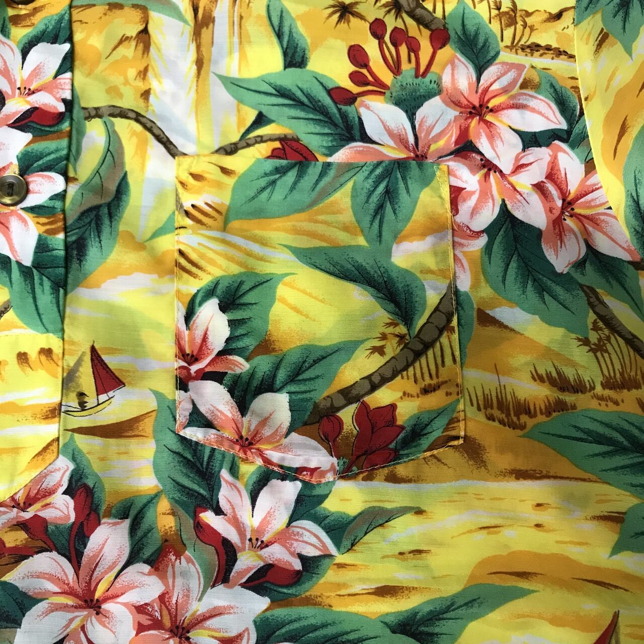 70年代 Chemis Et Cie プルオーバー 三角タグ イエロー ヴィンテージ柄の ハワイアンシャツ アロハ
