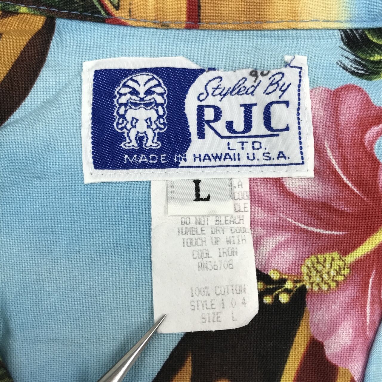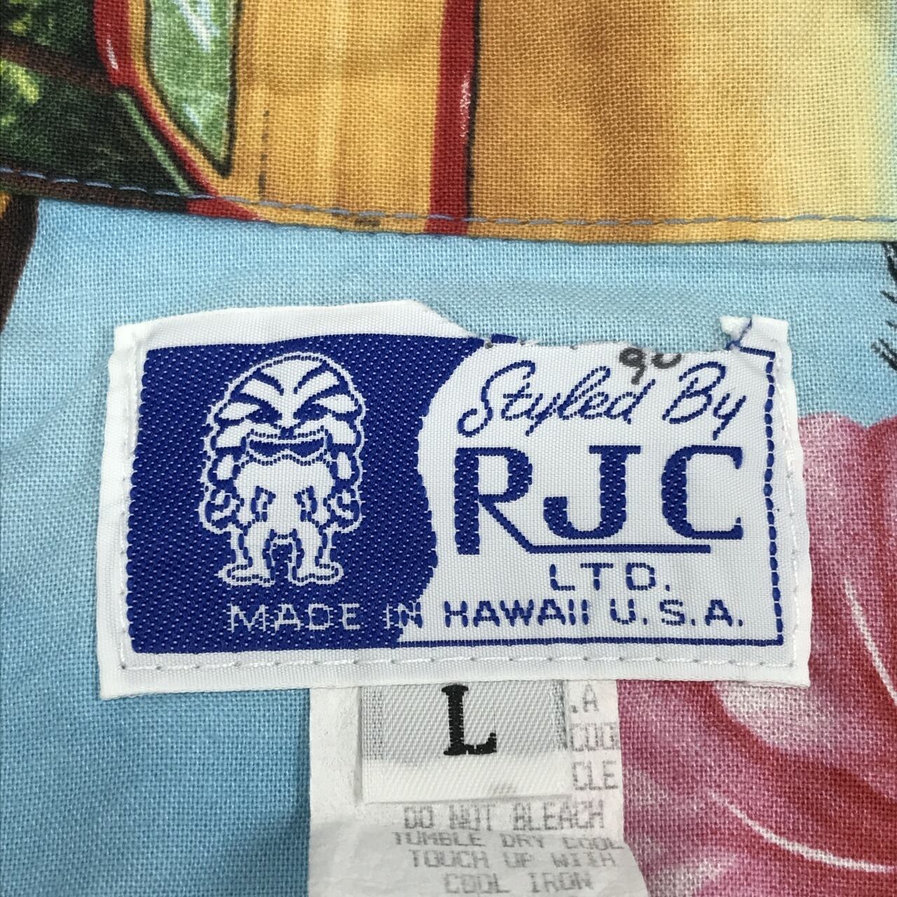80年代 米国製 RJC RN 36708 80'S WOODY WAGON SURF ハワイアンシャツ アロハシャツ ライトブルー アメリカ USA 米国