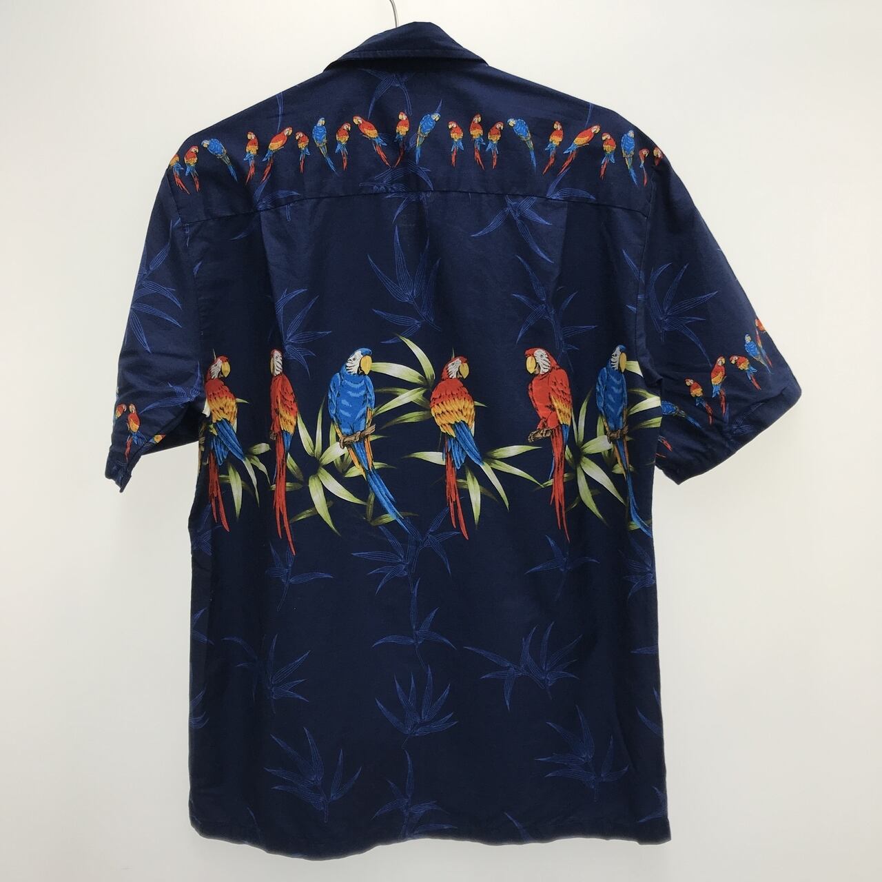 80〜90年代 米国製 PACIFICLEGEND ハワイアンシャツ 愛らしい・PARROT柄 アロハシャツ ネイビー USA製