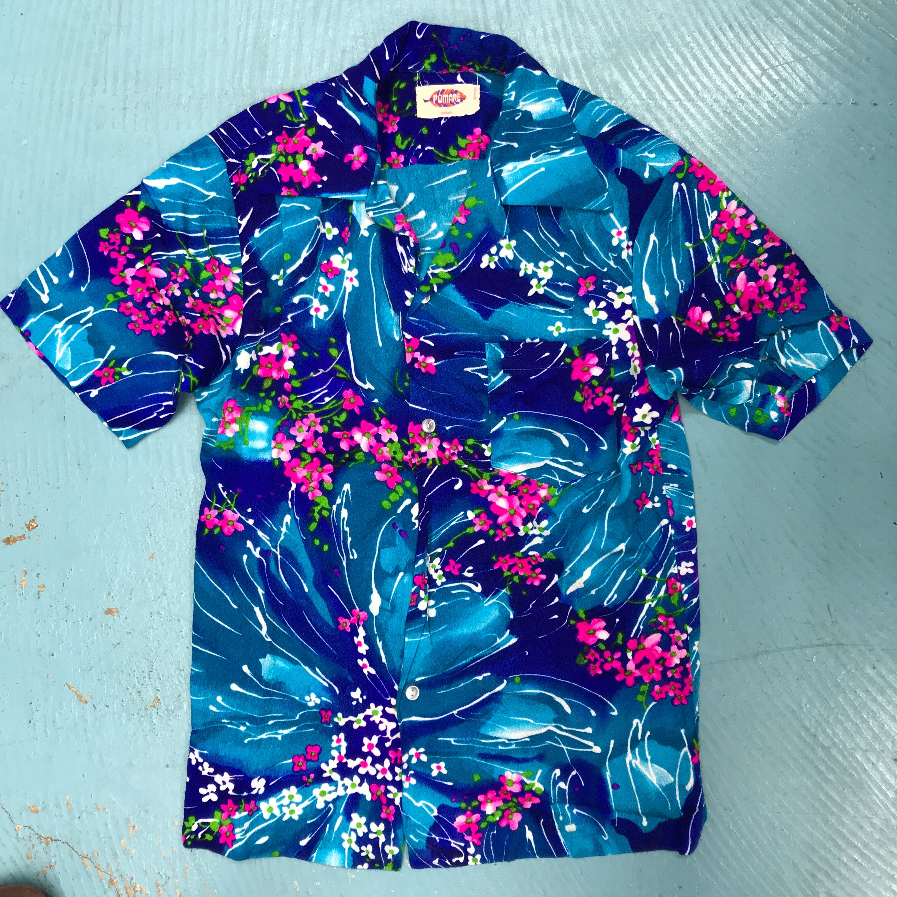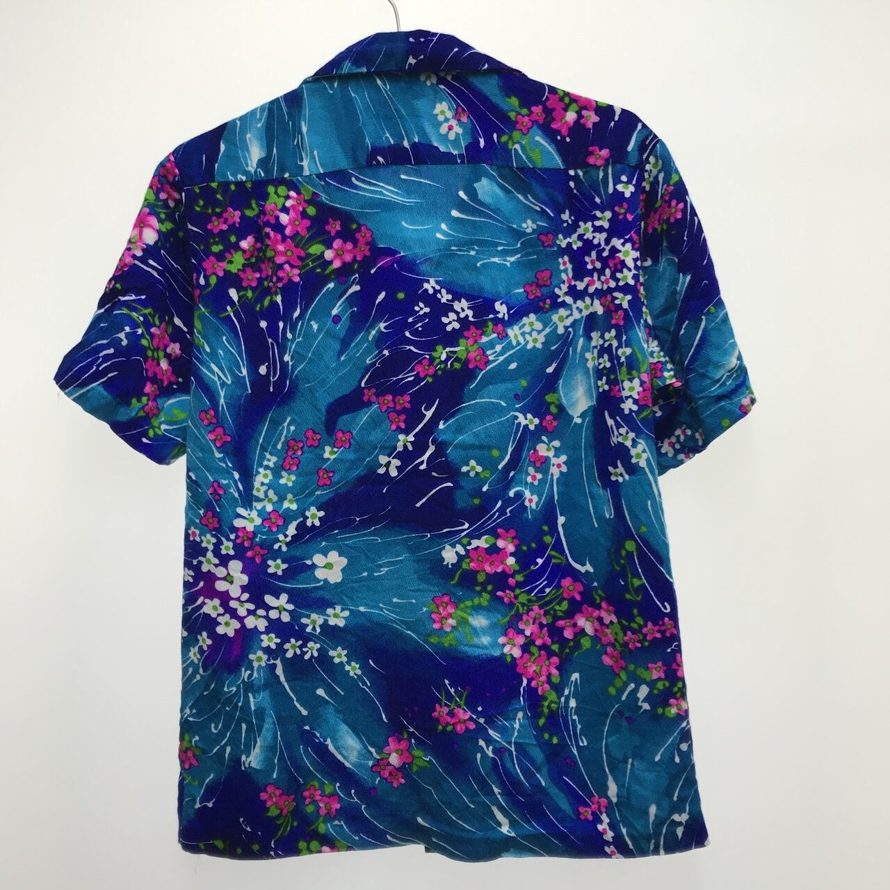 70年代 POMARE HAWAII 小さめハワイアンシャツ アロハ レトロな花柄 ソフトポリ
