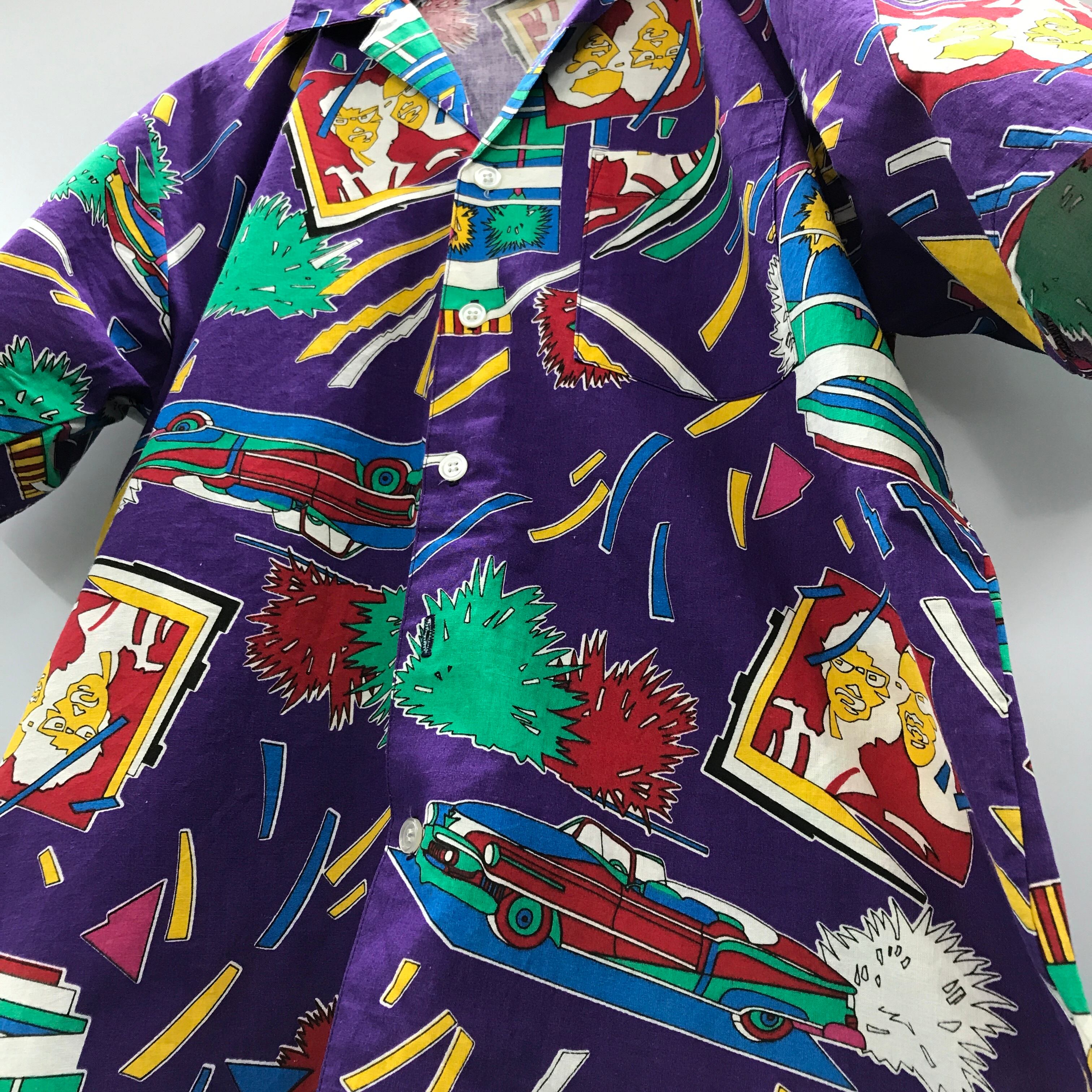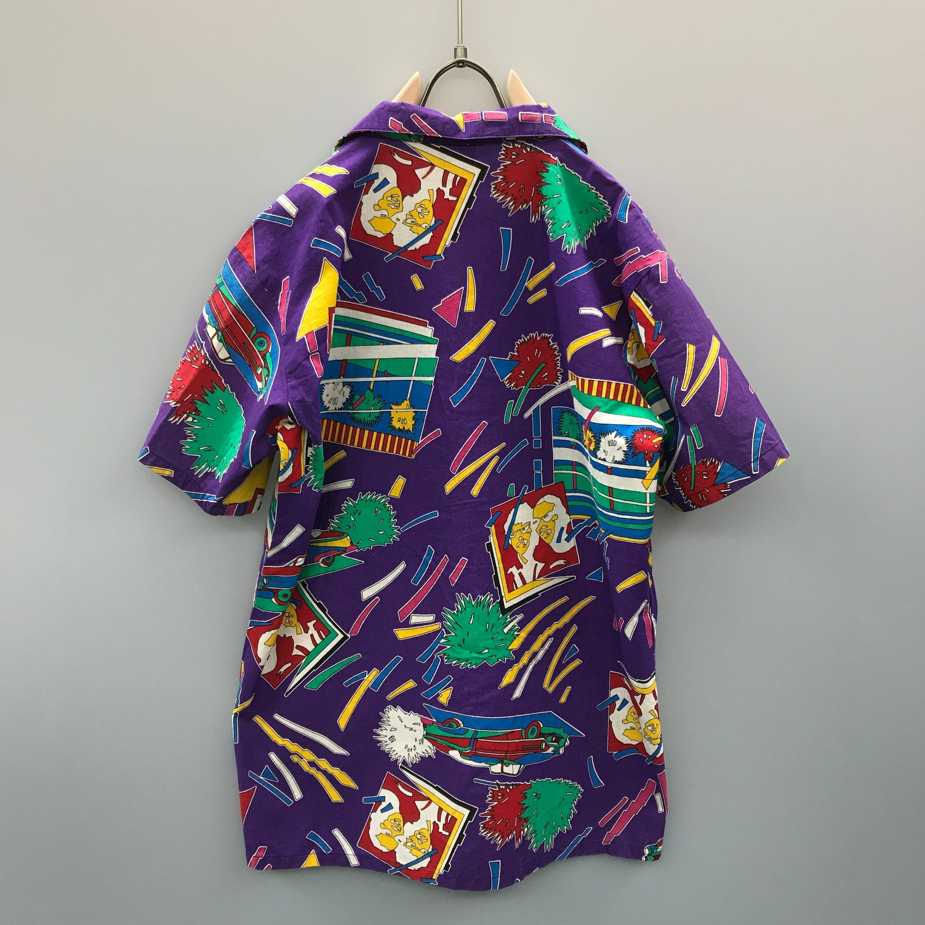 ヴィンテージ!米国製 PALMETTO'S 80'S 強烈・POP柄 半袖オープンカラー シャツ USA製 アメリカ 総柄