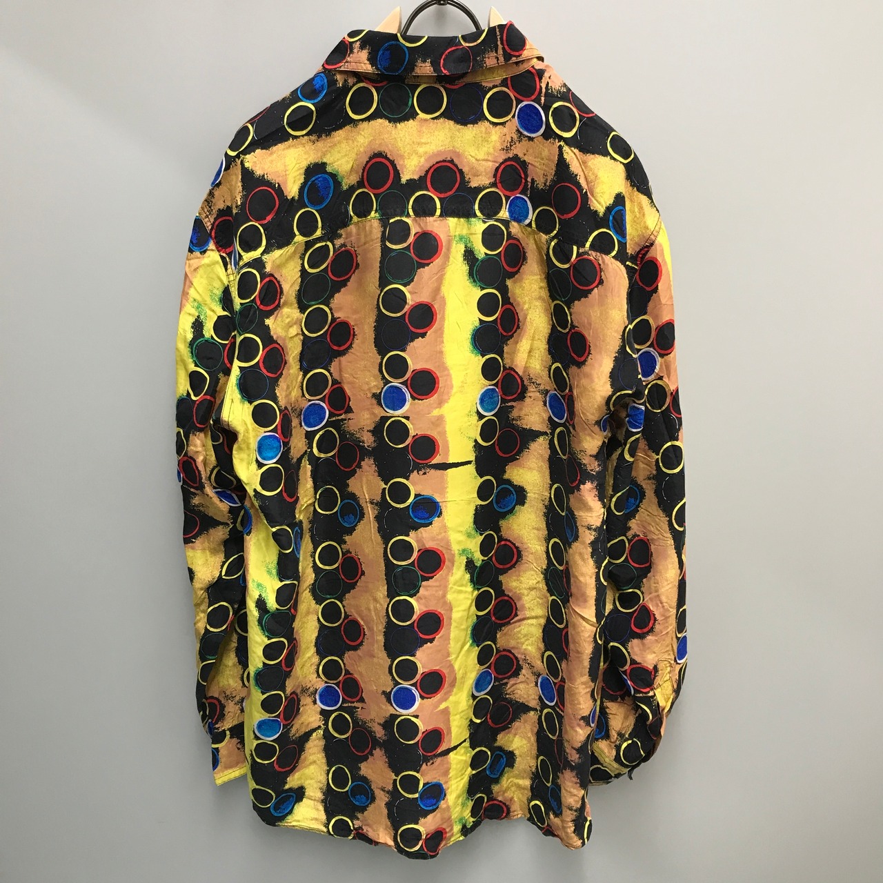 80年代 サークルアート柄の 100%シルクシャツ 長袖 総柄