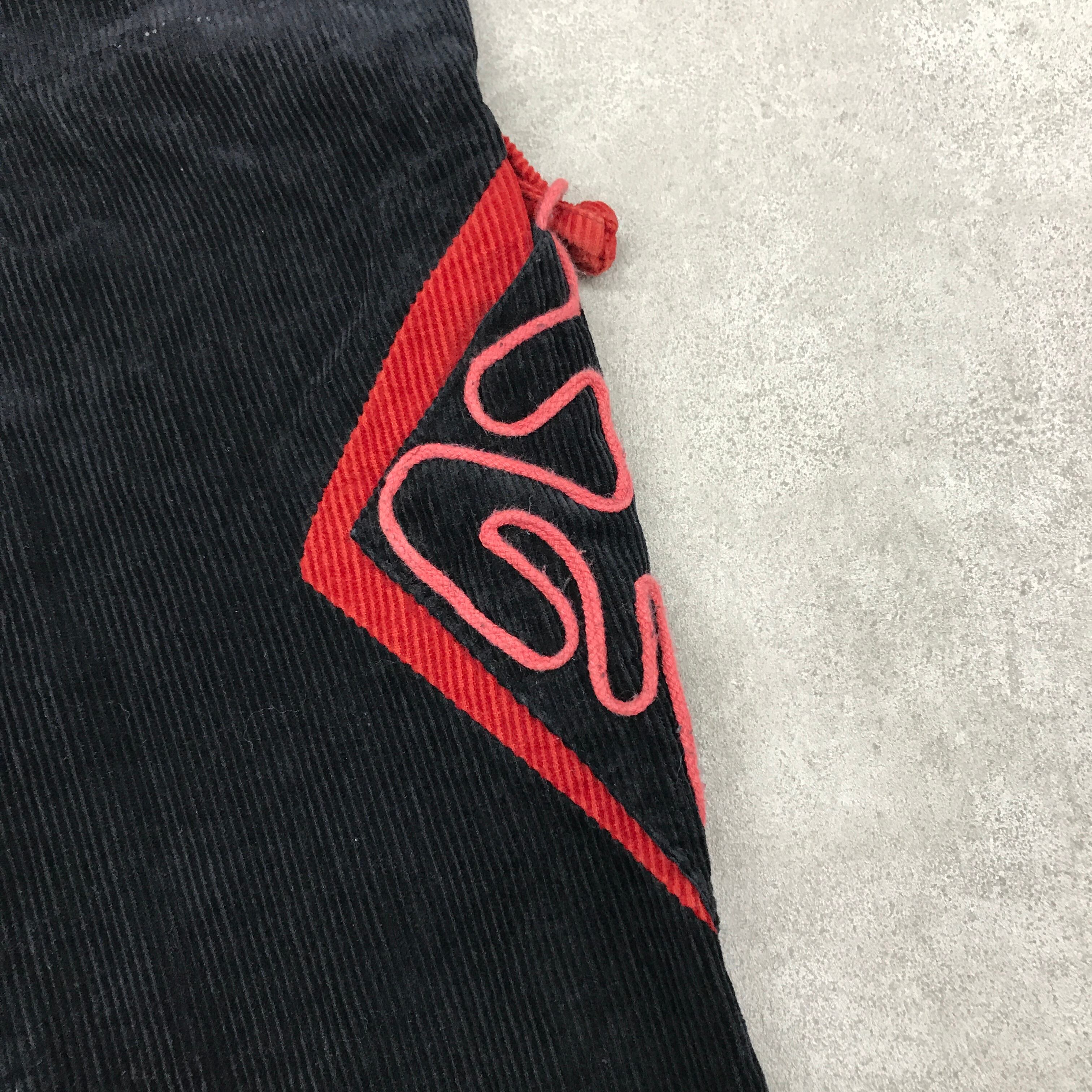 80年代 切り替え生地 装飾付きコーデュロイテーパードパンツ