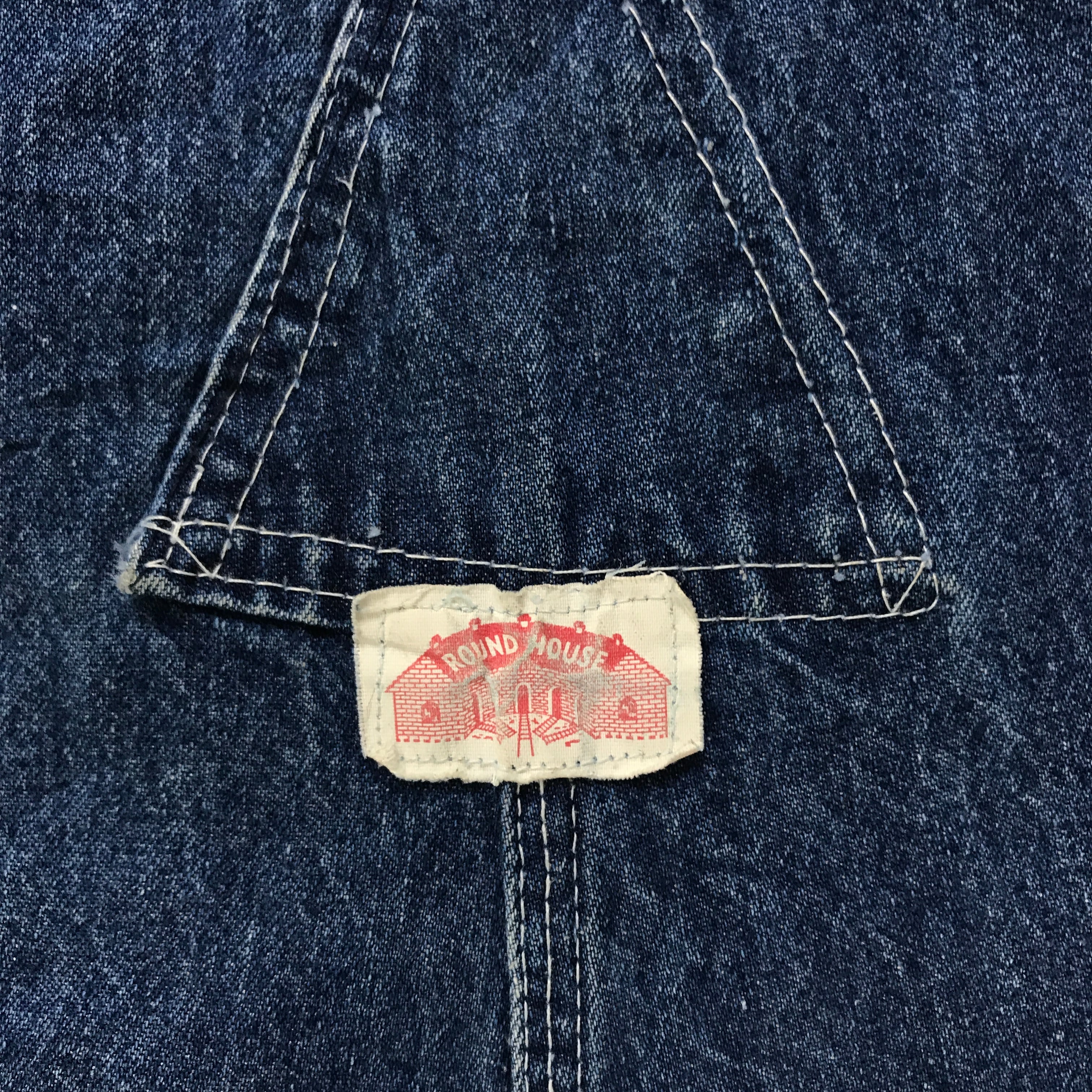 70〜80年代 ROUNDHOUSE ラウンドハウス デニムオーバーオール プリントタグ 希少 70年代