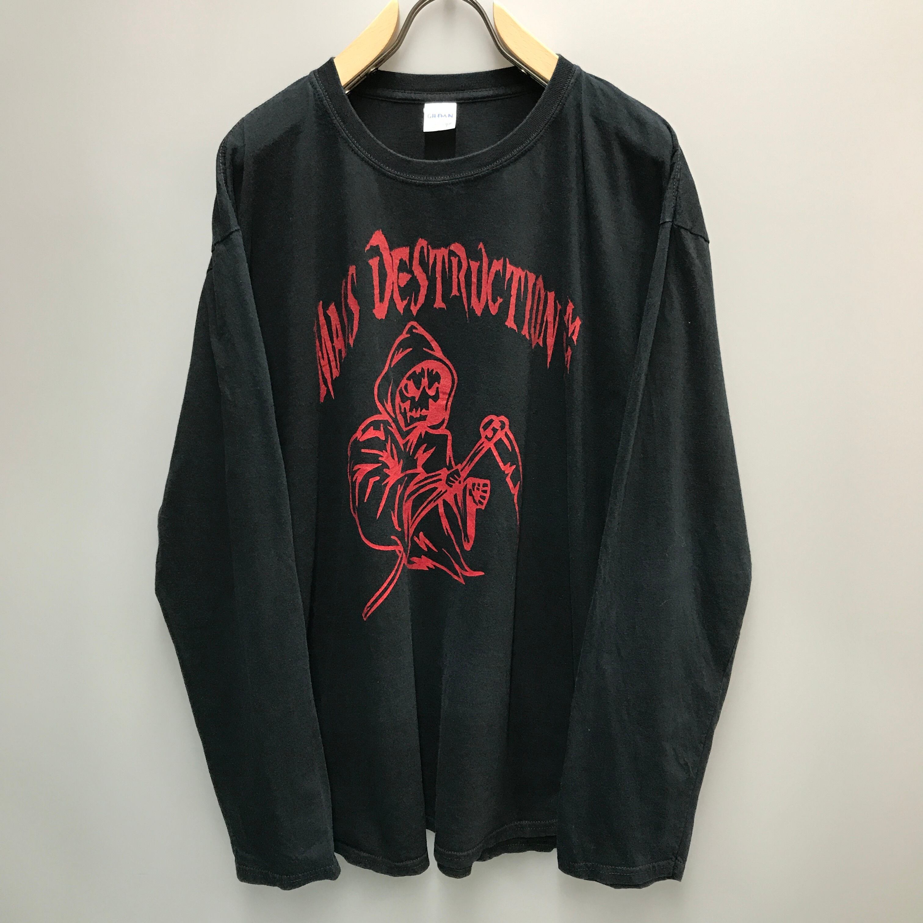 90年代〜00年代 MASS DESTRUCTION MMA 総合格闘技 ' BLOOD IS ONLY RED SWEAT ' ロンT ブラック サタン柄