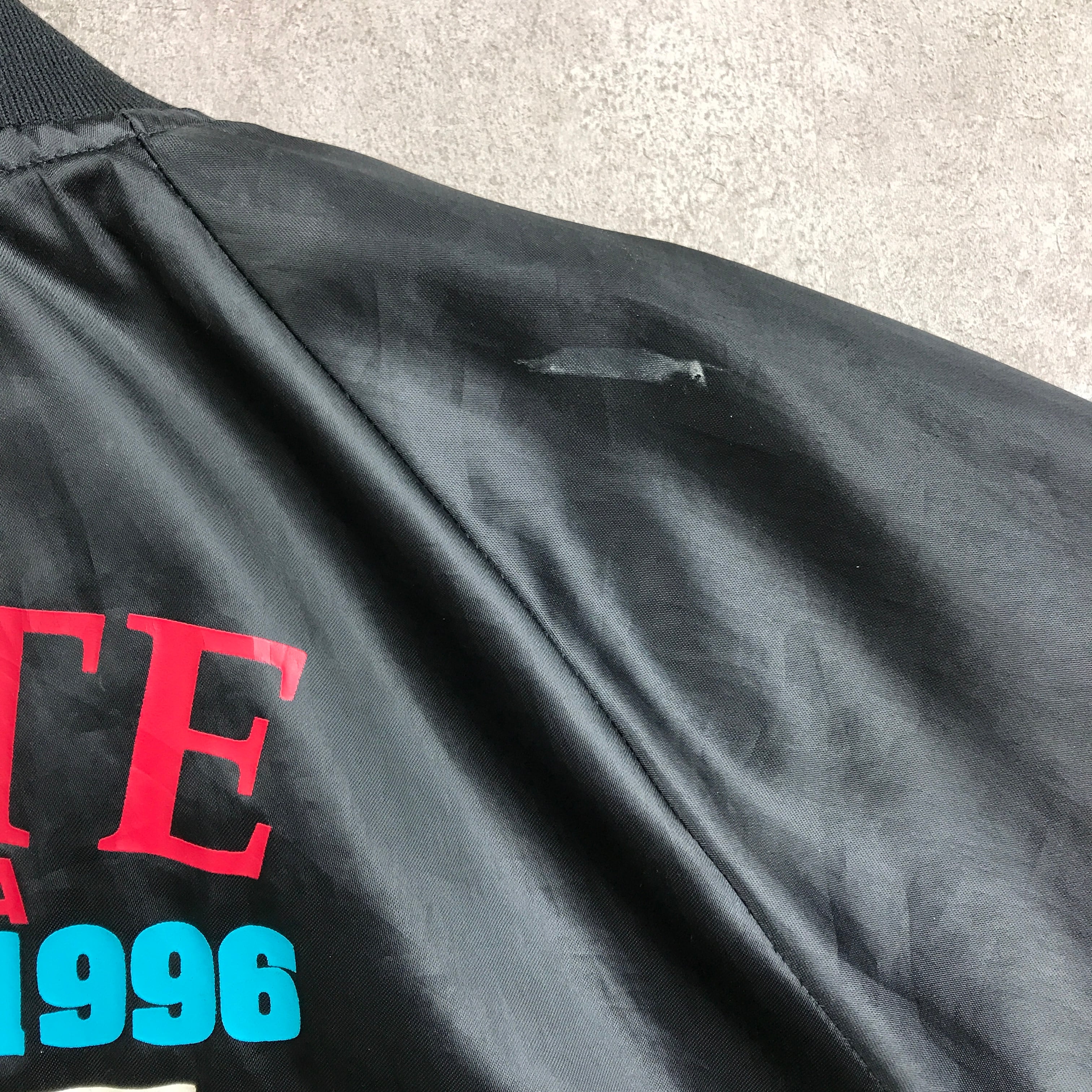 "80〜90年代 ABATE OF INADIANA MDA RIDE モーターサイクル バイクプリント ブラック サテン ナイロンスタジャン ベースボールジャケット"