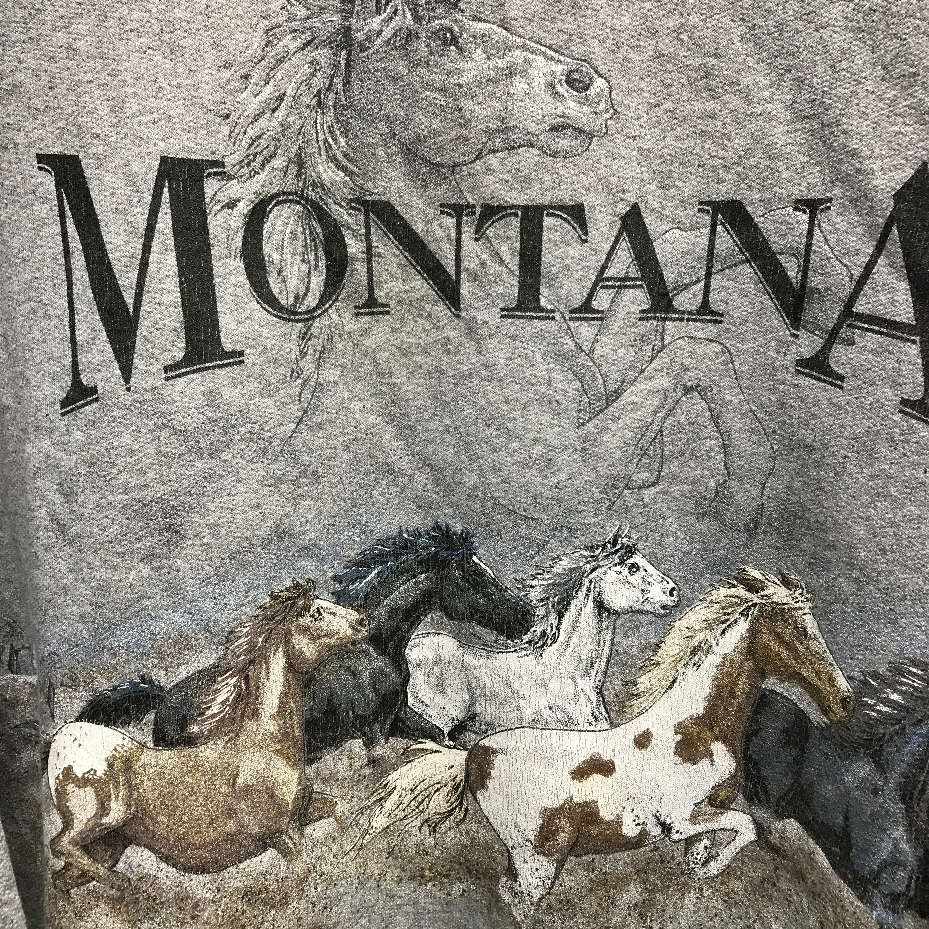 80〜90年代 MONTANA HORSE PRINT SANSEGAL 両面プリント馬アニマルプリントスウェット