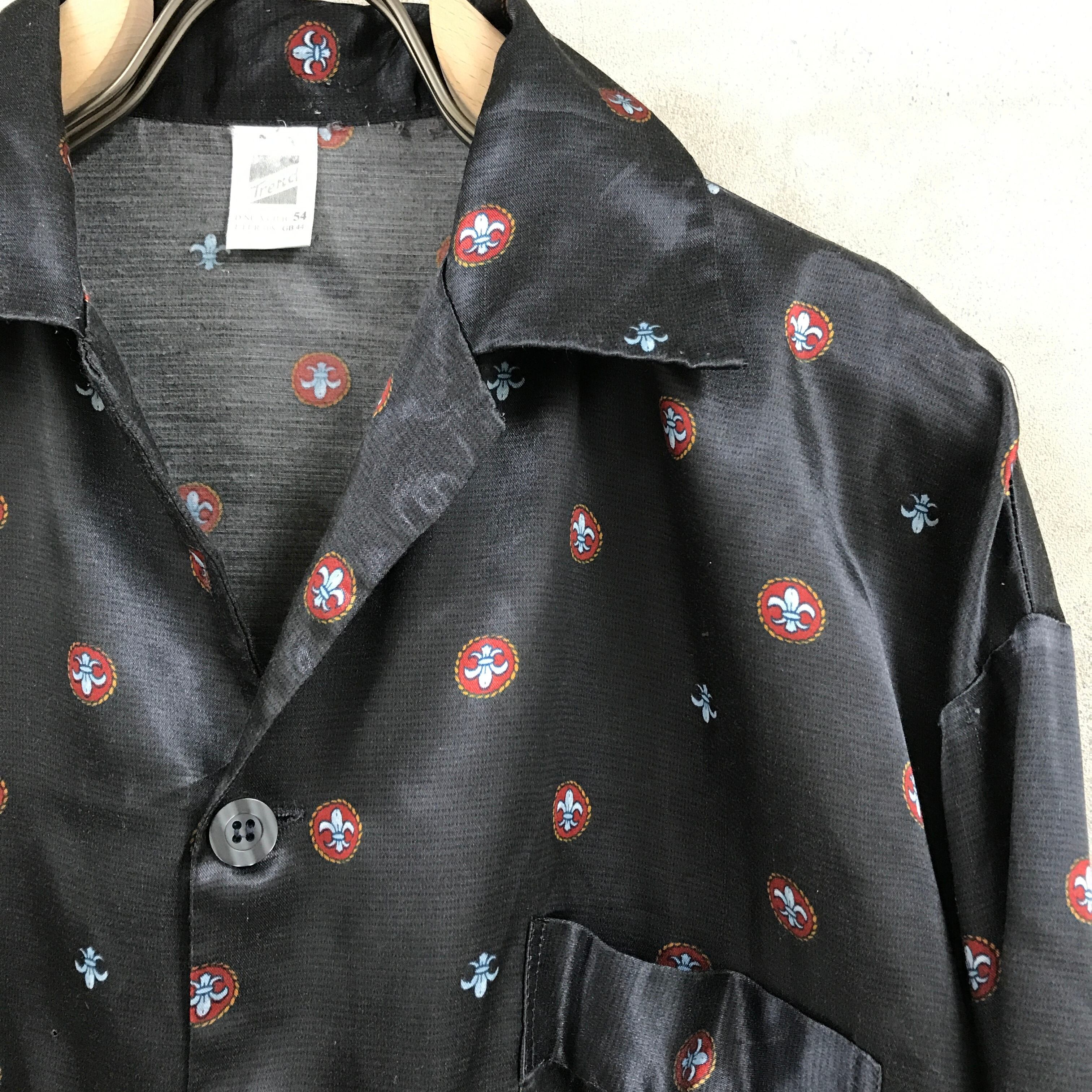 80〜90年代 ユーロヴィンテージ イージーパジャマスーツ パジャマ セットアップ ルームウェア ブラックに百合の紋章