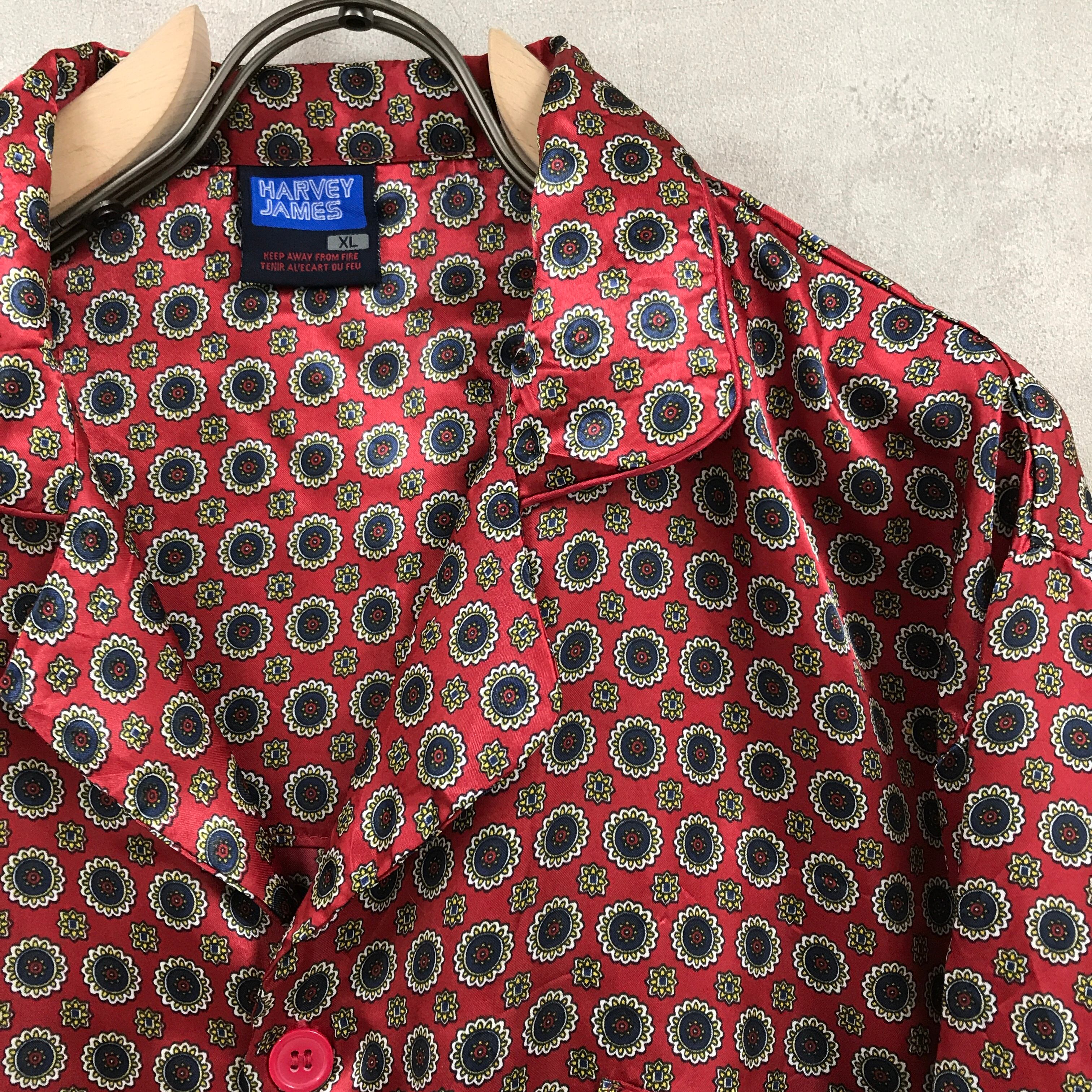 80〜90年代 ユーロヴィンテージ イージーパジャマスーツ パジャマ セットアップ ルームウェア 赤字にモノグラム柄