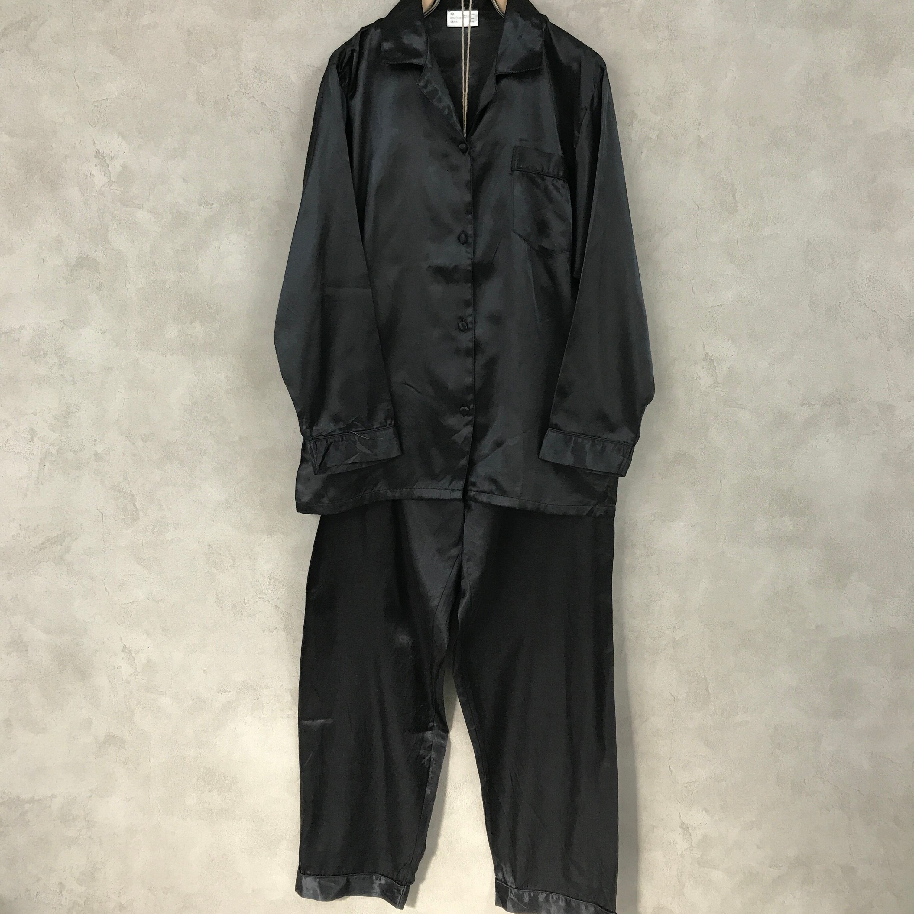 80〜90年代 ユーロヴィンテージ イージーパジャマスーツ パジャマ セットアップ ルームウェア 黒黒44/46?