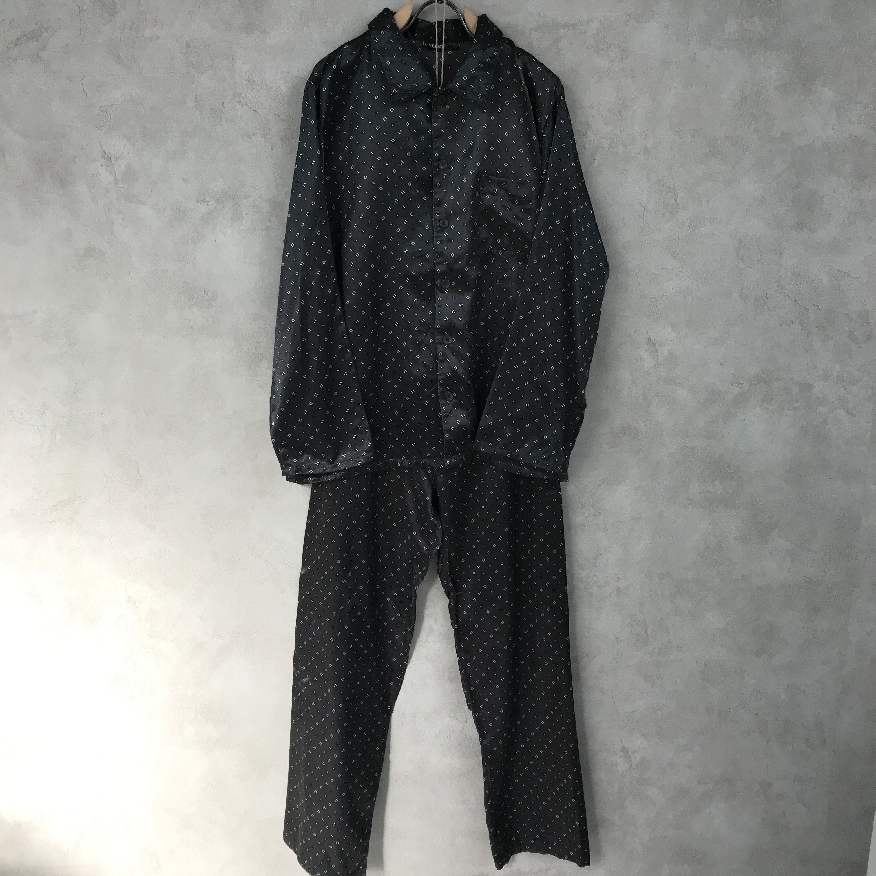 80〜90年代 ユーロヴィンテージ イージーパジャマスーツ パジャマ セットアップ ルームウェア ダークグレーに小さい四角柄 LIVERGY