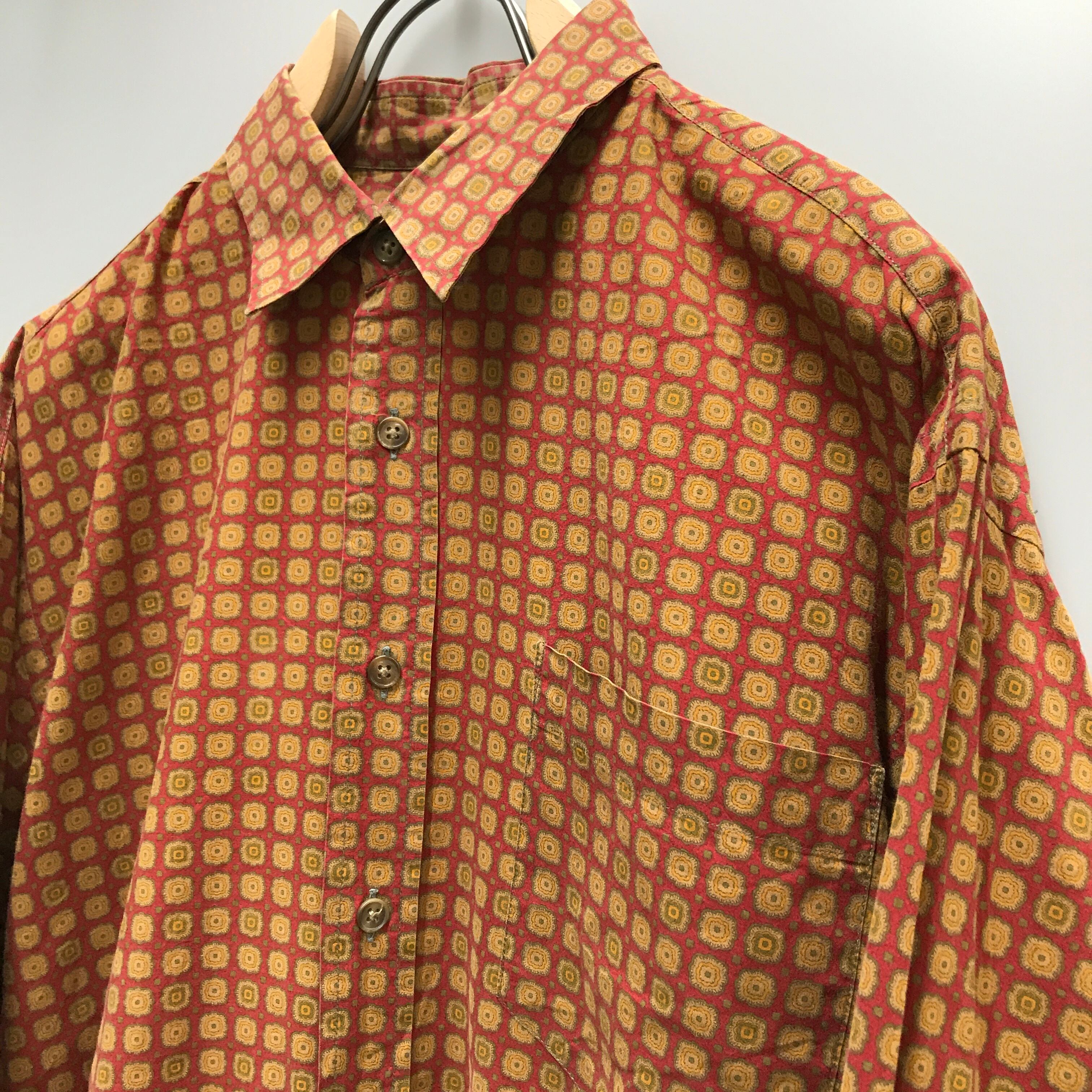 80〜90年代 EURO Regimental 柄シャツ えんじとオレンジの モノグラム 総柄 長袖