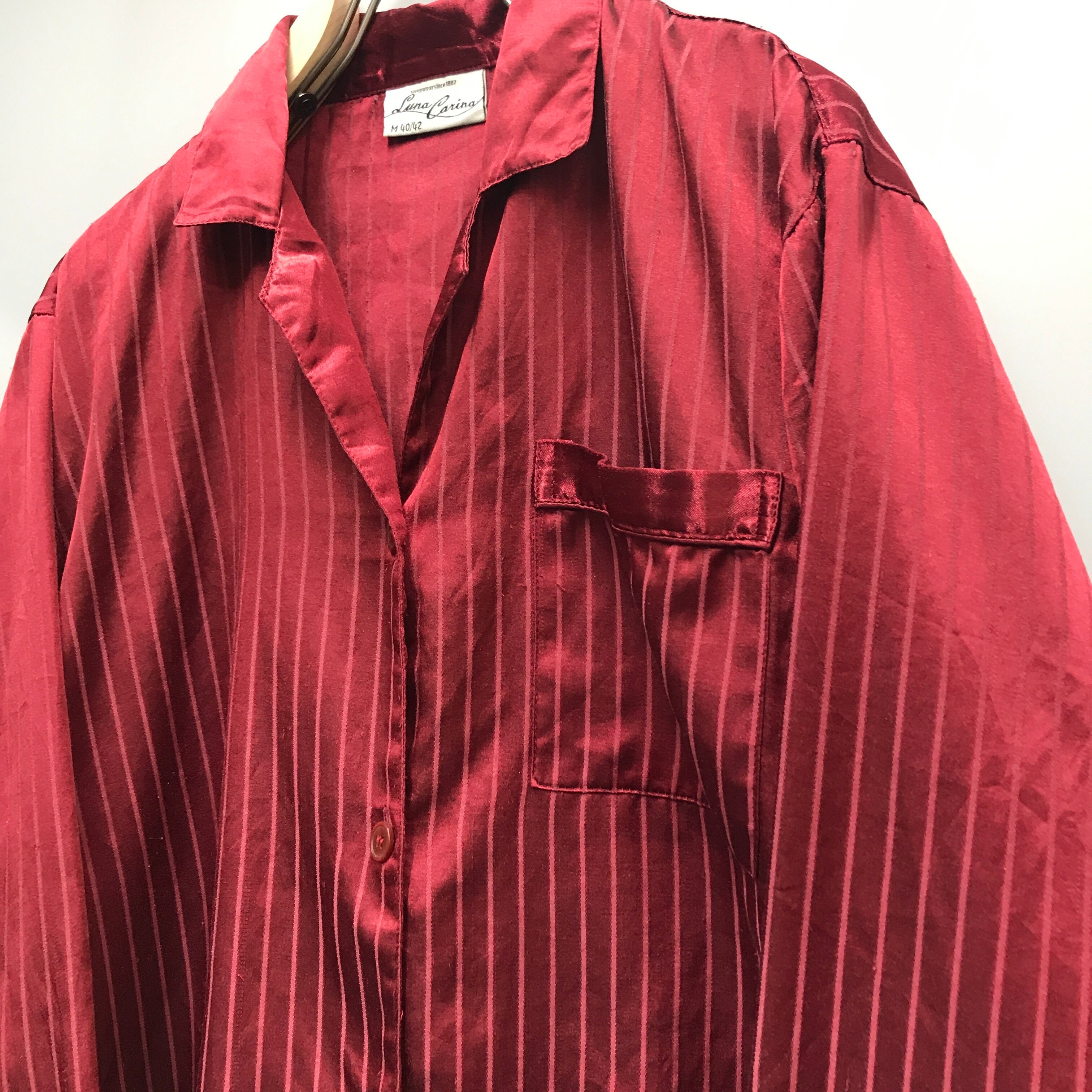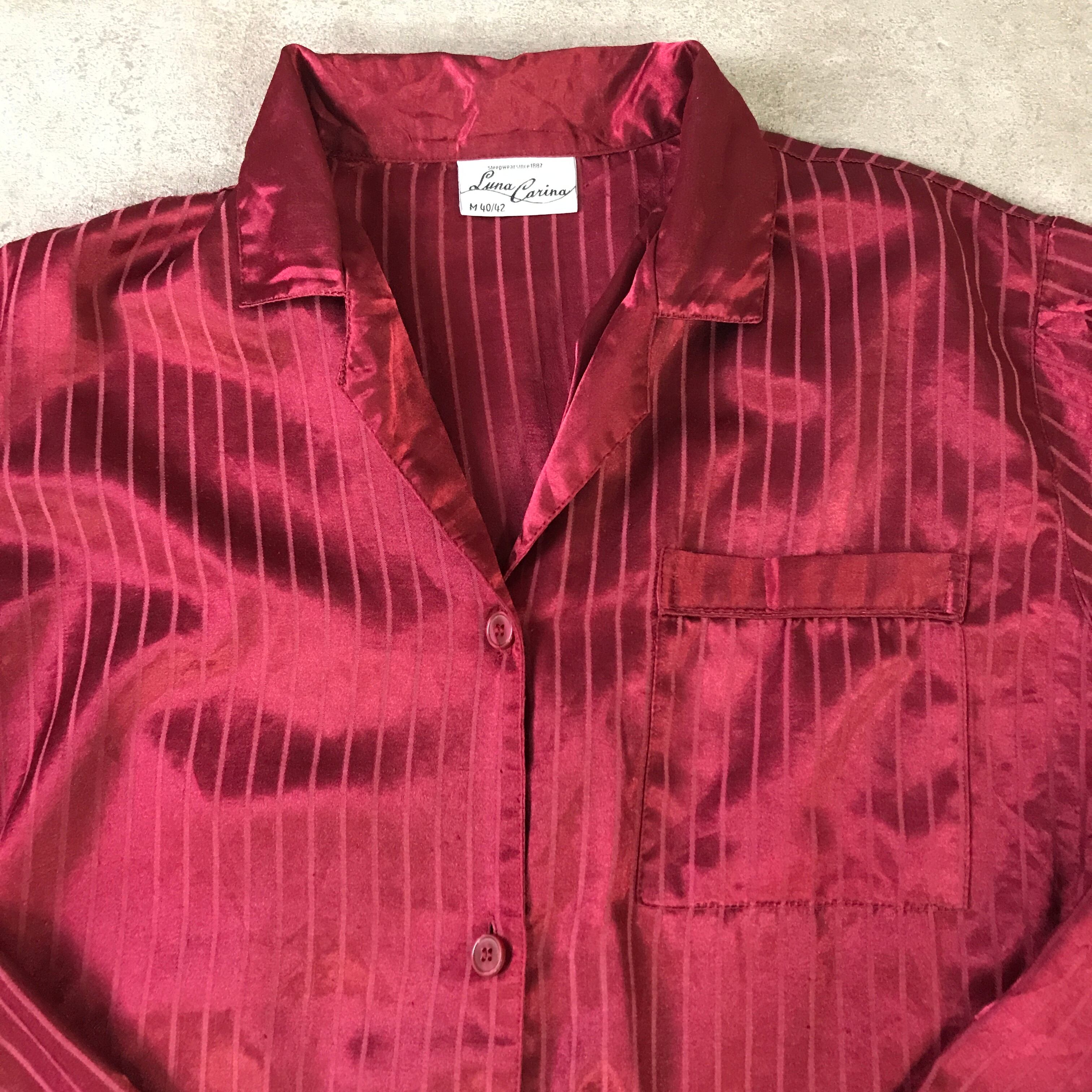 サービス品!80?90年代 肌ざわり手触りが良い・ユーロ高級 サテンタイプ リラックス パジャマ Luna Carina ナイトウェア えんじストライプ