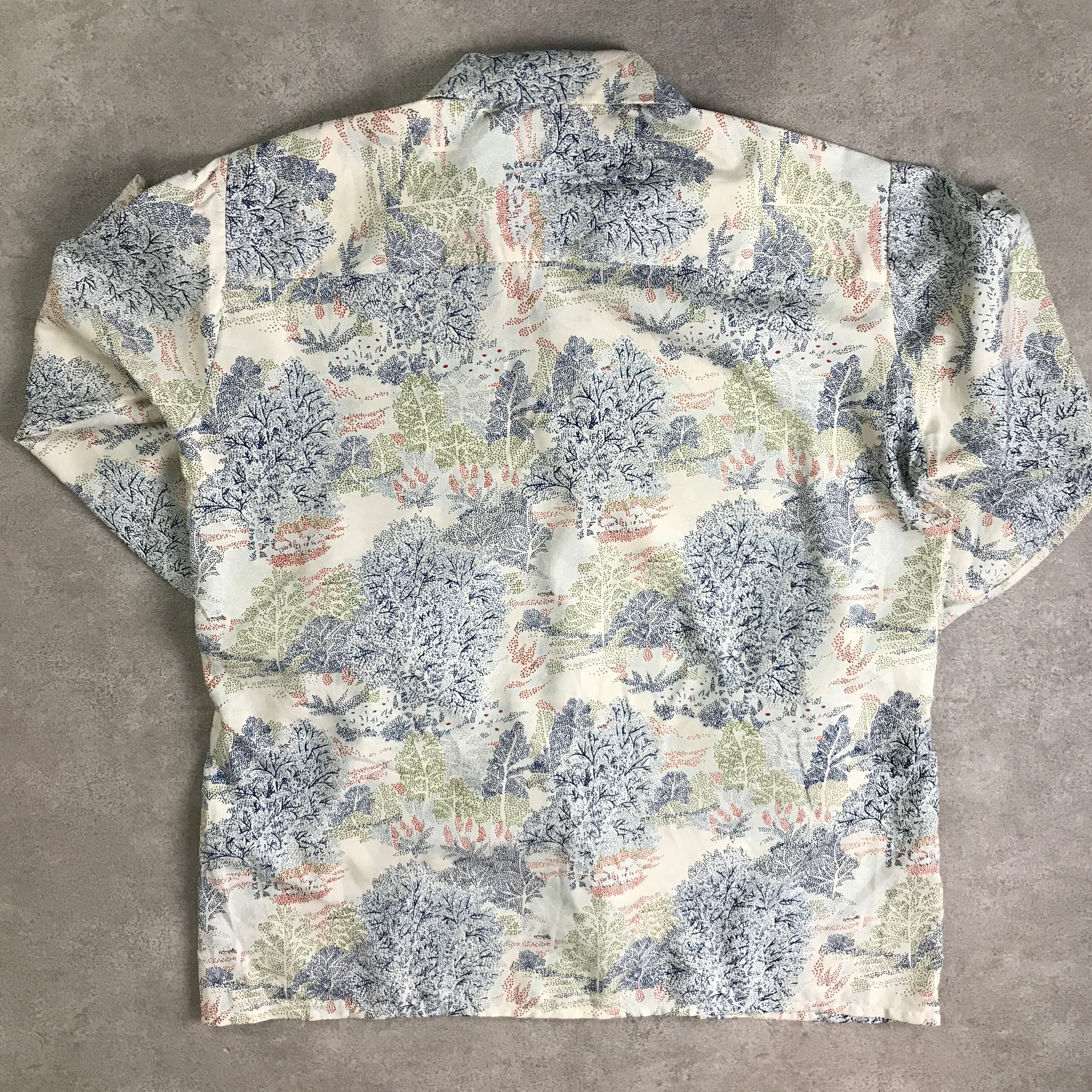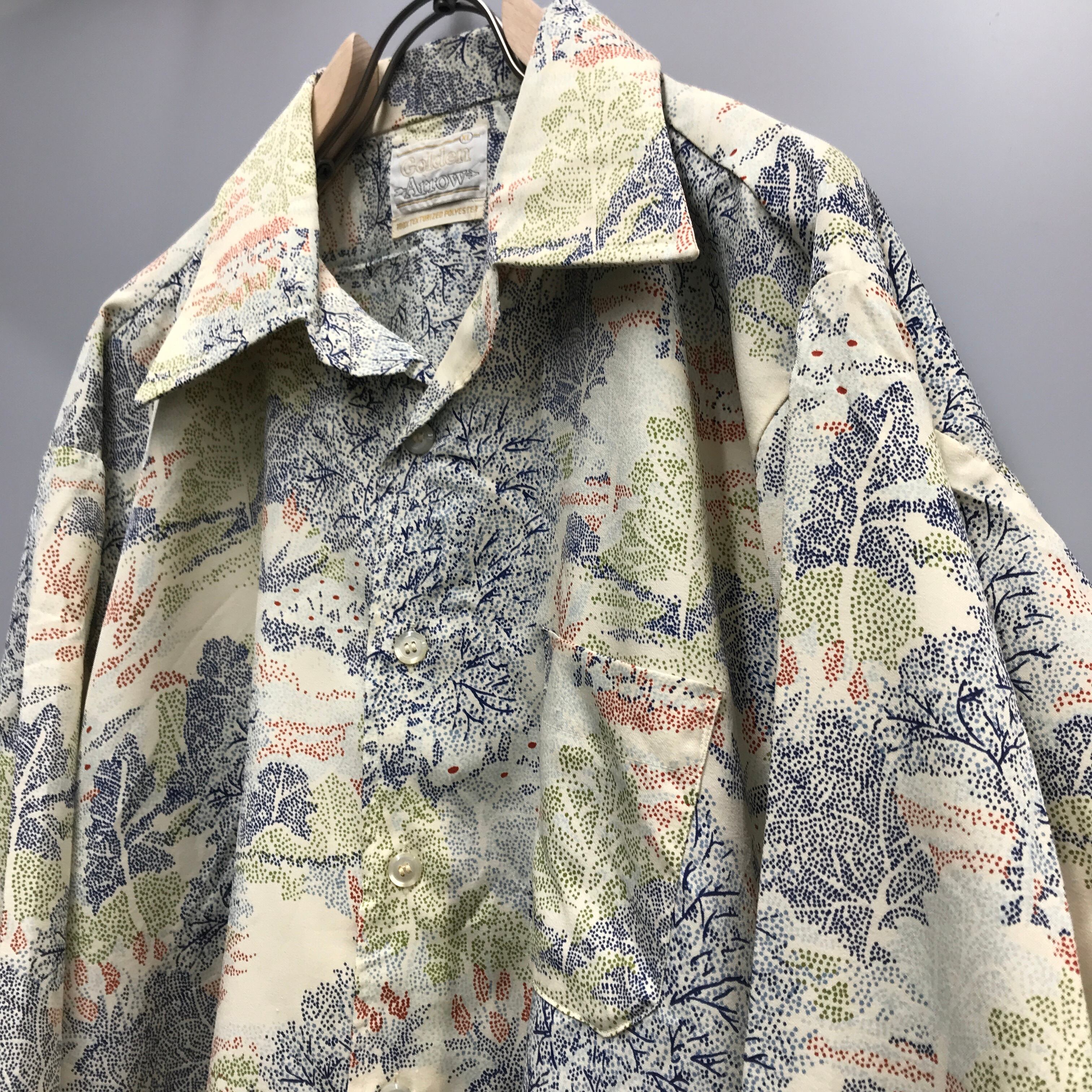 70年代 Golden Arrow ライト系パステルカラー木々の柄シャツ 総柄 長袖