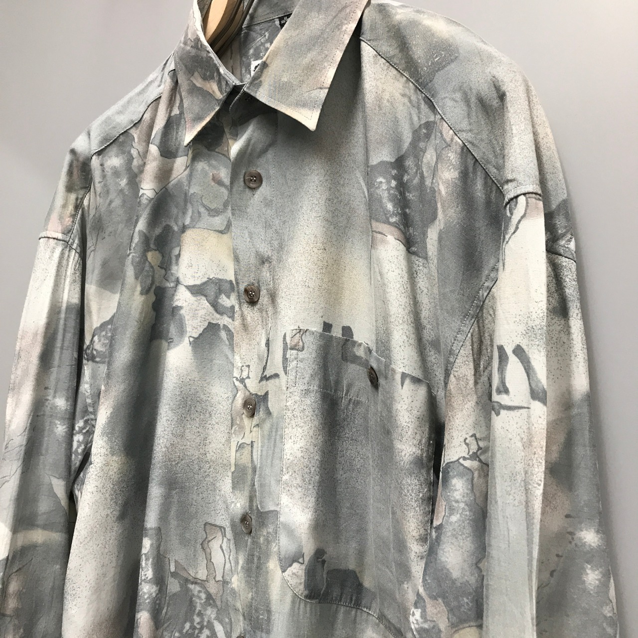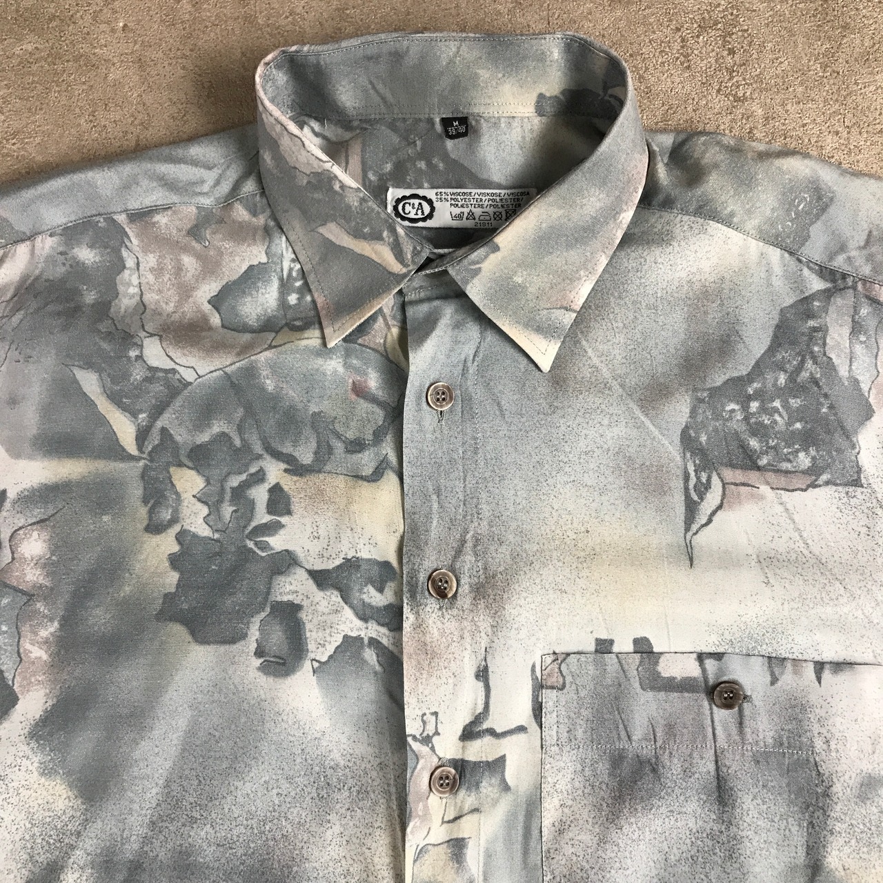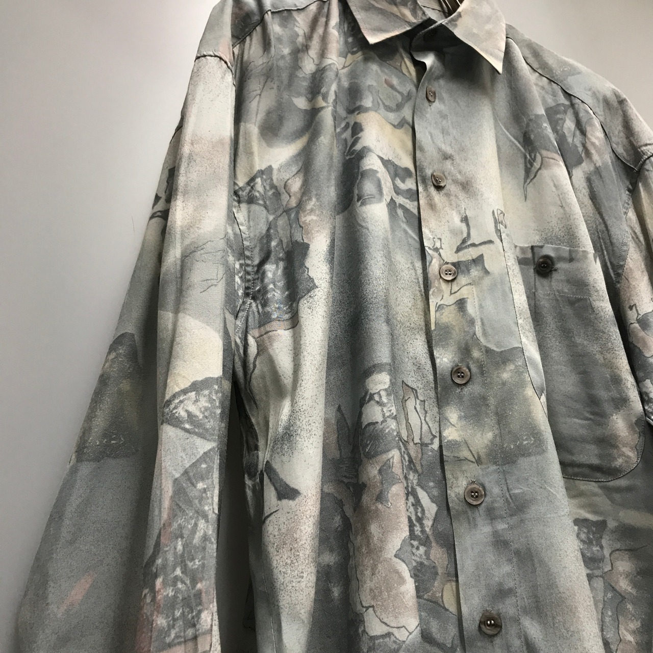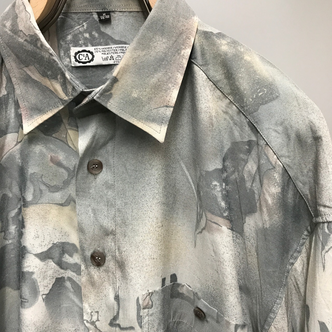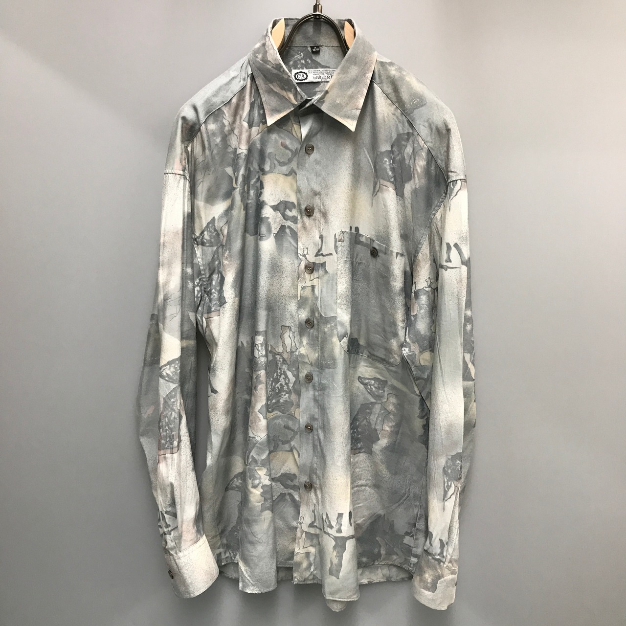 80〜90年代 EURO C&A 朽ちた遺跡風?淡色柄シャツ