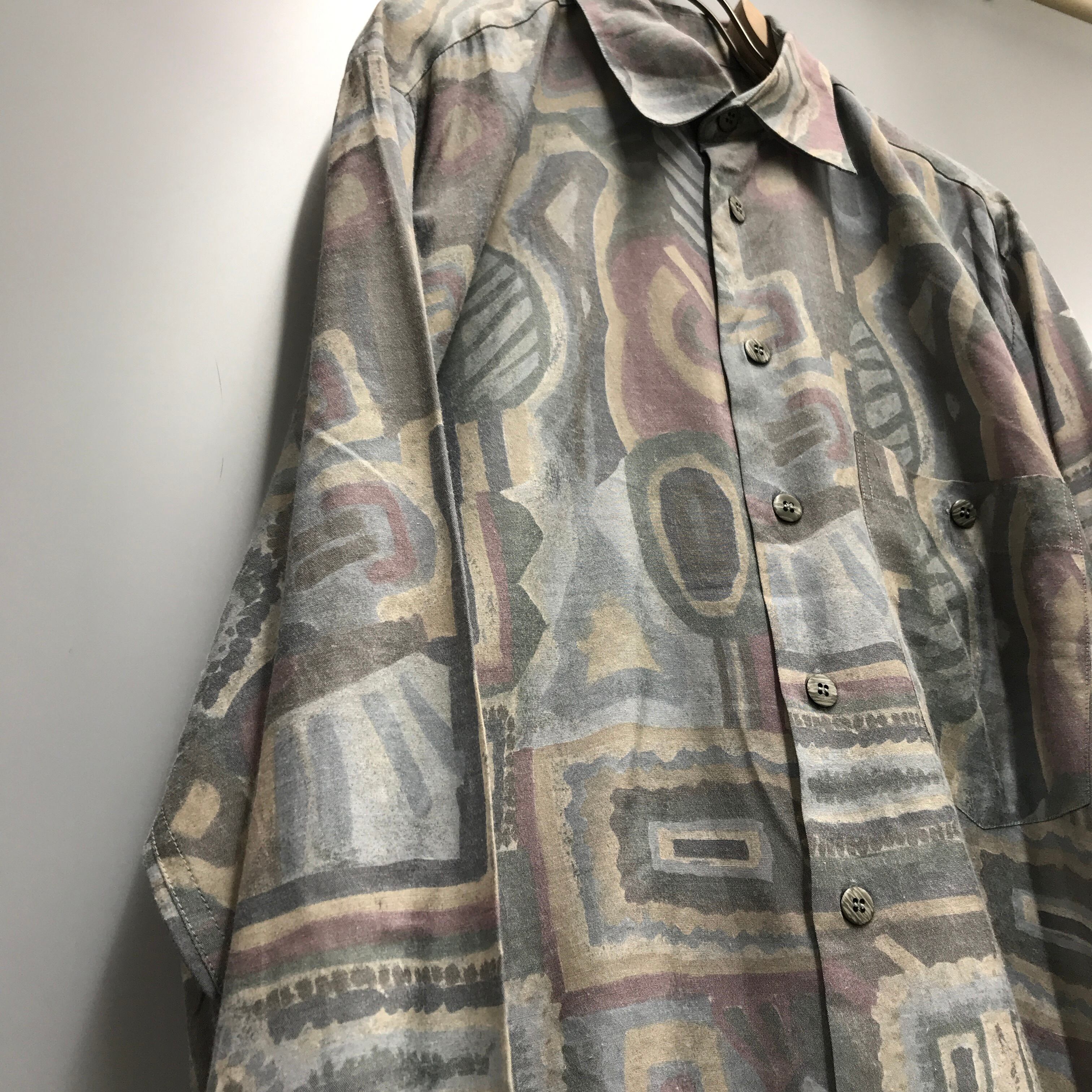 80〜90年代 EURO パステルカラー アート抽象絵画風 柄シャツ 総柄 長袖