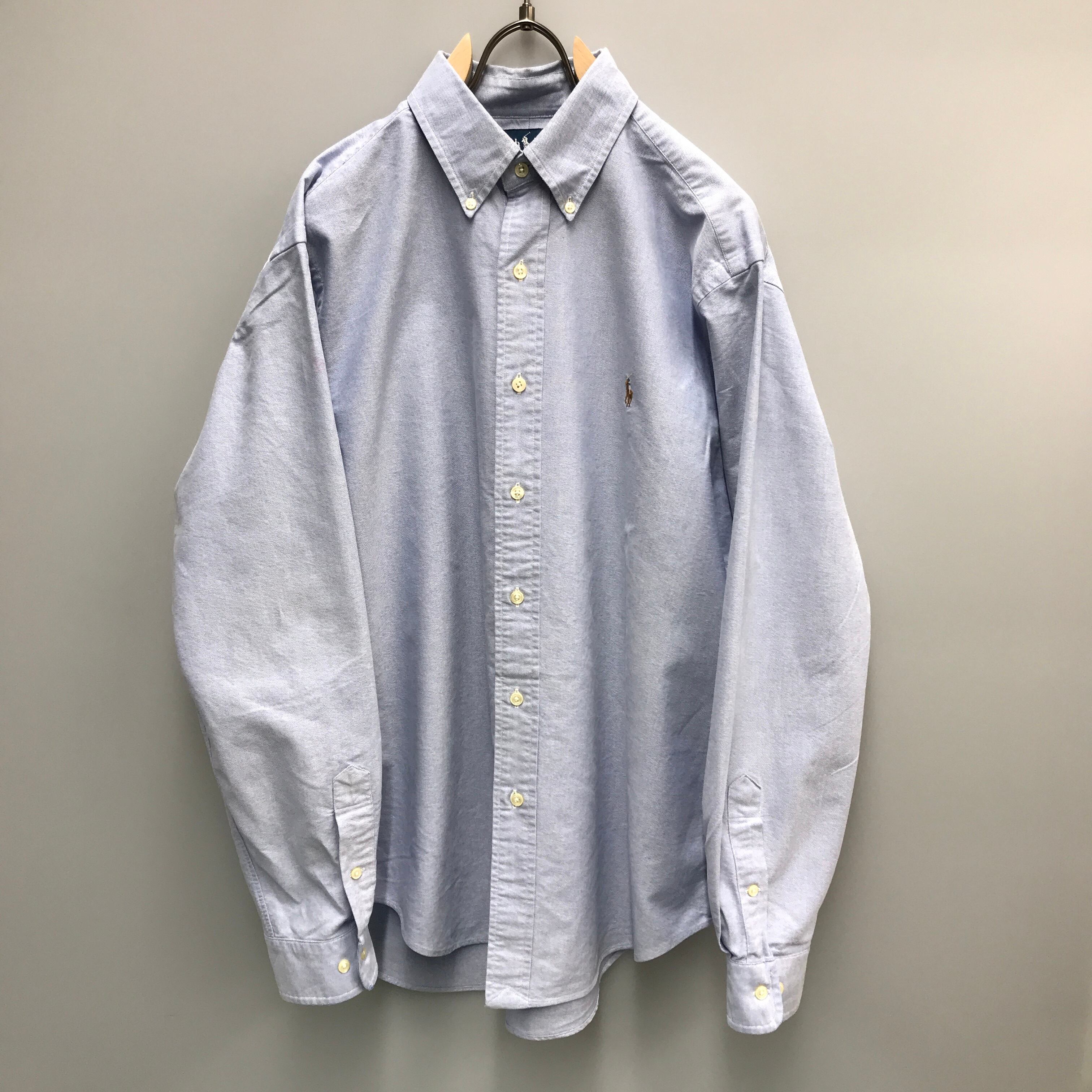 90年代 ラルフローレン Ralph Lauren SHIRTS 長袖 OXFORD CLASSIC FIT コットン ボタンダウン ワンポイント ロゴ 刺繍 旧タグ US-16 サイズ 水色