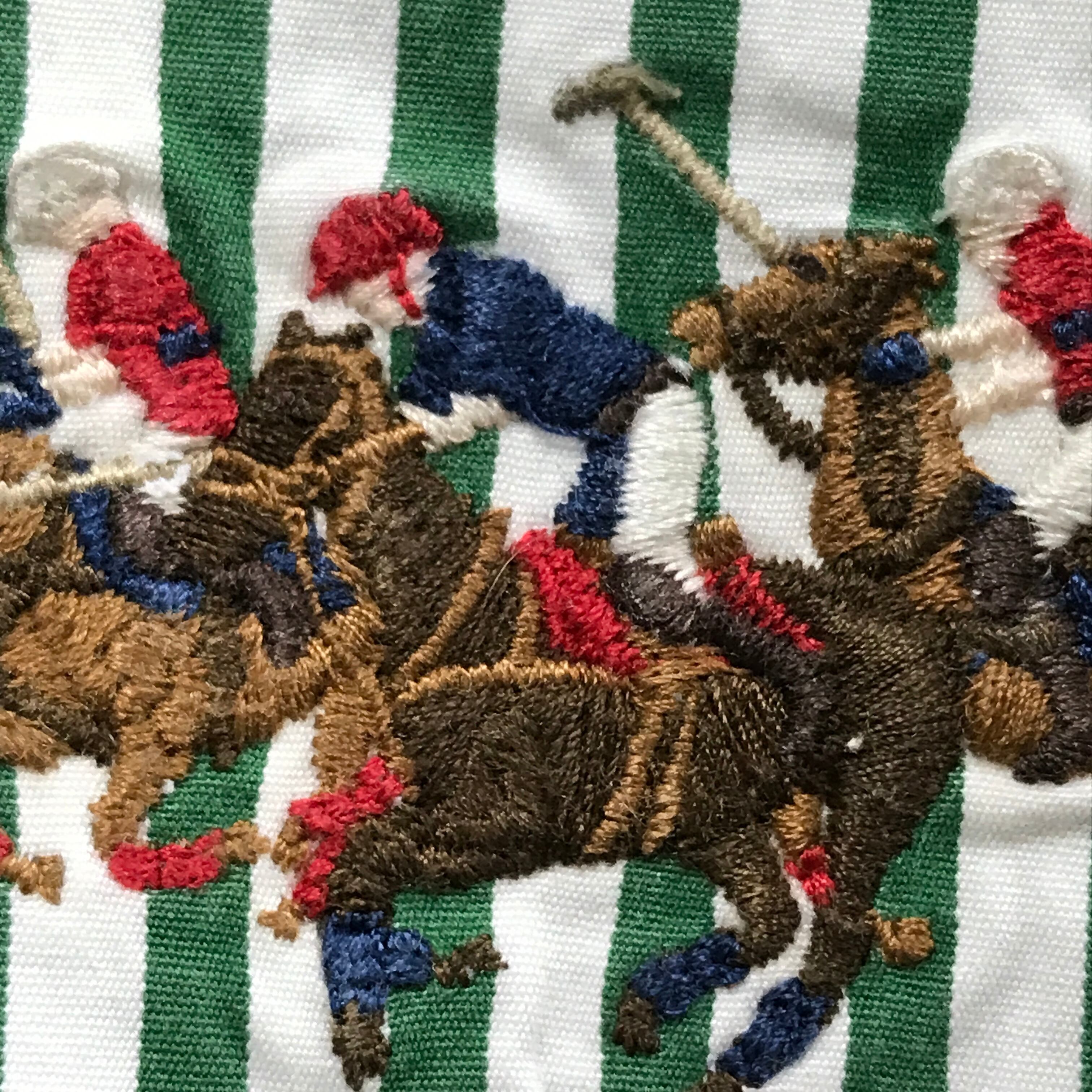 0年代 ラルフローレン Ralph Lauren SHIRTS CLASSIC FI 長袖 コットンシャツ ボタンダウン ワンポイント ロゴ 刺繍 旧タグ US-XXLサイズ グリーンストライプ でか刺繍