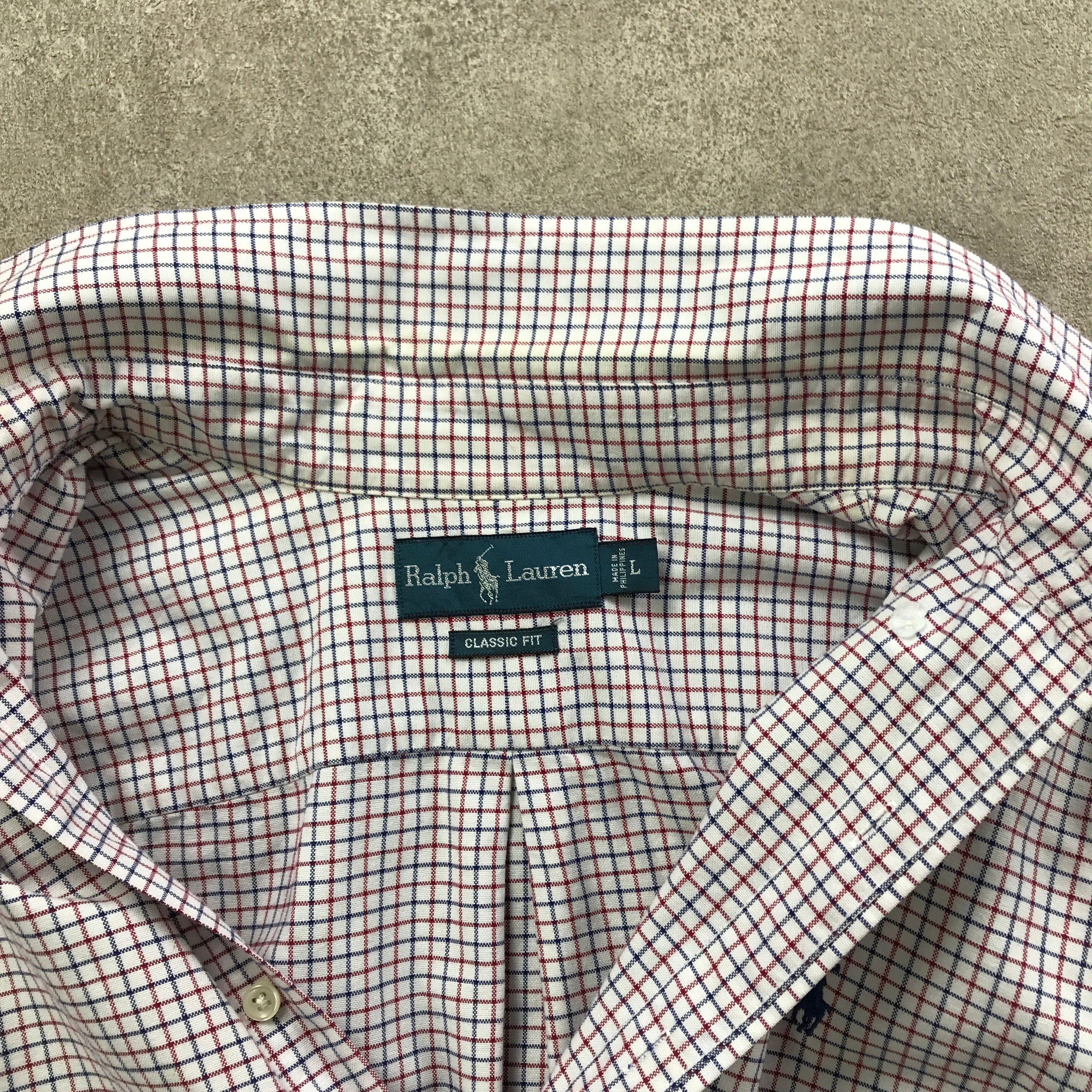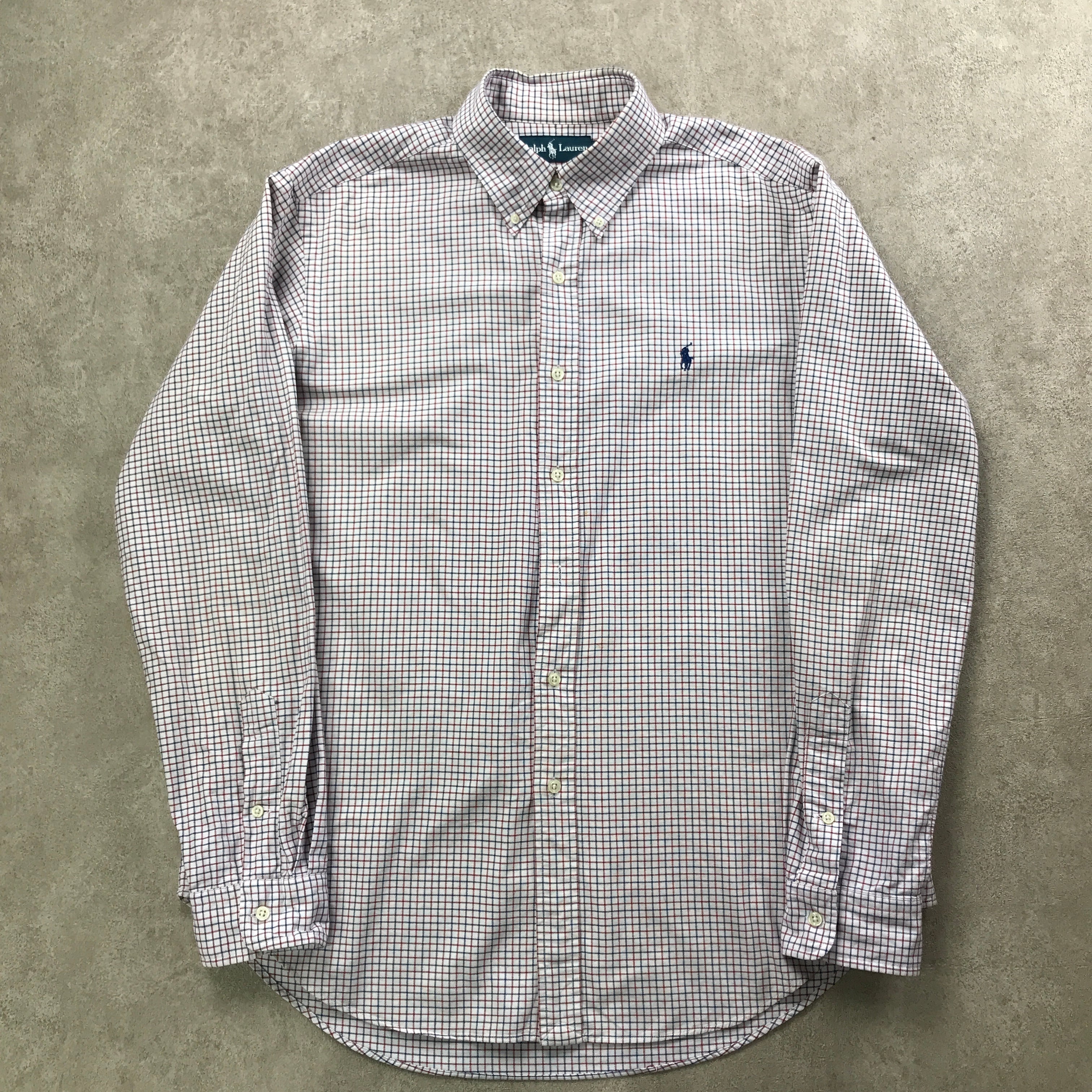 90年代 ラルフローレン Ralph Lauren SHIRTS 長袖 OXFORD CLASSIC FIT コットン ボタンダウン ワンポイント ロゴ 刺繍 旧タグ US-Lサイズ タッターソールチェック