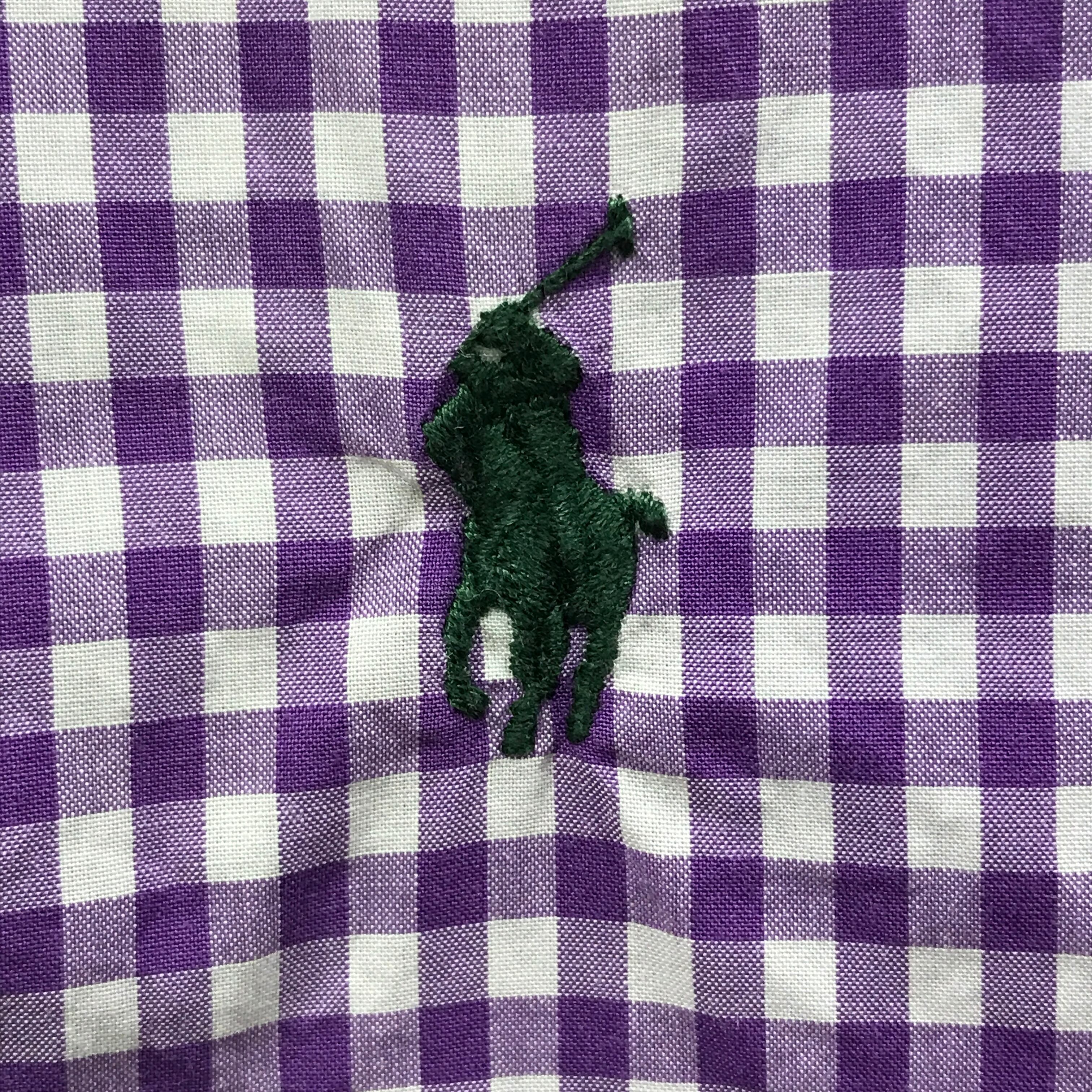 90年代 ラルフローレン Ralph Lauren SHIRTS 長袖 コットンシャツ ボタンダウン ワンポイント ロゴ 刺繍 旧タグ US-XLサイズ 紫ギンガムチェック
