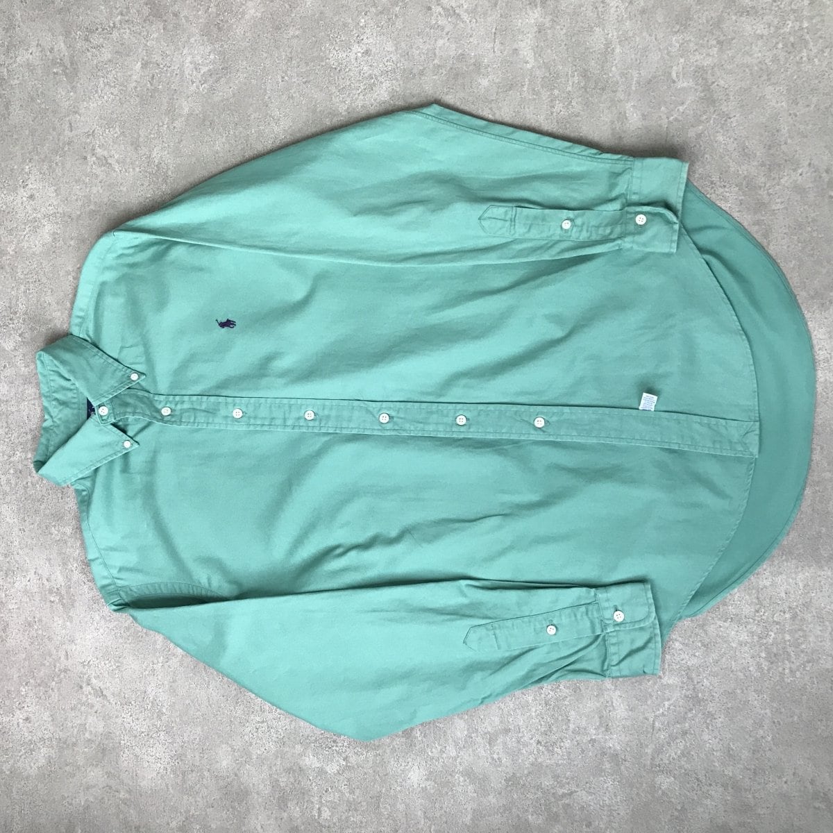 90年代 ラルフローレン Ralph Lauren SHIRTS 長袖 コットンツイル ボタンダウン ワンポイント ロゴ 刺繍 旧タグ US Sサイズ ミントグリーン